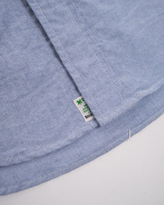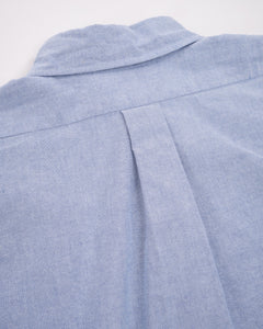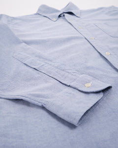 Introducing the timeless elegance of orSlow's STANDARD OXFORD LIGHT BLUE BUTTON DOWN SHIRT. Echoing the American white-collar work shirts from the 1950s, this masterpiece is fashioned from a custom Japanese-milled oxford cloth in a soothing light blue hue. Its relaxed cut, complemented by a snug collar and ample space through the chest and arms, promises unparalleled comfort. The shirt's pleated back ensures fluidity of movement and offers a polished drape, making it perfect for tucking in or letting loose. Its distinctive rounded hem provides versatility for both styles. Constructed from 100% cotton, the mid-weight fabric has a touch of crispness that softens beautifully over time. Representing OrSlow's commitment to redefining classic staples, this shirt is an essential addition to every modern wardrobe, meticulously crafted in Japan.