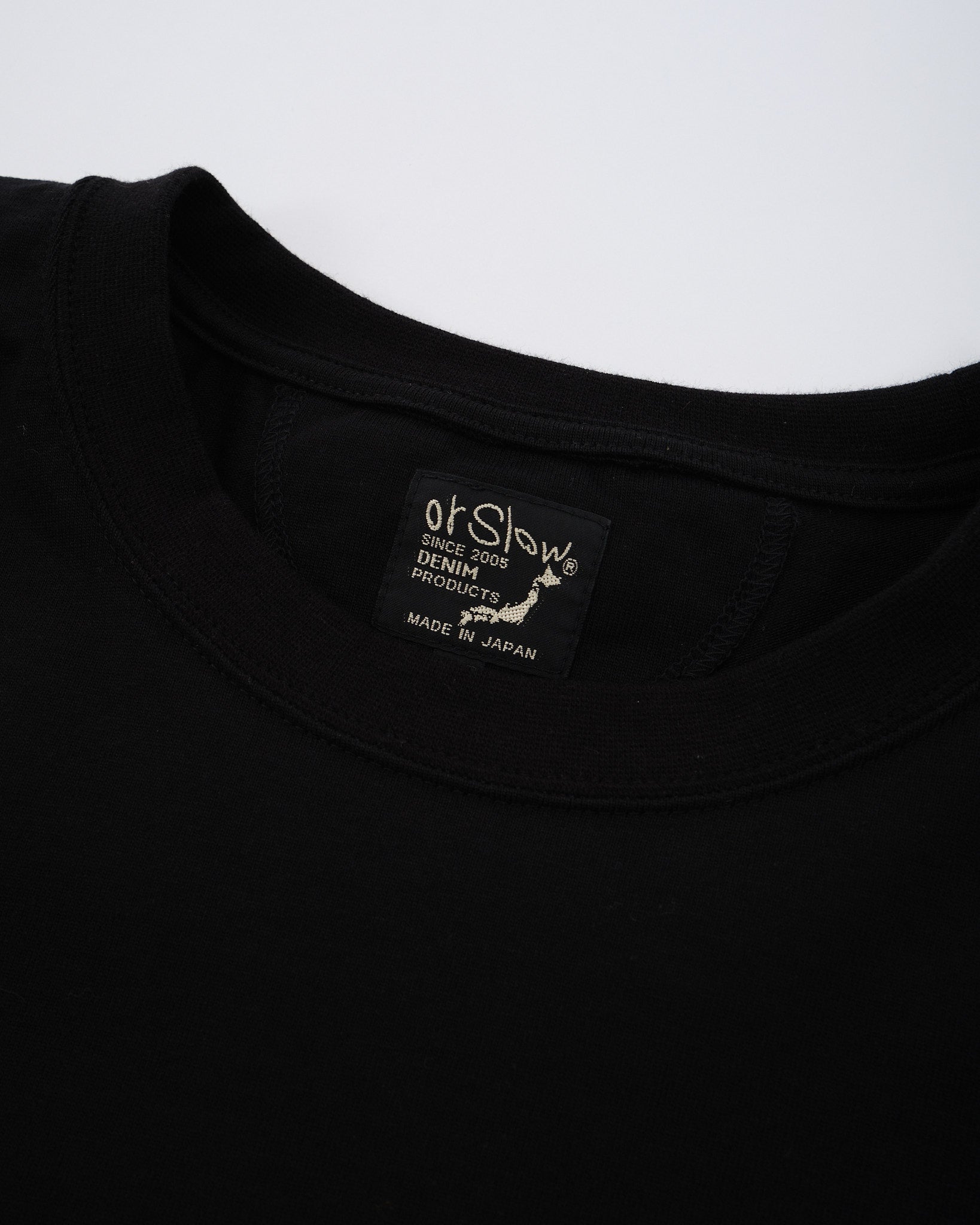The ORSLOW T SHIRT WITH POCKET in BLACK with the style number 03-0017-61 perfectly embodies the brands dedication to clean and understated aesthetics. Handcrafted in Japan this t shirt exemplifies simplicity and high quality. Crafted from cotton jersey it offers a relaxed and oversized fit that drapes comfortably on the body. The single chest pocket adds practicality without compromising the tees design. Ideal for individuals who appreciate a fit and the subtle luxury of well crafted essentials this t shirt is a must have addition, to any wardrobe.