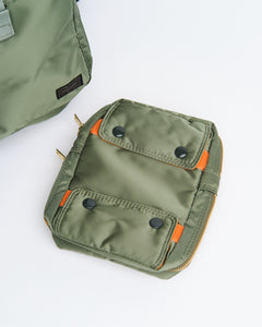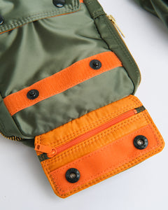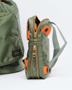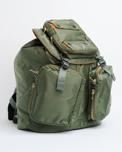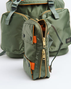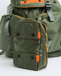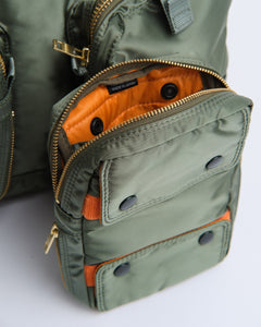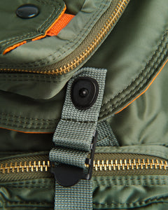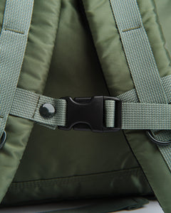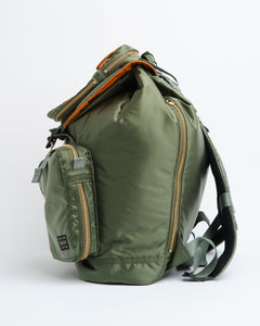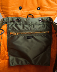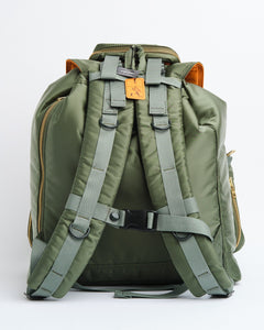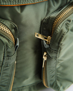 The Porter By Yoshida Tanker Ruck Sack in sage green is a must-have accessory for anyone who values style, functionality, and quality. Crafted in Japan as part of the iconic "TANKER" series, this ruck sack features an original fabric inspired by the US Air Force flight jacket "MA-1".