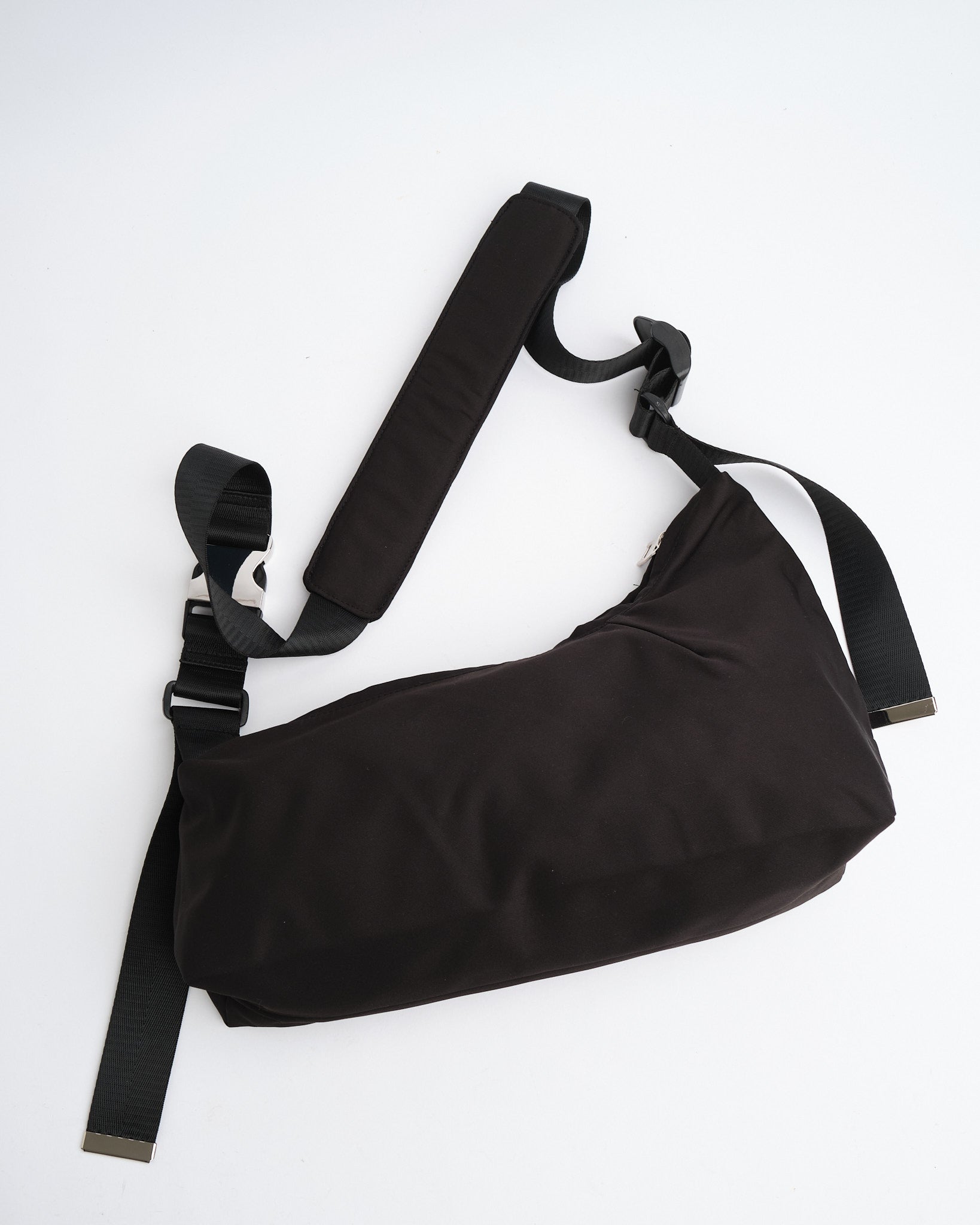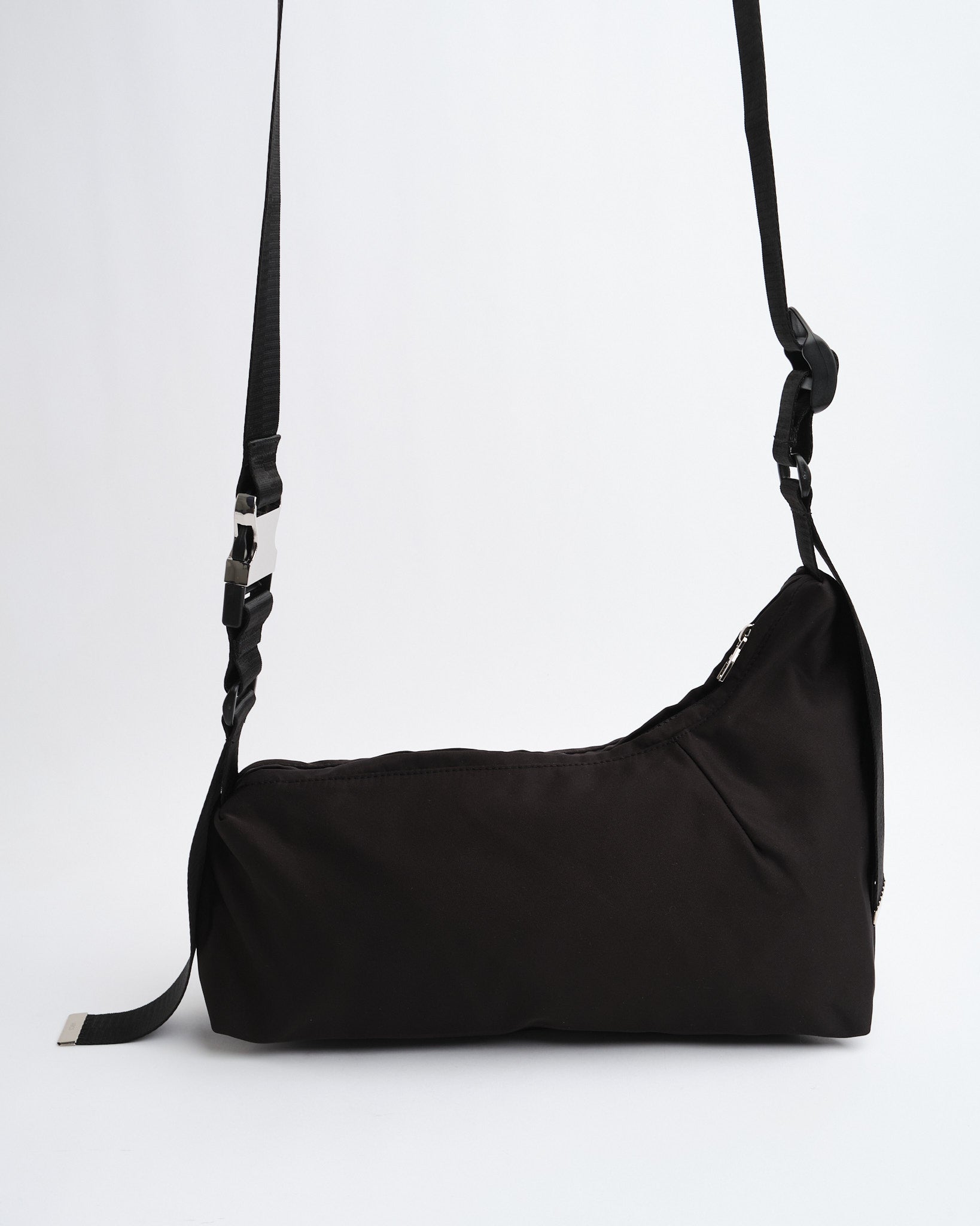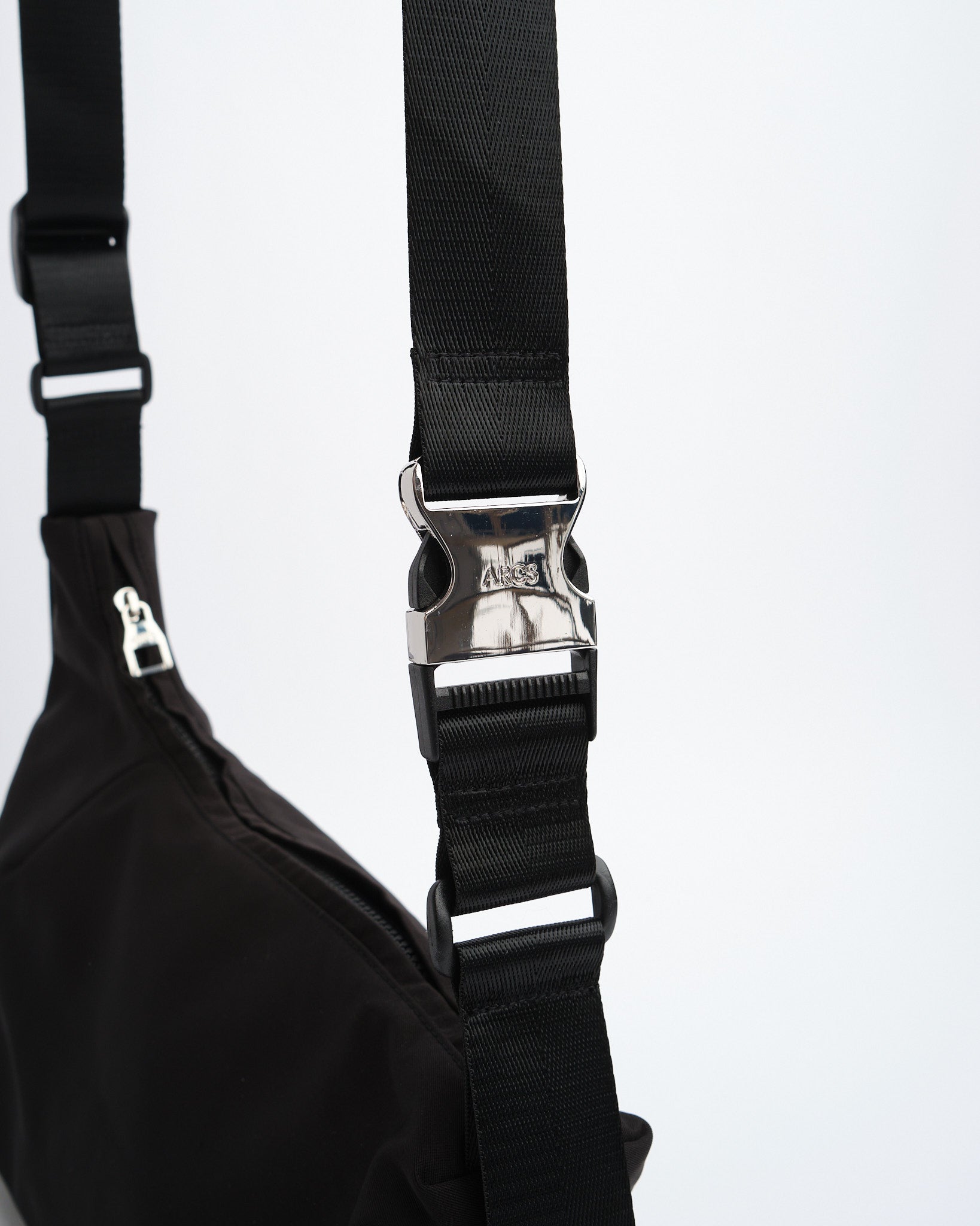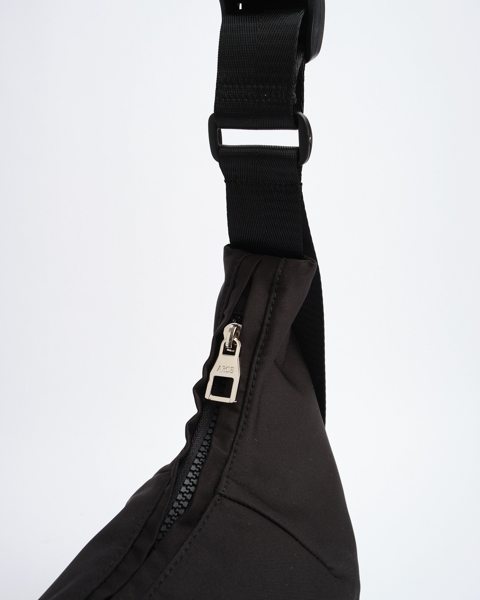 Sustainable Material: Constructed from recycled polyester derived from plastic bottles, promoting environmental responsibility. Unique Asymmetrical Design: Features a distinctive shape that adds a modern touch to any outfit. Adjustable Padded Strap: Provides customizable length and enhanced comfort for crossbody wear. Signature Metal Hardware: Equipped with branded metal accents, enhancing durability and style. Spacious Main Compartment: Offers ample space for essentials, suitable for daily activities. Internal Pocket: Includes an interior pouch for organized storage of smaller items. Piece-Dyed Fabric: Each bag undergoes a unique dyeing process, resulting in one-of-a-kind color variations. Lightweight Construction: Ensures ease of carrying without compromising on durability. Versatile Black Color: A classic hue that complements various styles and occasions. Ethically Produced: Reflects ARCS London's dedication to responsible manufacturing practices.