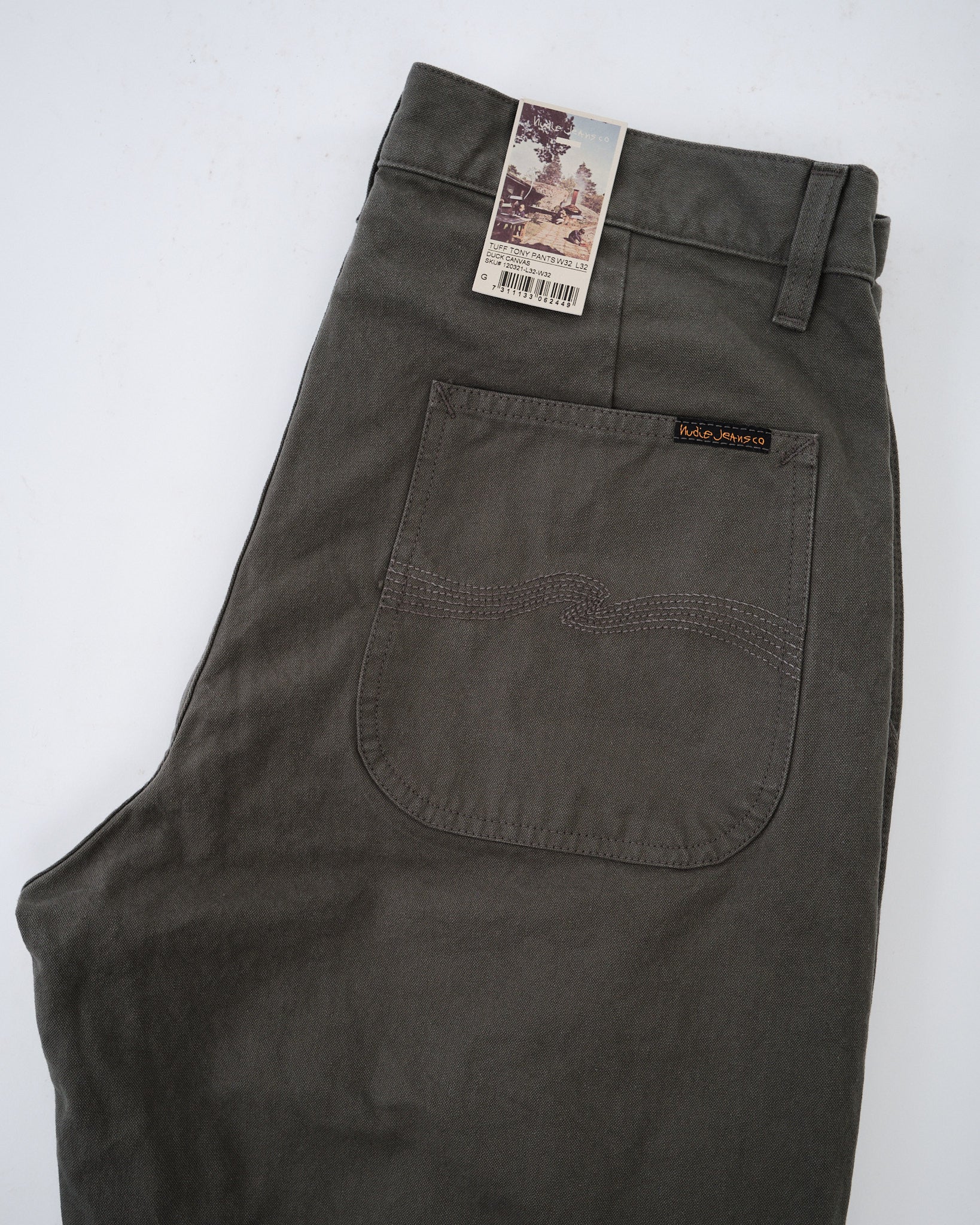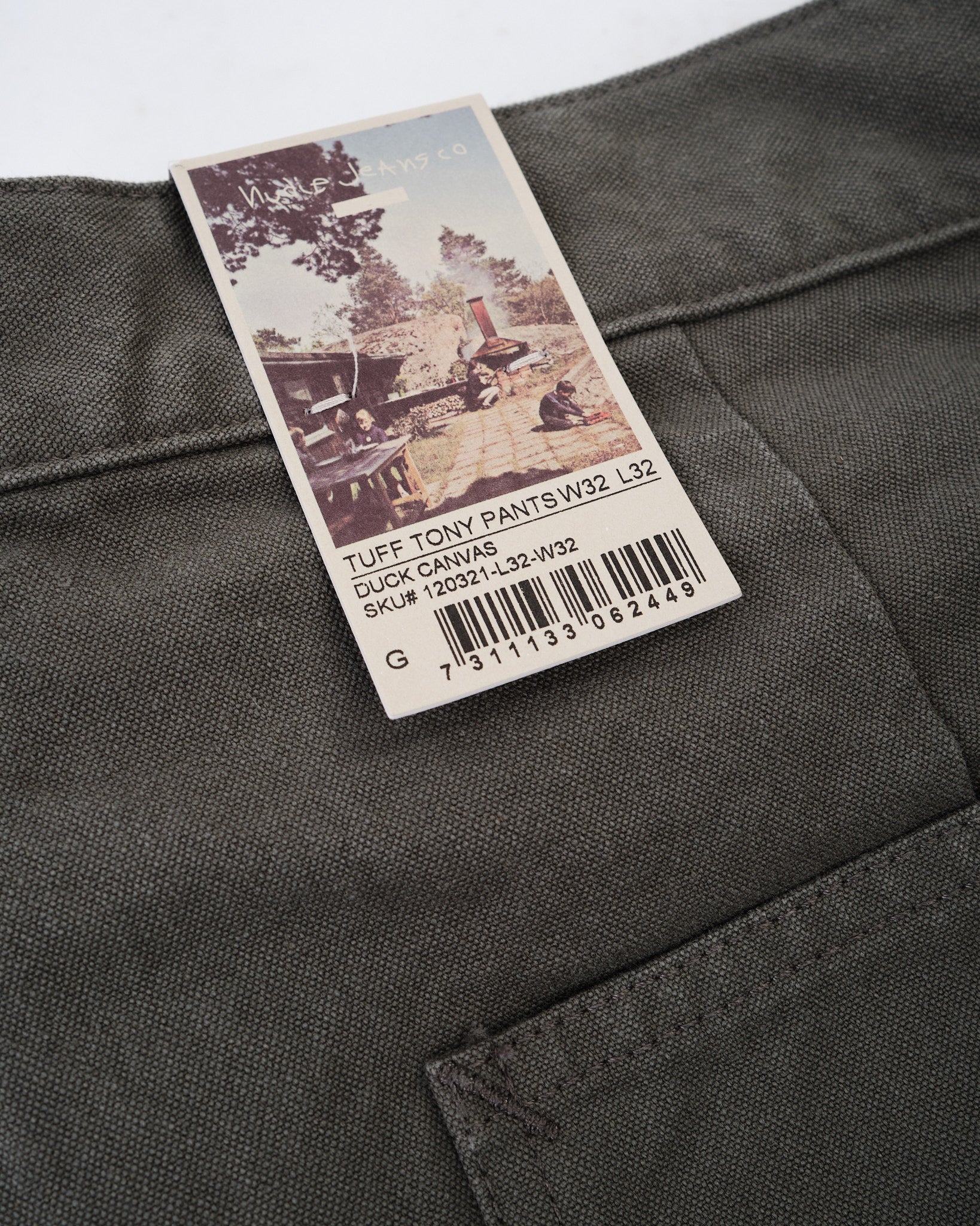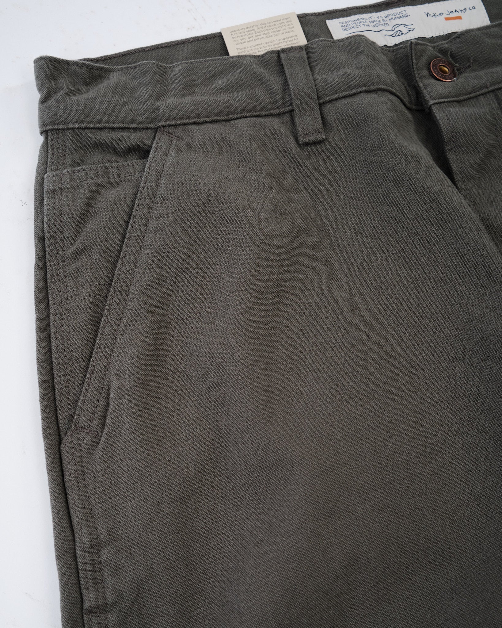 The NUDIE JEANS CO. TUFF TONY PANTS DUCK CANVAS embrace the essence of authentic workwear, offering a loose fit, wide leg, and a comfortable high waist. Inspired by mid-20th-century vintage hunting gear, these pants feature tonal stitching and copper "Donut" buttons, adding refined workwear aesthetics to a timeless silhouette.