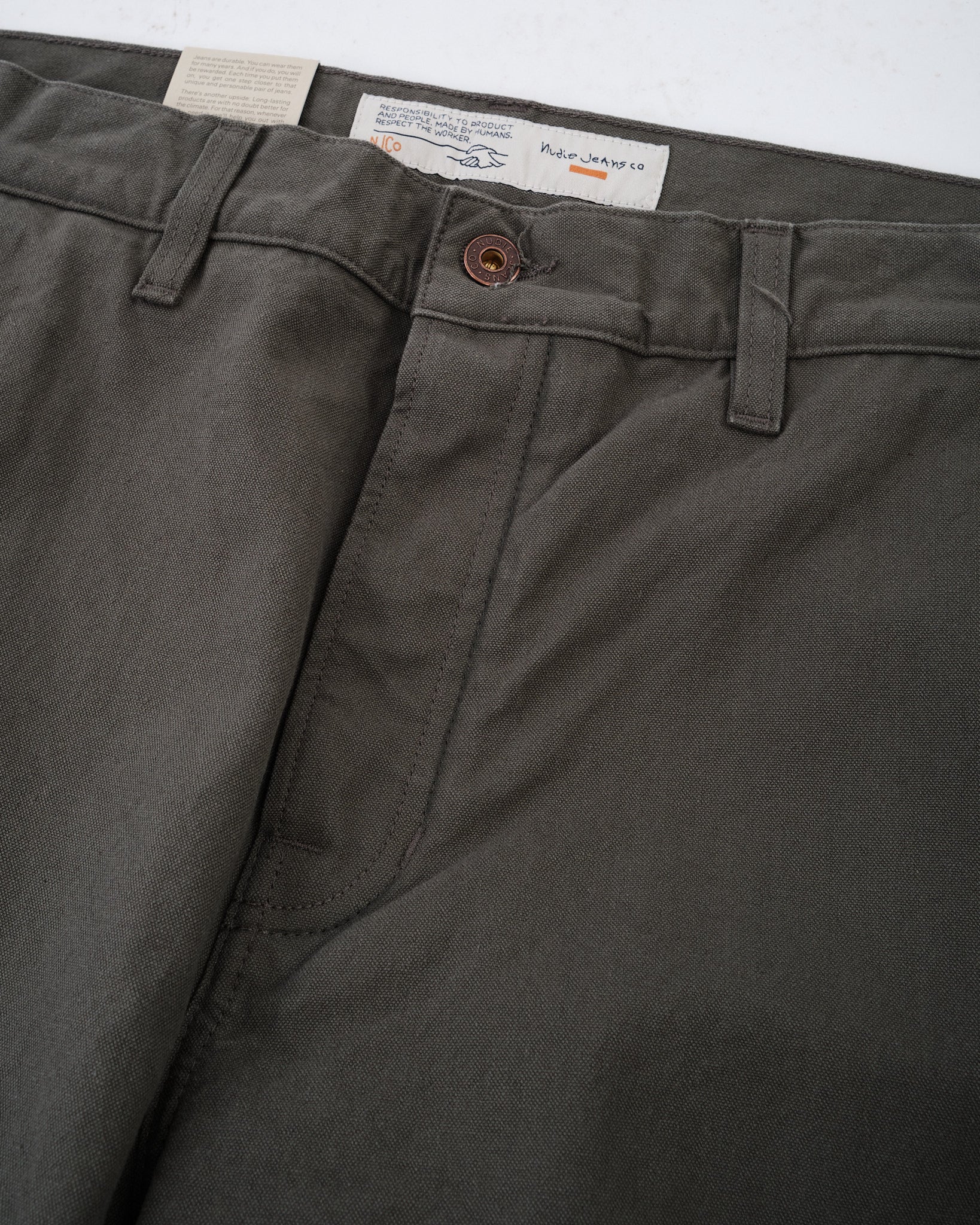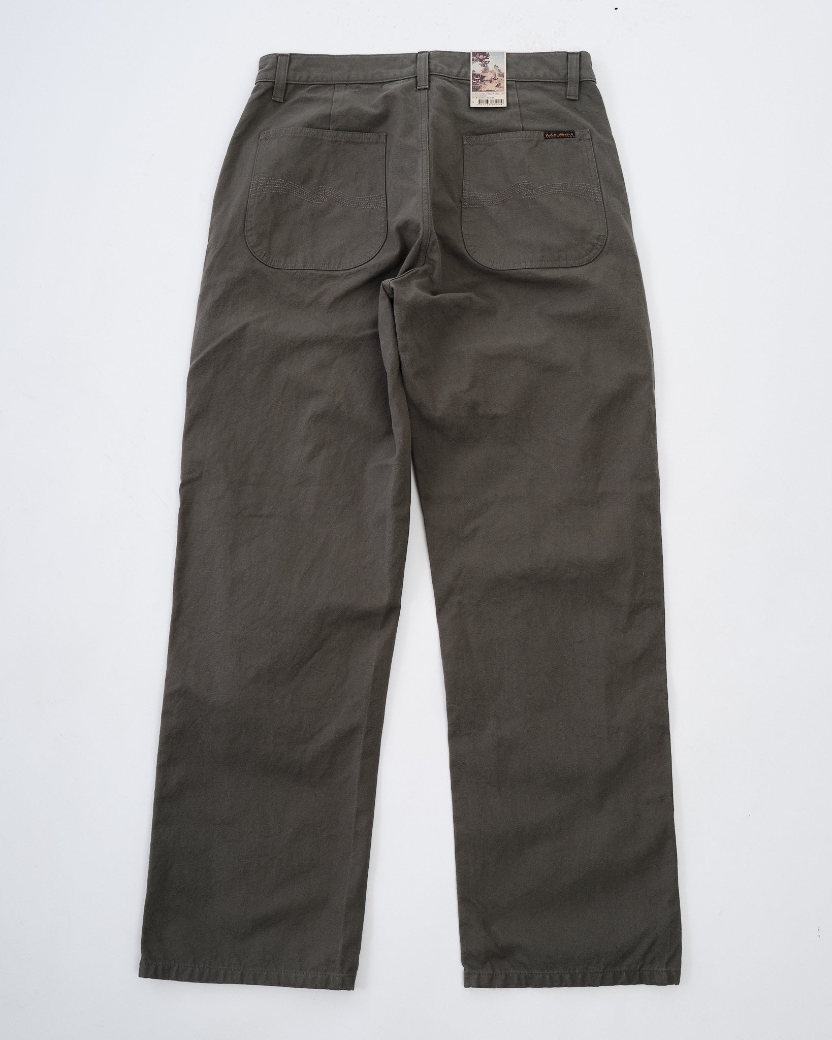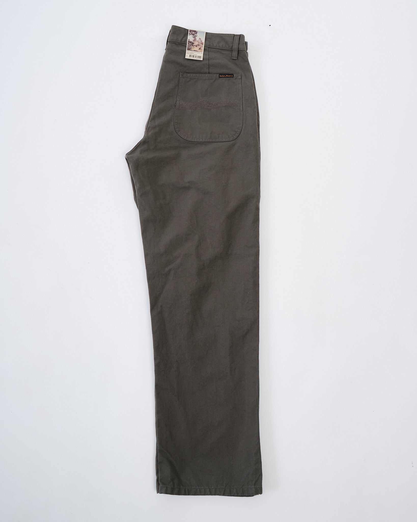 The NUDIE JEANS CO. TUFF TONY PANTS DUCK CANVAS embrace the essence of authentic workwear, offering a loose fit, wide leg, and a comfortable high waist. Inspired by mid-20th-century vintage hunting gear, these pants feature tonal stitching and copper "Donut" buttons, adding refined workwear aesthetics to a timeless silhouette.