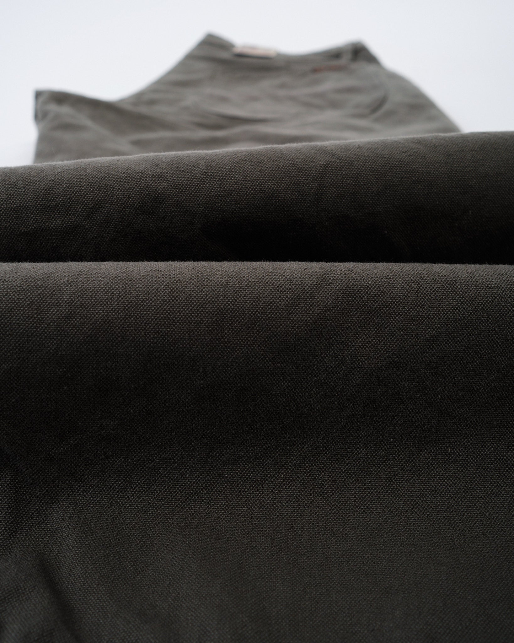 Crafted from Duck Canvas, a pale fir-green 2-ply canvas weave, this fabric is a tribute to heritage craftsmanship. Using irregular ring-spun yarns twisted into durable 2-ply threads, the canvas is yarn-dyed through a patented process, ensuring a rich, evolving patina. The tightly woven structure creates a firm, highly textural surface, celebrating natural imperfections while offering superior durability.