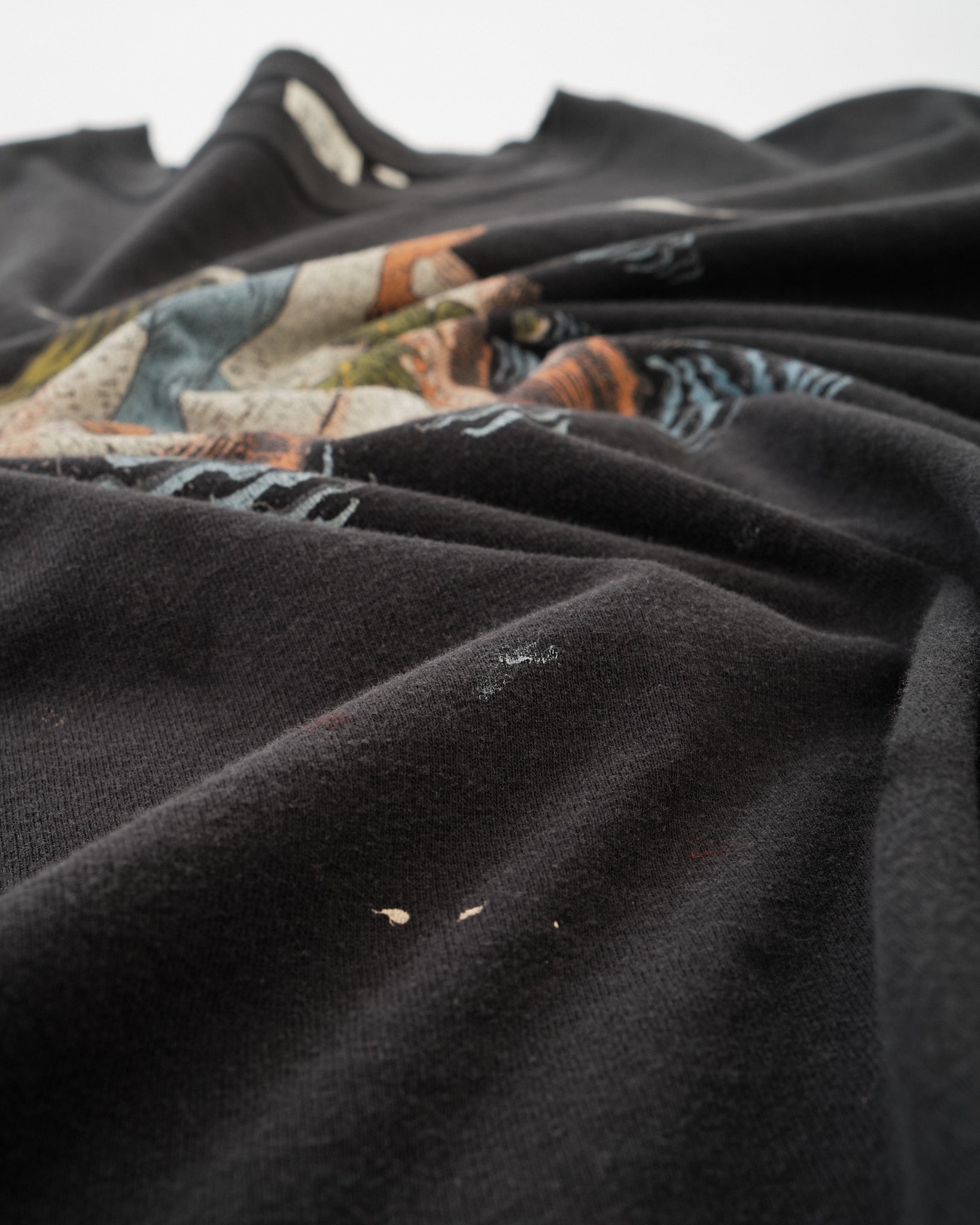 Set against a washed Black base, the tones feel muted and balanced, allowing the graphic to stand out subtly. The relaxed silhouette makes it easy to wear on its own or layered under a shirt or jacket.
