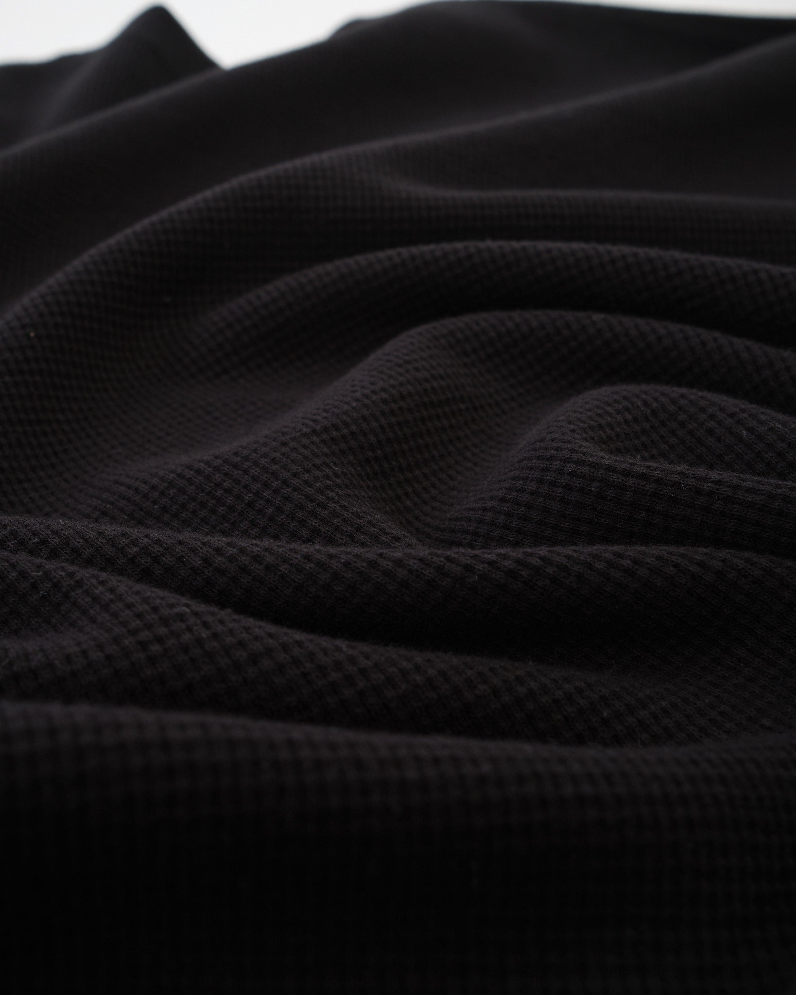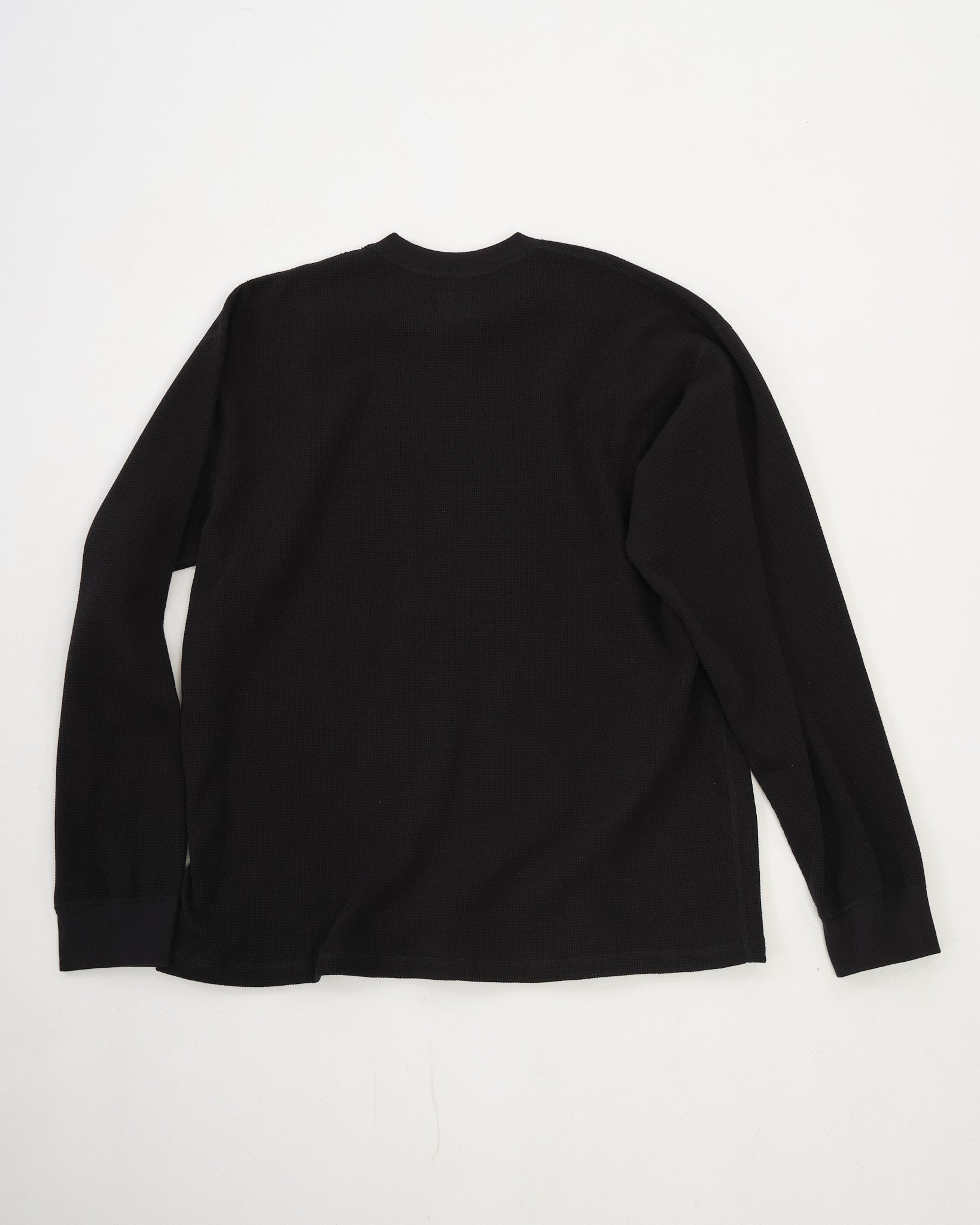 The relaxed fit allows it to sit comfortably on the body, making it easy to wear on its own or layered through shifting seasons. The black colour keeps things straightforward and versatile, while the waffle texture brings a subtle visual edge without overcomplicating things.