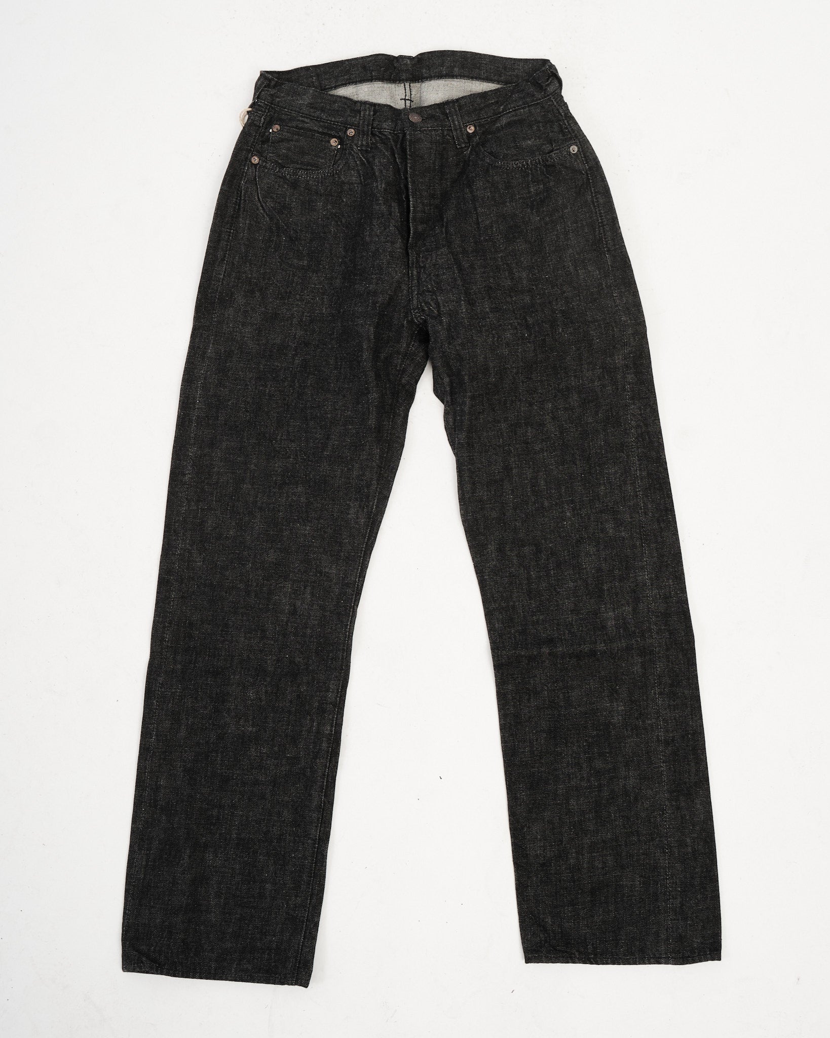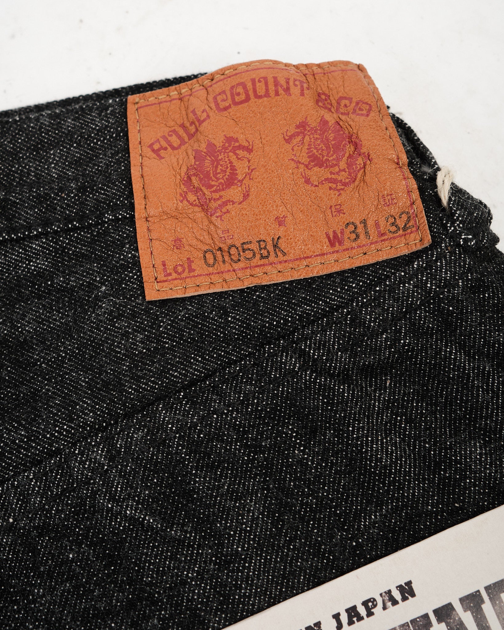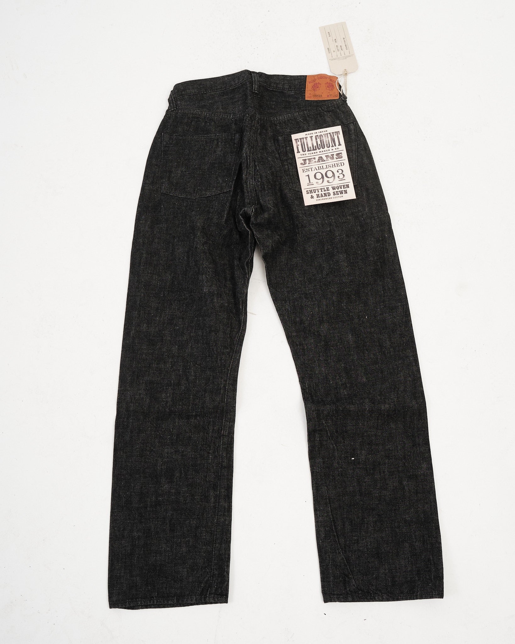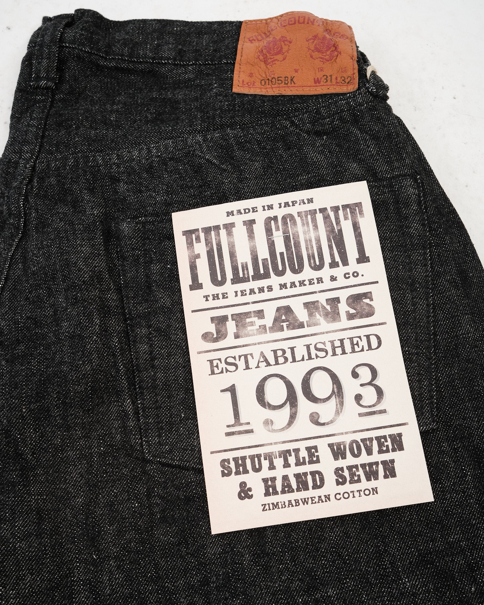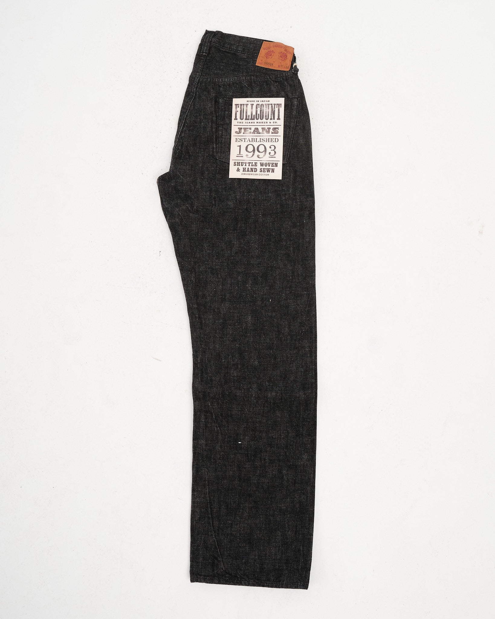 FULL COUNT 0105BK WIDE BLACK SELVEDGE DENIM (0105BK) är skapade för den som uppskattar mångsidigheten och karaktären hos premium svart denim. Tillverkade av 13,7oz original svart selvedge-denim, vävda av 100 % Zimbabwe-bomull, erbjuder dessa jeans överlägsen mjukhet, slitstyrka och andningsförmåga. Den vida 0105-siluetten, en Full Count-klassiker, ger en avslappnad men strukturerad passform. Till skillnad från indigofärgad denim bleknar repsfärgat svart tyg långsamt och utvecklar subtila vertikala slitningar över tid. Vävd långsamt på kraftvävstolar, behåller denna denim styrka, textur och komfort, vilket är signifikativt för högkvalitativt hantverk.