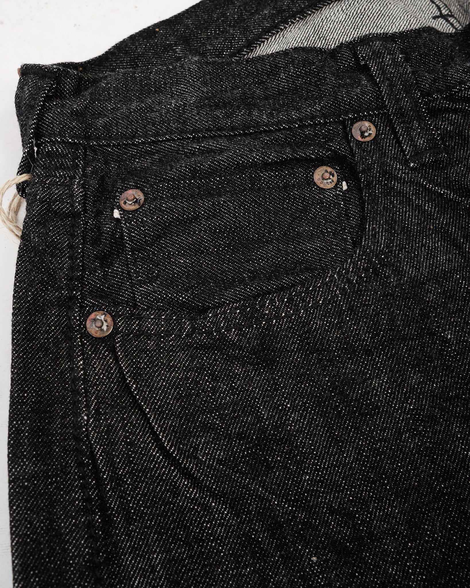 - 13,7oz original svart selvedge-denim för slitstyrka och textur