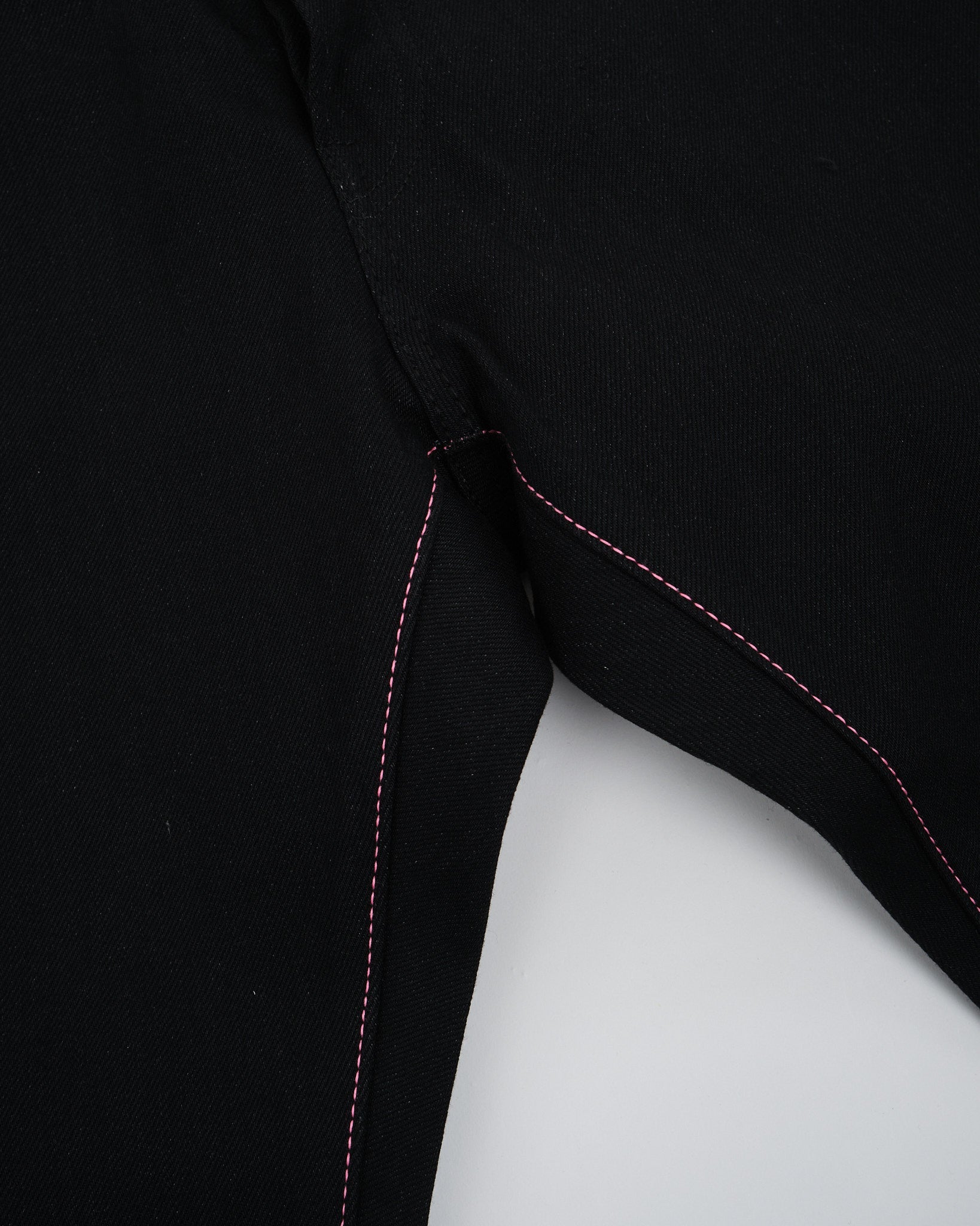 Sofistikerade detaljer: Från svartlackerade järnknappar till den signatur persiko-rosa kantsöm, varje detalj är noggrant övervägd.