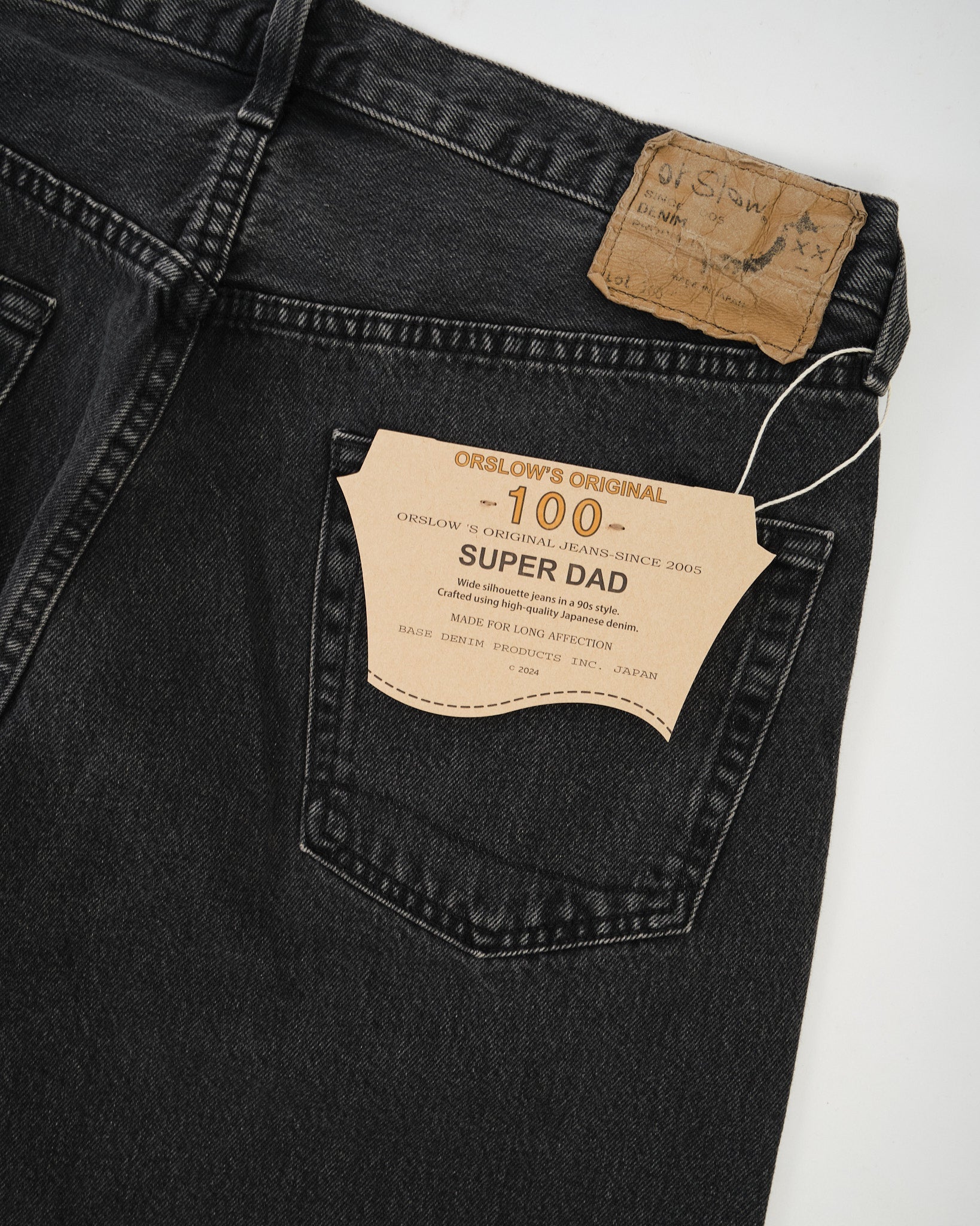 De orSlow 100 Super Dad's Denimbyxor i Svart Denimsten erbjuder en modern twist på de klassiska avslappnade jeansen, som kombinerar komfort med en modern estetik. Tillverkade av premium japansk denim, dessa byxor har en sten-tvättad svart finish, vilket ger ett unikt, använt utseende som lägger karaktär till vilken outfit som helst.