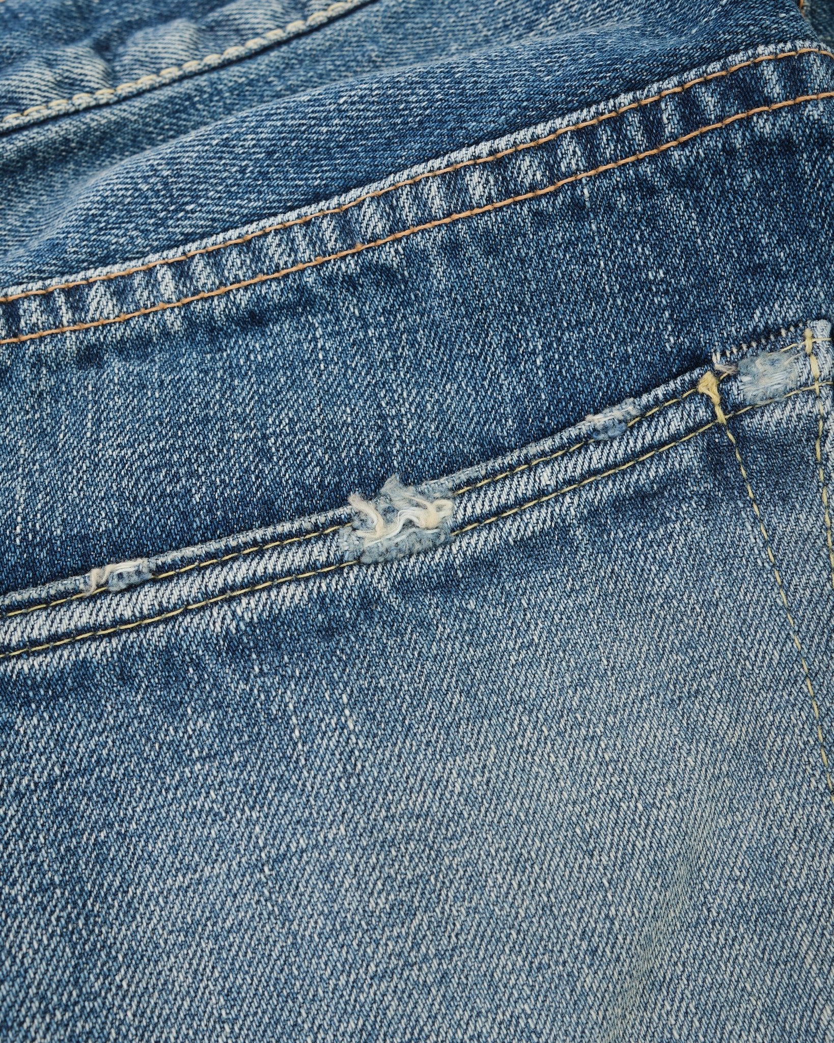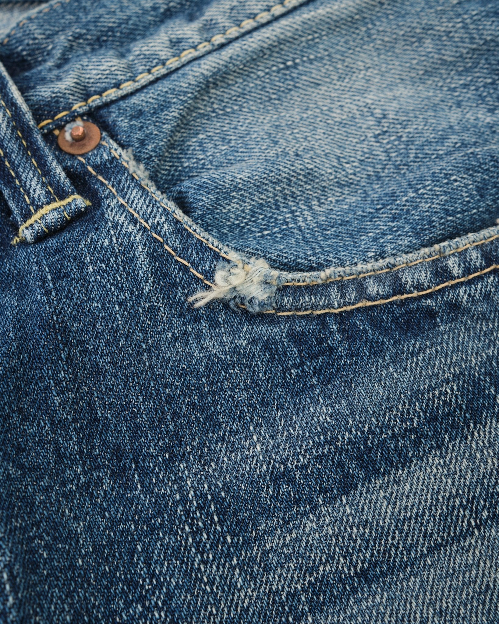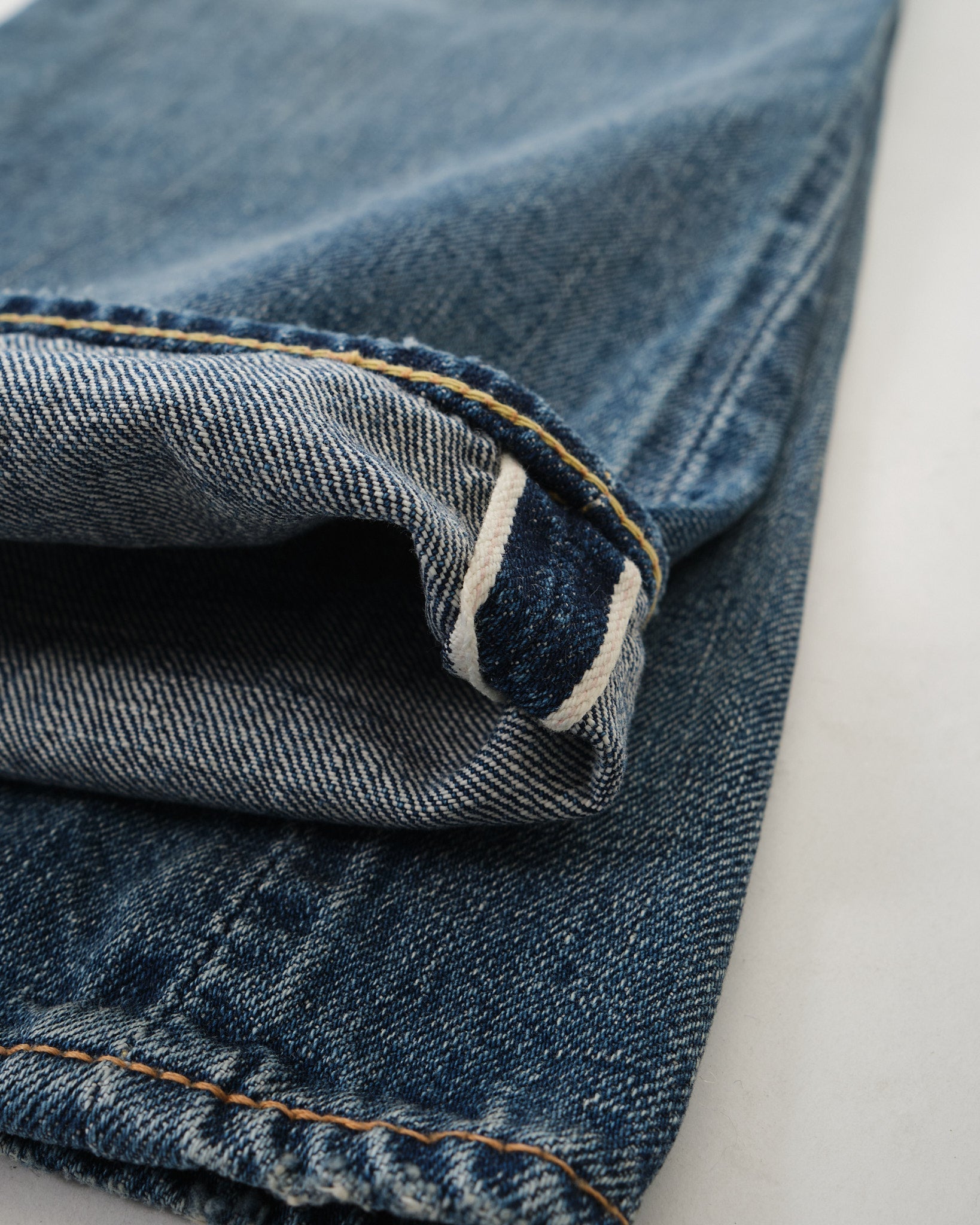 The Fullcount Dartford 1101 jeans carry a strong dose of rock ’n’ roll spirit. Inspired by a young Mick Jagger’s denim jacket and the legendary meeting of the Rolling Stones in Dartford, these jeans are finished with an authentic worn-in look. Made in Japan from 13.7oz original selvedge denim woven with 100% Zimbabwe cotton, they combine durability with a natural stretch that ensures all-day comfort. The processed indigo tone, yellowish fades, and crisp creases make them look like an old favorite from the very first wear. Built on old shuttle looms, each pair offers its own unique character, so no two are ever the same.
