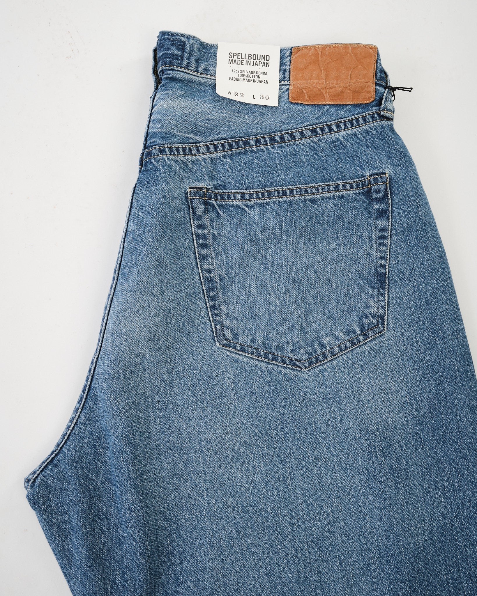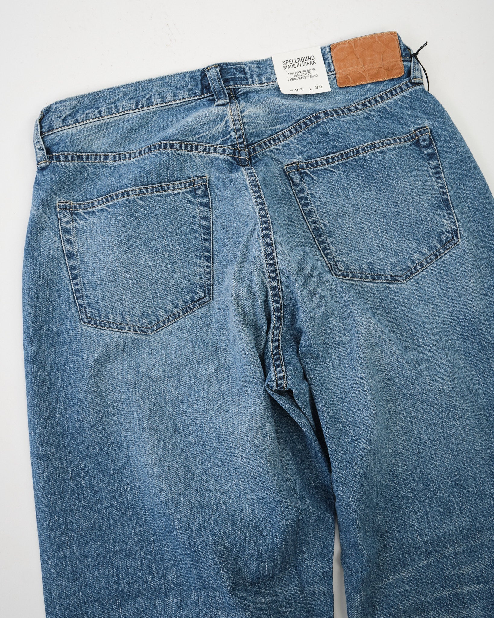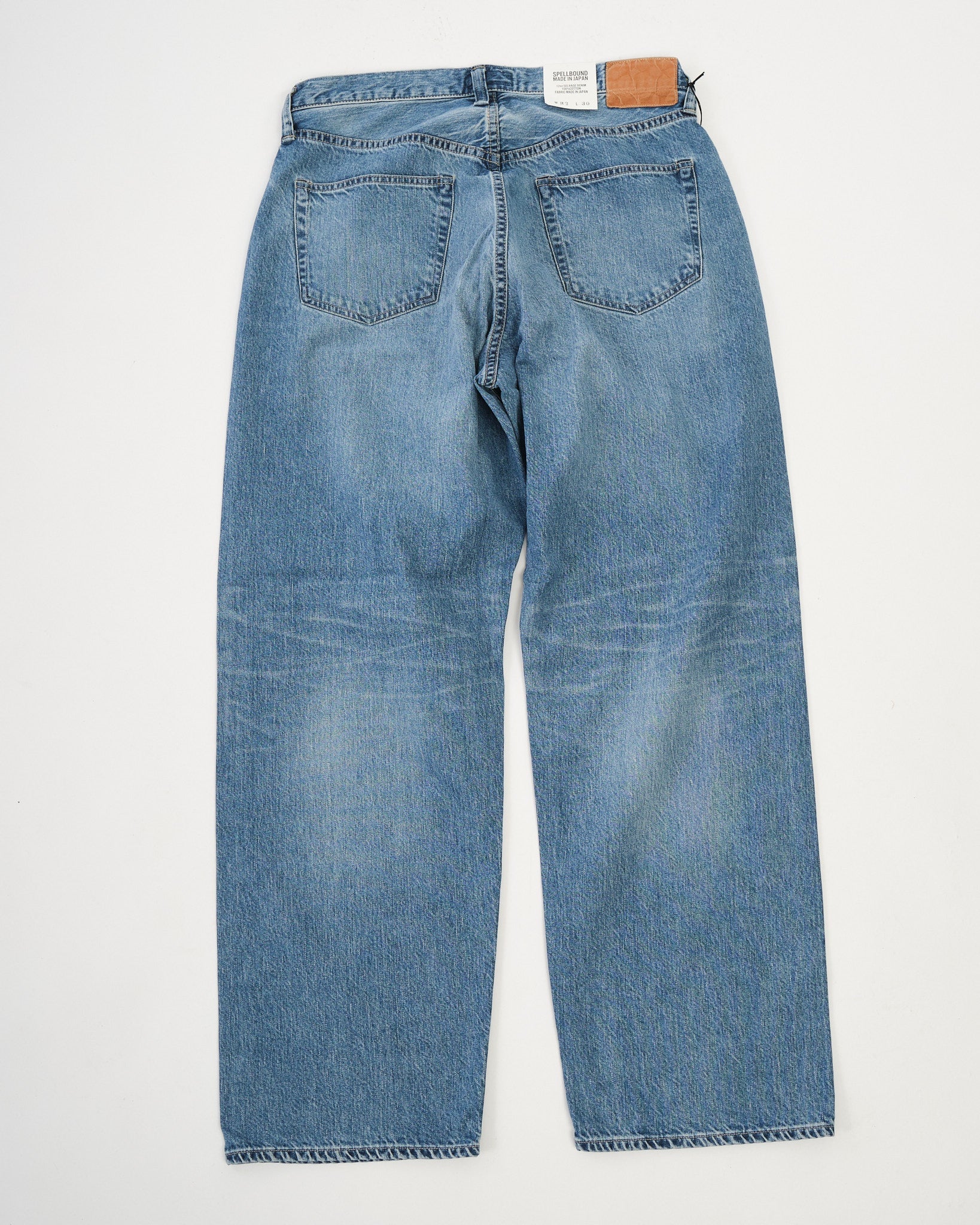 The Spellbound 40-703C-U 5-Pocket Selvedge Wide Tapered Jeans deliver a relaxed silhouette with the lived-in charm of vintage denim. Cut from a 12oz selvedge denim — Sanforized for easy wear — the fabric is rope-dyed with pure indigo and woven on shuttle looms at reduced tension to highlight the natural slub of American cotton yarns.