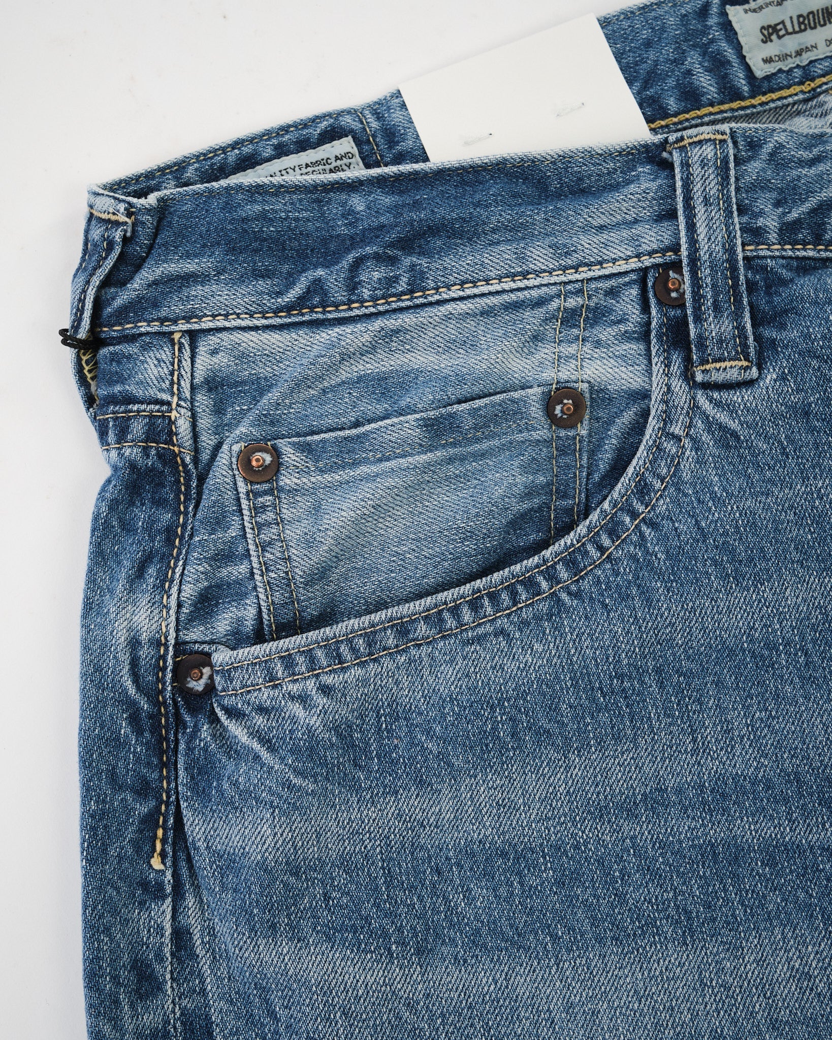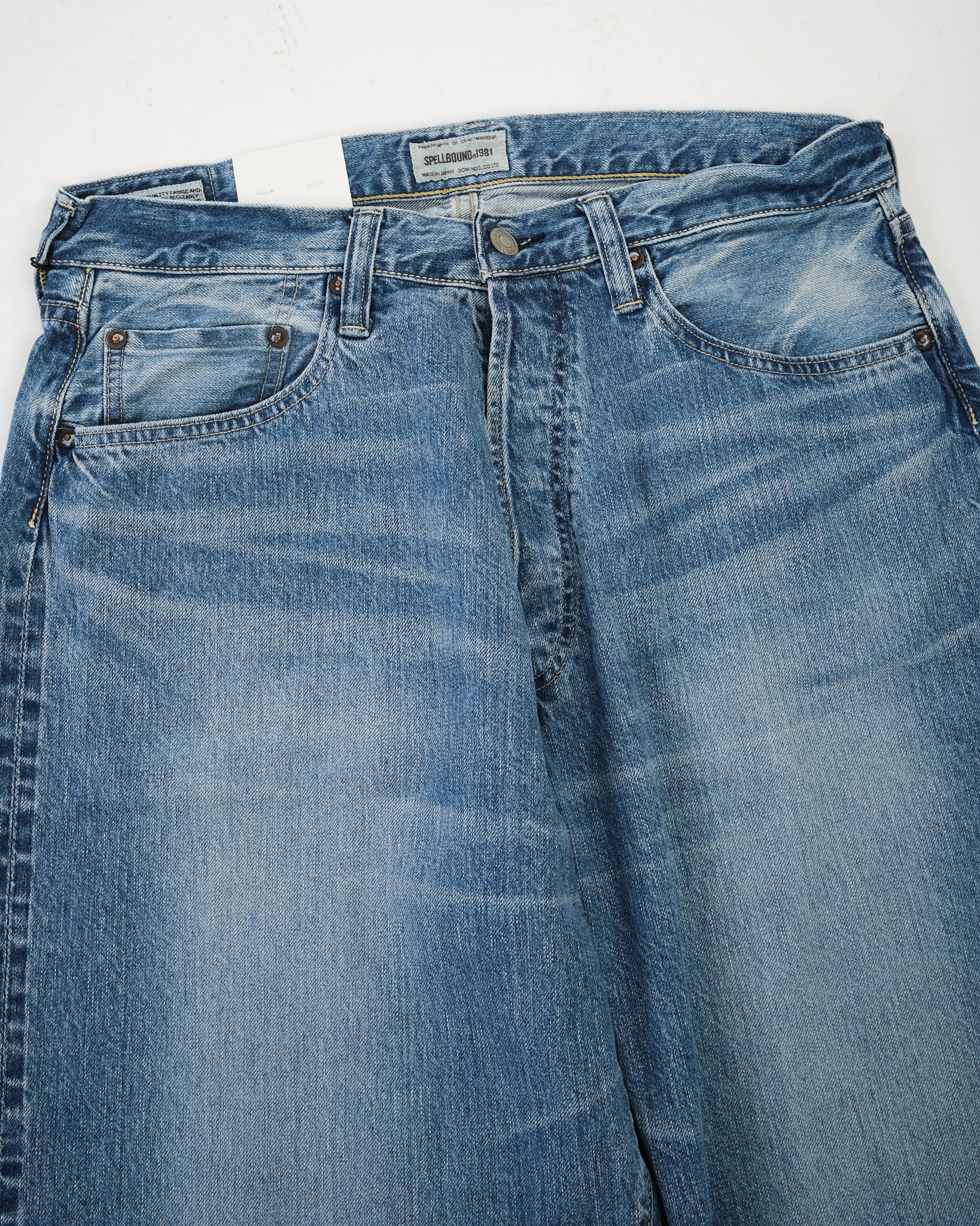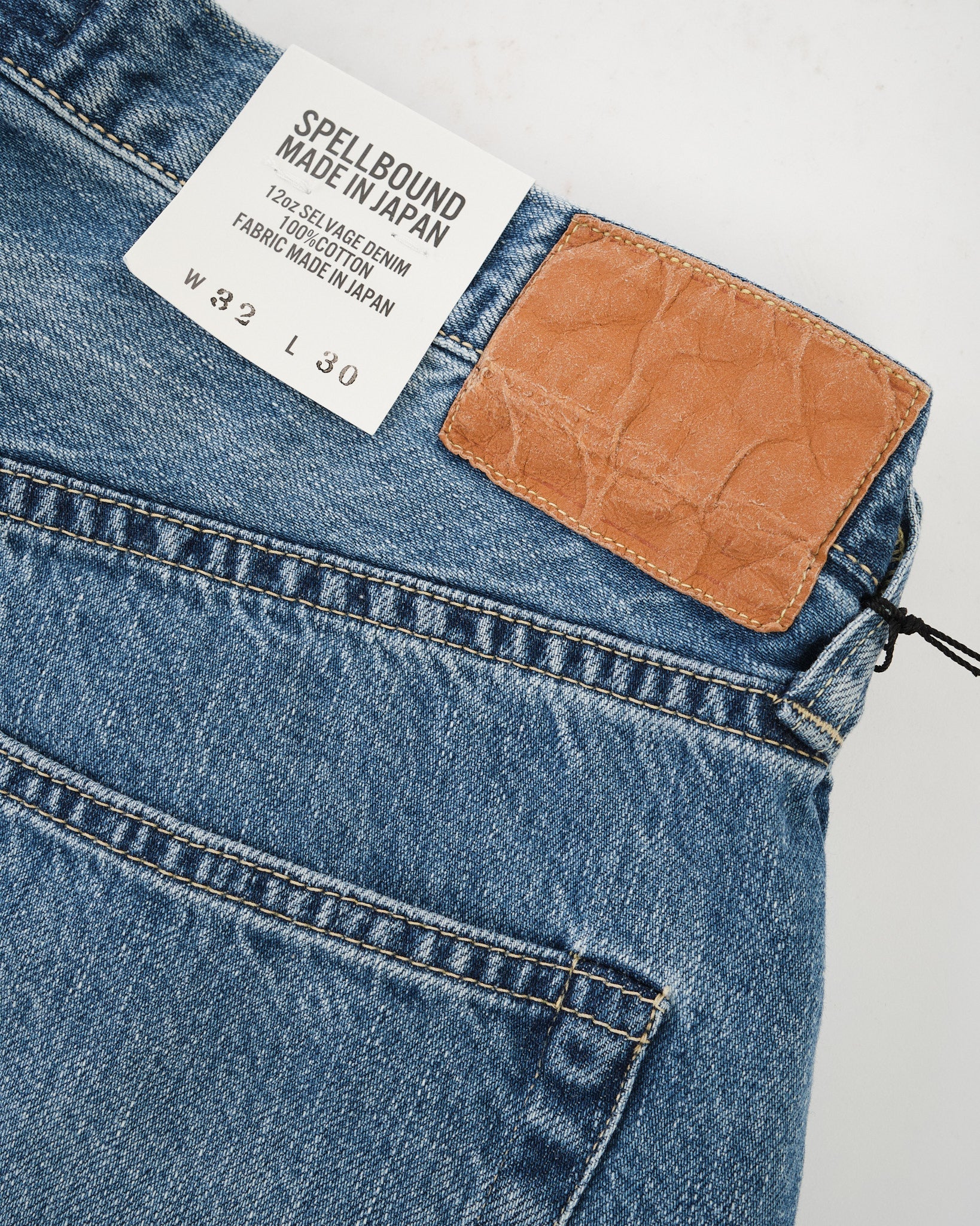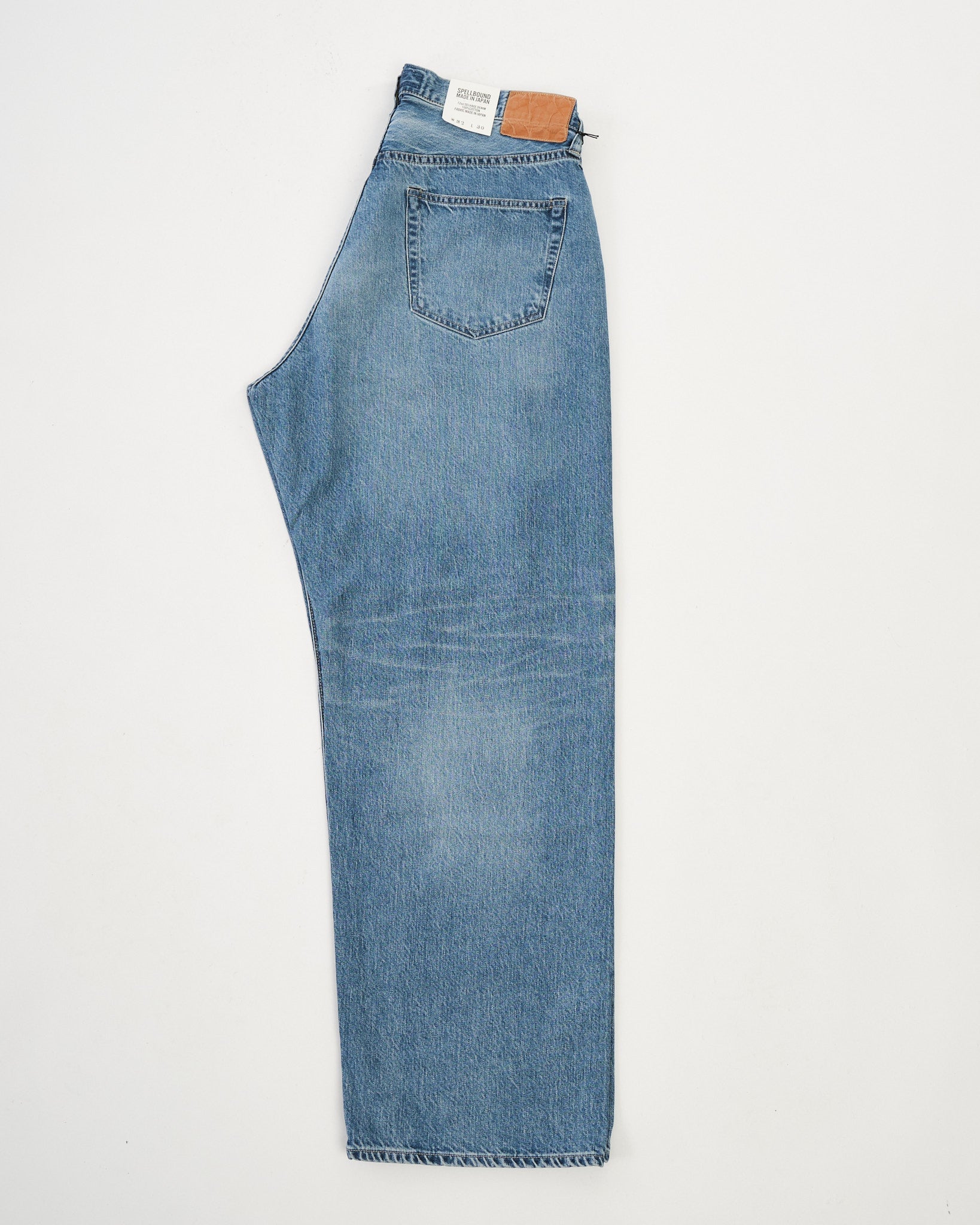 The Spellbound 40-703C-U 5-Pocket Selvedge Wide Tapered Jeans deliver a relaxed silhouette with the lived-in charm of vintage denim. Cut from a 12oz selvedge denim — Sanforized for easy wear — the fabric is rope-dyed with pure indigo and woven on shuttle looms at reduced tension to highlight the natural slub of American cotton yarns.