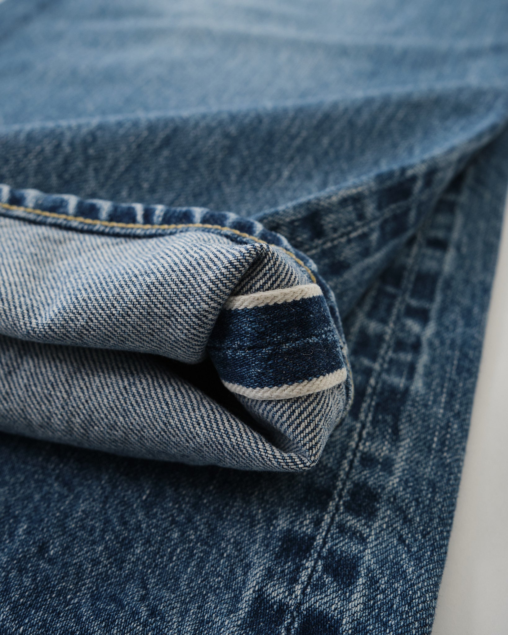 Inspired by vintage Levi’s, these jeans feature authentic sewing techniques, hidden rivets, and a combination of cotton and core thread stitching. The fit is deep in the rise, roomy at the hips, and tapers neatly towards the hem for a modern, versatile profile. Finished with HOWA’s carefully developed used-wash, the jeans show soft, natural fading without heavy whiskers or creases, capturing the subtle character of a pair worn and loved over years.