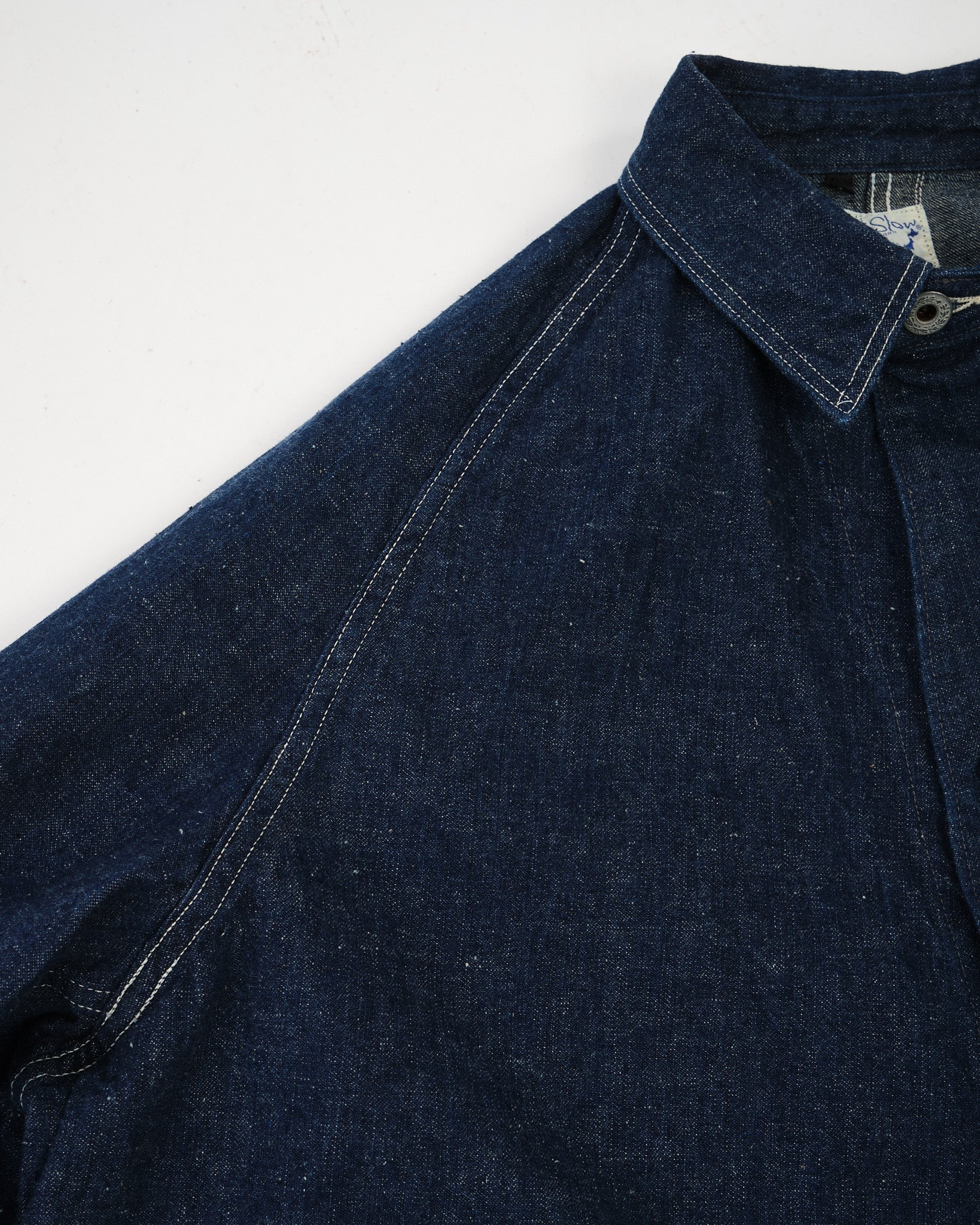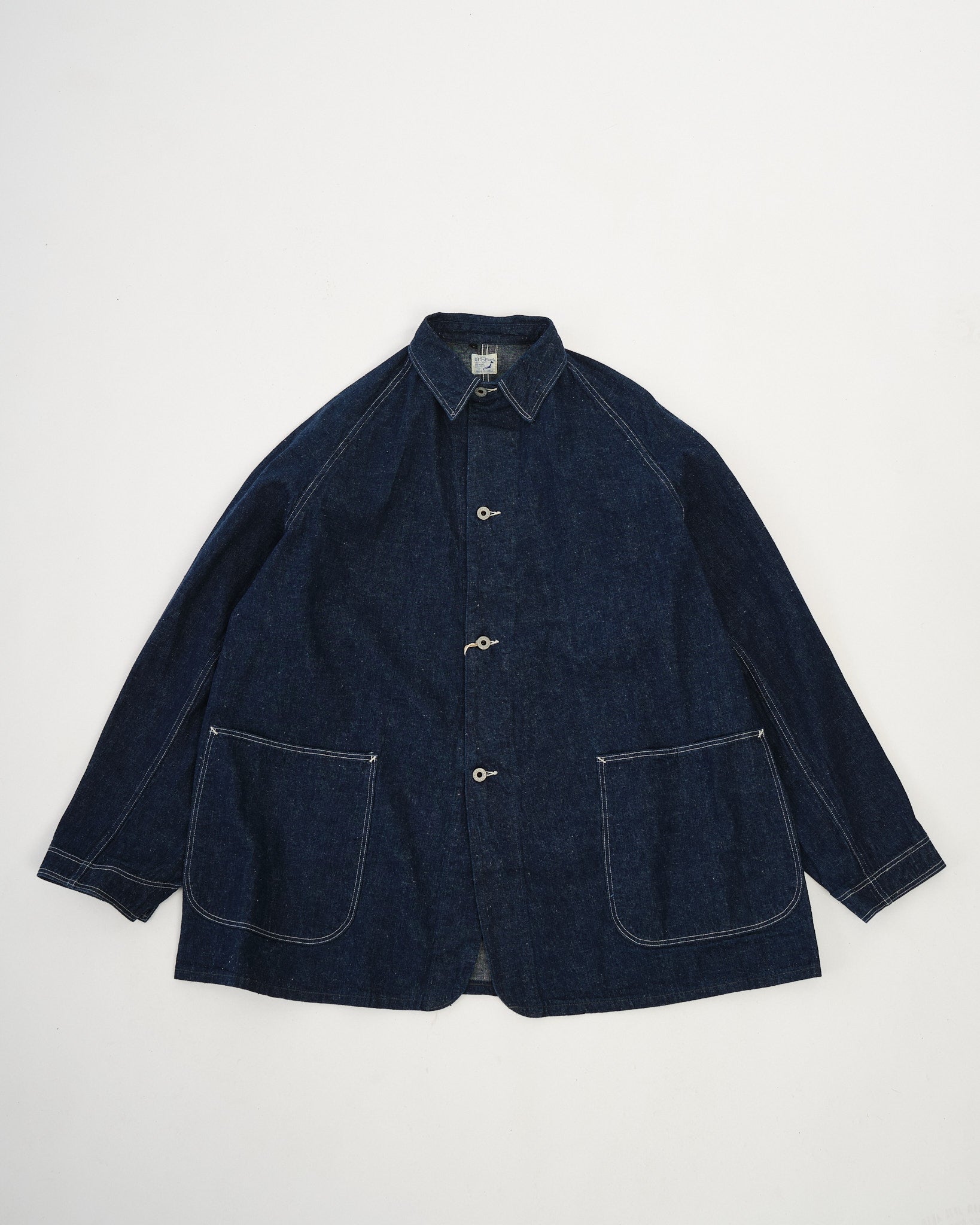 orSlow 40-talets WWII Denim Overall med lös passform och en tvätt (Produktkod: 01-6142-81) hyllar klassiskt 1940-tals arbetskläder med en blandning av funktionalitet och tidlös design. Tillverkad av 9oz japansk denim, har denna overall en lös, boxig passform som tillåter enkel lager-på-lager klädning samtidigt som den behåller komforten. En-tvätt-behandlingen ger den en lätt inarbetad känsla, vilket mjukar upp tyget för omedelbar bärbarhet. Viktiga detaljer inkluderar en kontrastbeige manchesterkrage, fyra främre verktygsfickor, en stor intern lappficka, och justerbara ingenjörsmanschetter. Förstärkt med trippelnålssömmar, nitförstärkningar, och logostämplade metallknappar, är denna jacka designad för hållbarhet och dagligt bruk. Tillverkad i Japan, förkroppsligar den orSlows hängivenhet till hantverk och arvsestetik.