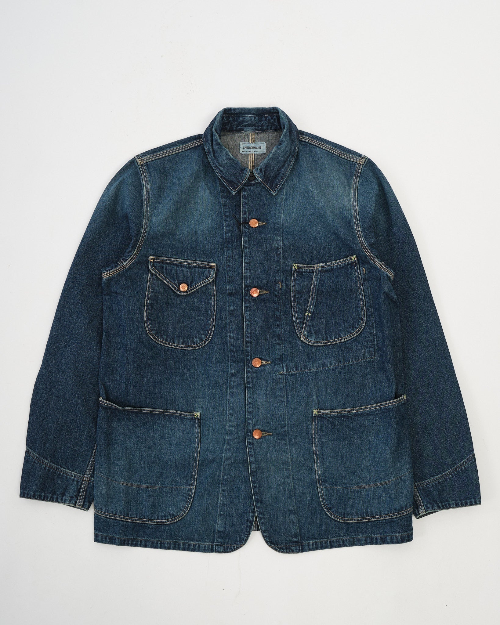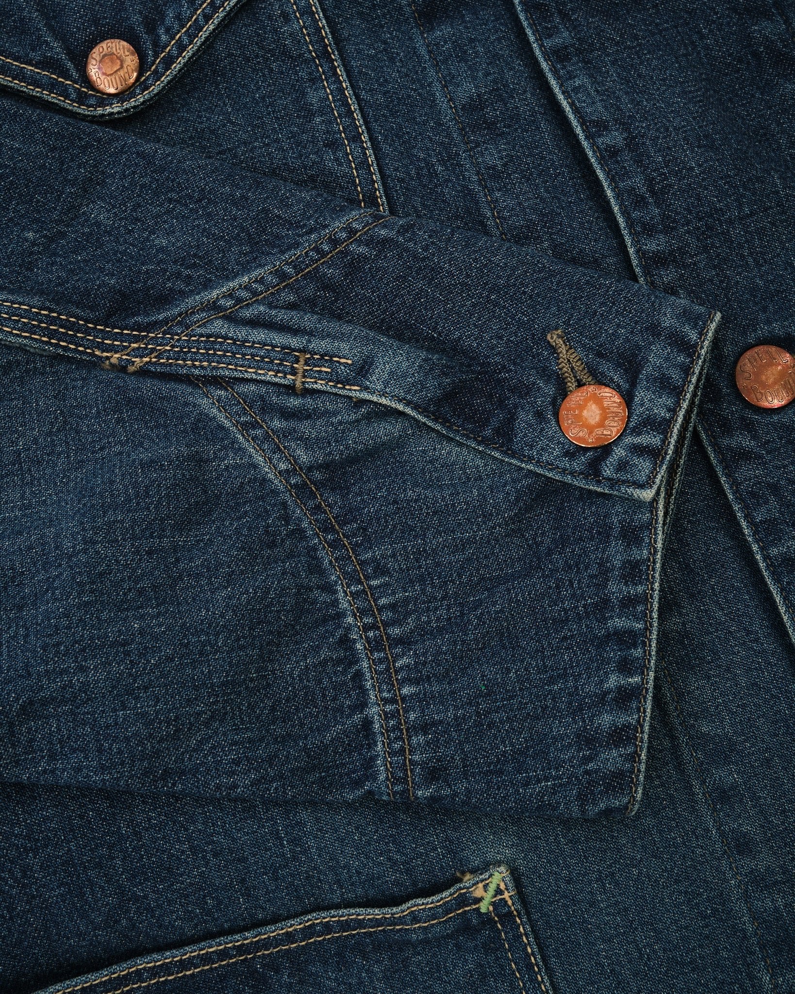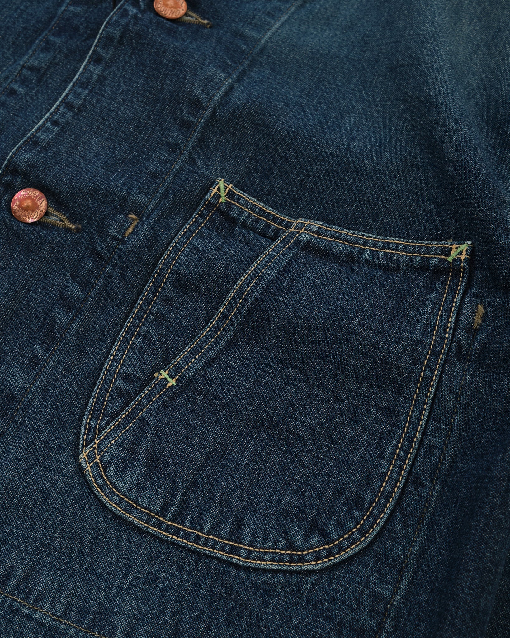The Spellbound 48-917D Coverall captures the essence of vintage workwear with a modern Japanese twist. Cut from 10.5oz denim woven in a 3/1 twill, it uses primarily American cotton rope-dyed with pure indigo, giving the fabric a soft yet character-rich texture. Natural slub yarn enhances depth, ensuring the denim will age with personality.