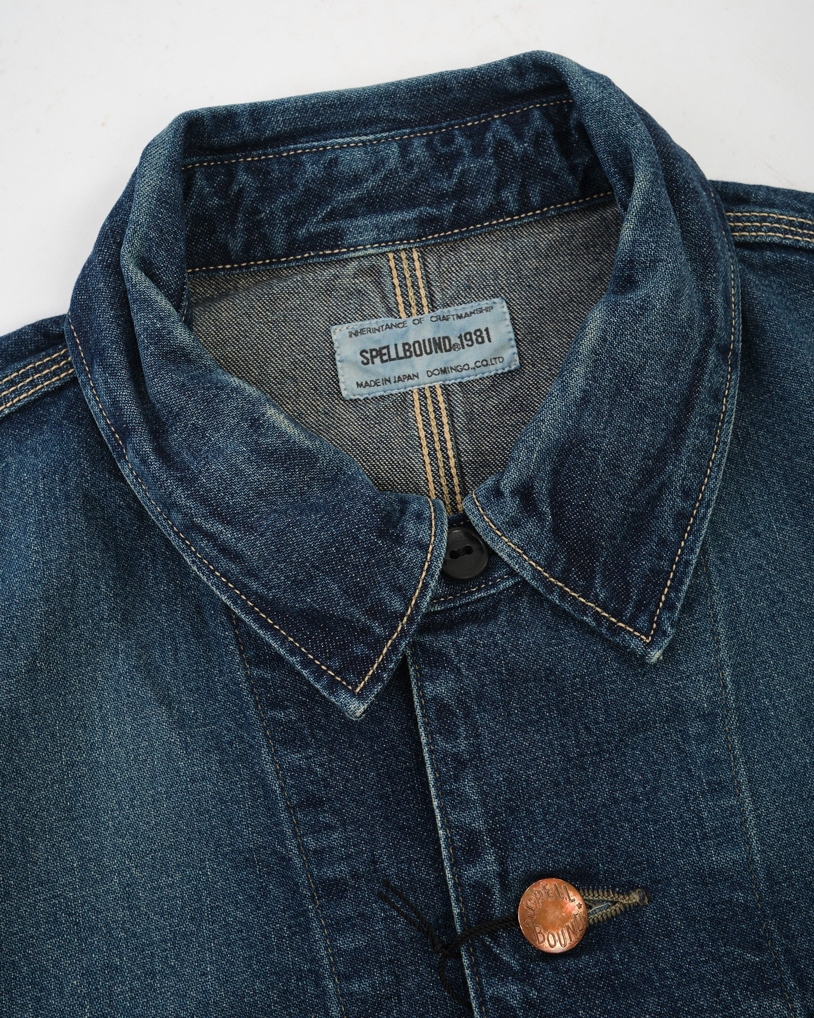 Design details include original tack buttons, green rivets, and Spellbound’s signature S-stitching on the pockets — subtle nods to heritage while adding a distinct identity. The silhouette is relaxed yet timeless, shaped with a moderate A-frame cut for easy coordination with denim or trousers. Finished with HOWA’s natural used-wash, the coverall arrives with the lived-in charm of a piece that’s been worn for two years, ready to keep evolving with you.