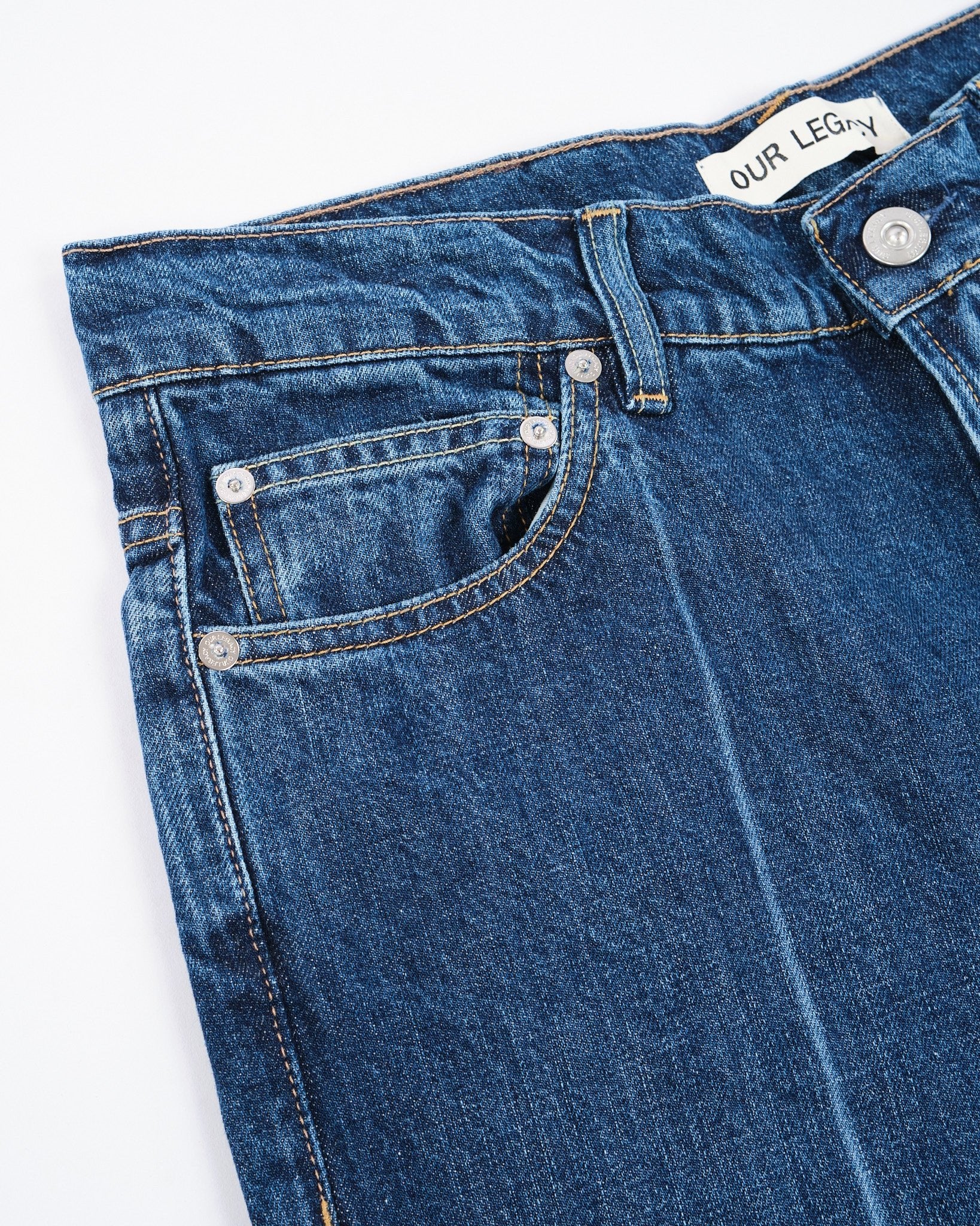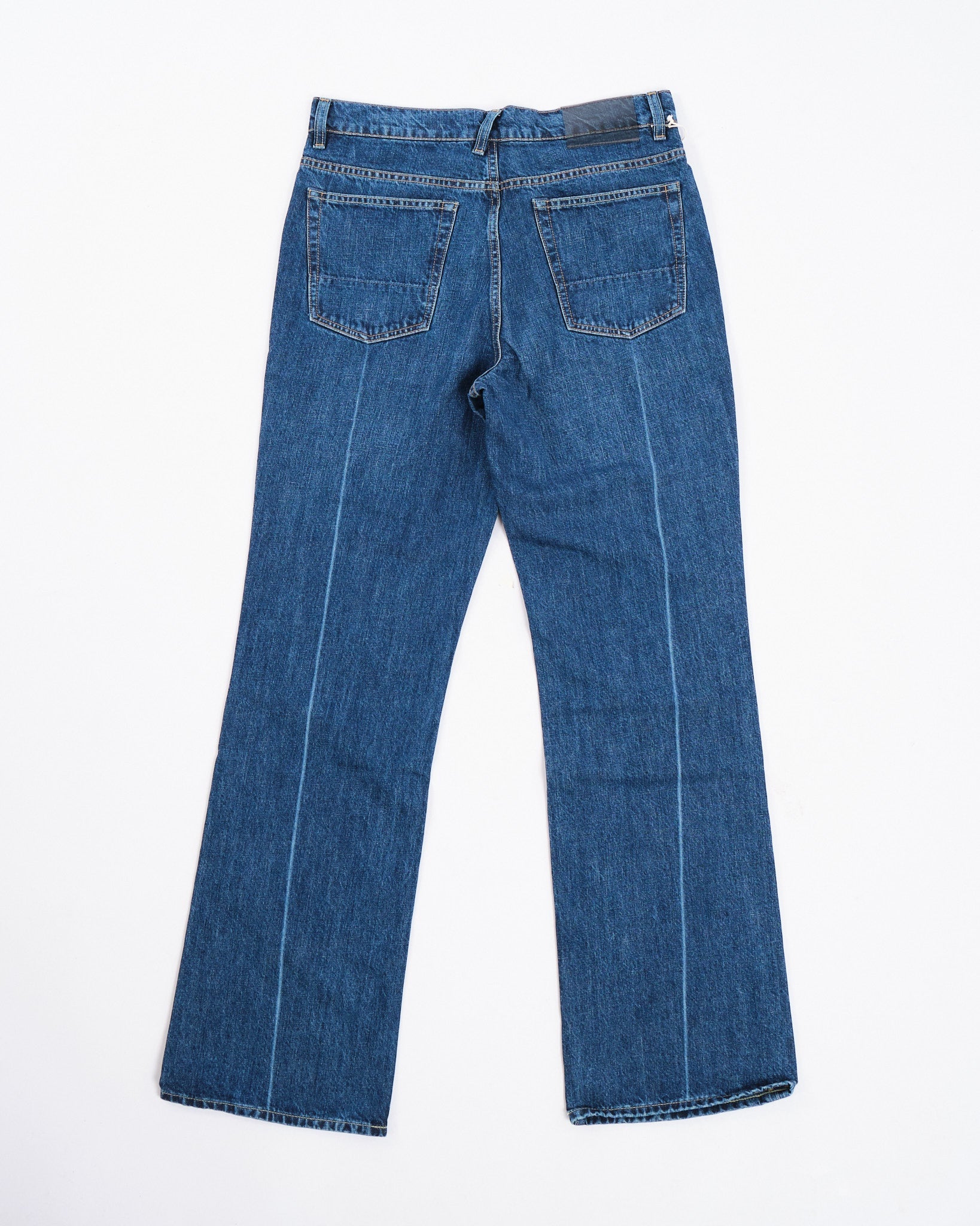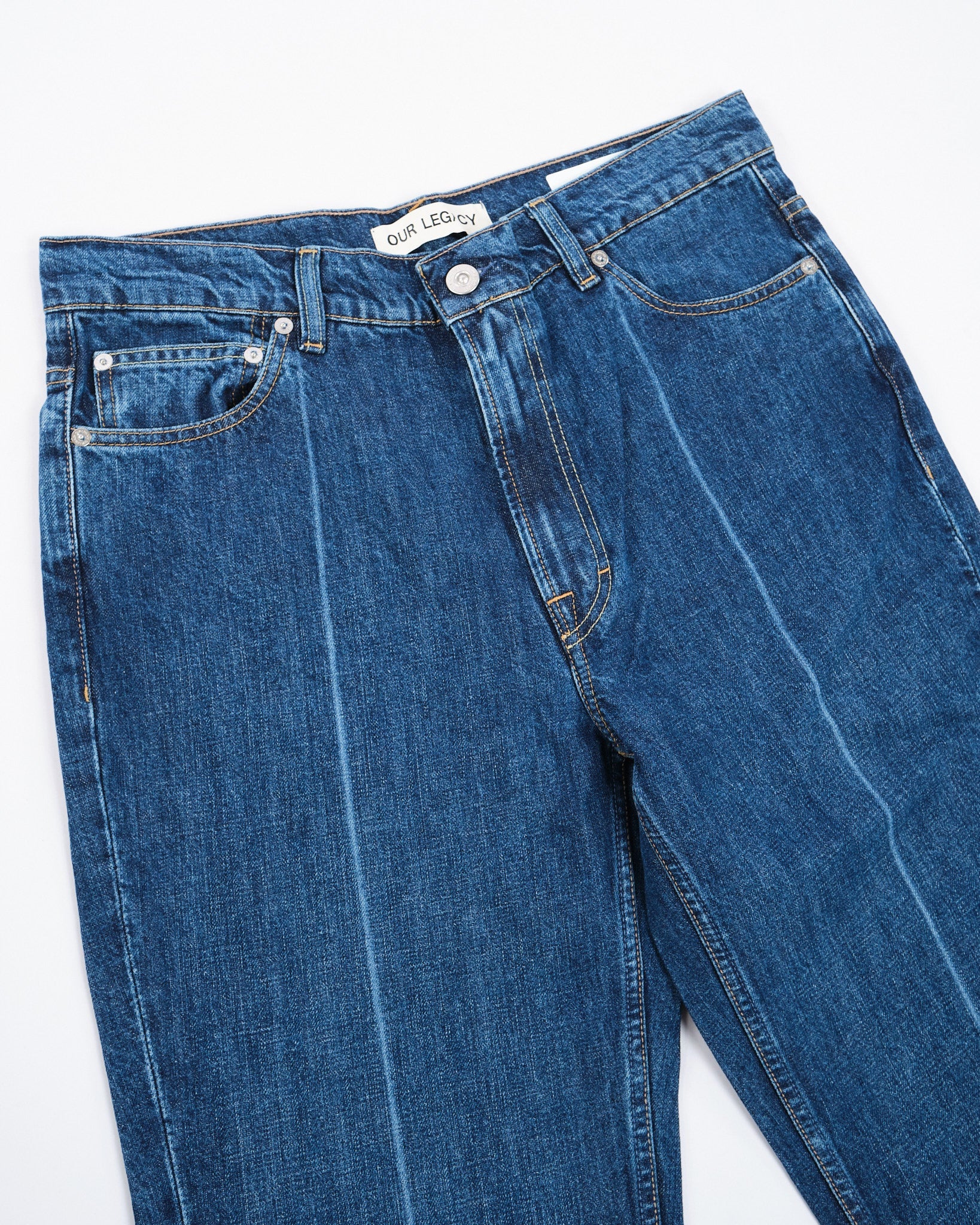 Vår Legacy's 70s Cut i Mid Blue Crease Denim omgestaltar ett klassiskt årtionde av stil med en modern twist. Denna unika jeansmodell är tillverkad av en blandning av 52% ekologisk bomull, 29% Lyocell och 19% linne, hämtade från italienska denimtillverkare. Den vintage tvätten och vecklinjerna ger karaktär åt jeansen, medan den höga midjan, raka höften och boot cut-formen erbjuder en smickrande och bekväm passform. Dessa jeans har också förstärkta bakfickor, mässingsnitar och en dragkedja för praktiskhet och hållbarhet. Varje par är unikt, tack vare en speciell tvättprocess som skapar en önskvärd vintageeffekt, och de kommer naturligtvis att slitas över tid för att återspegla bärarens livsstil.