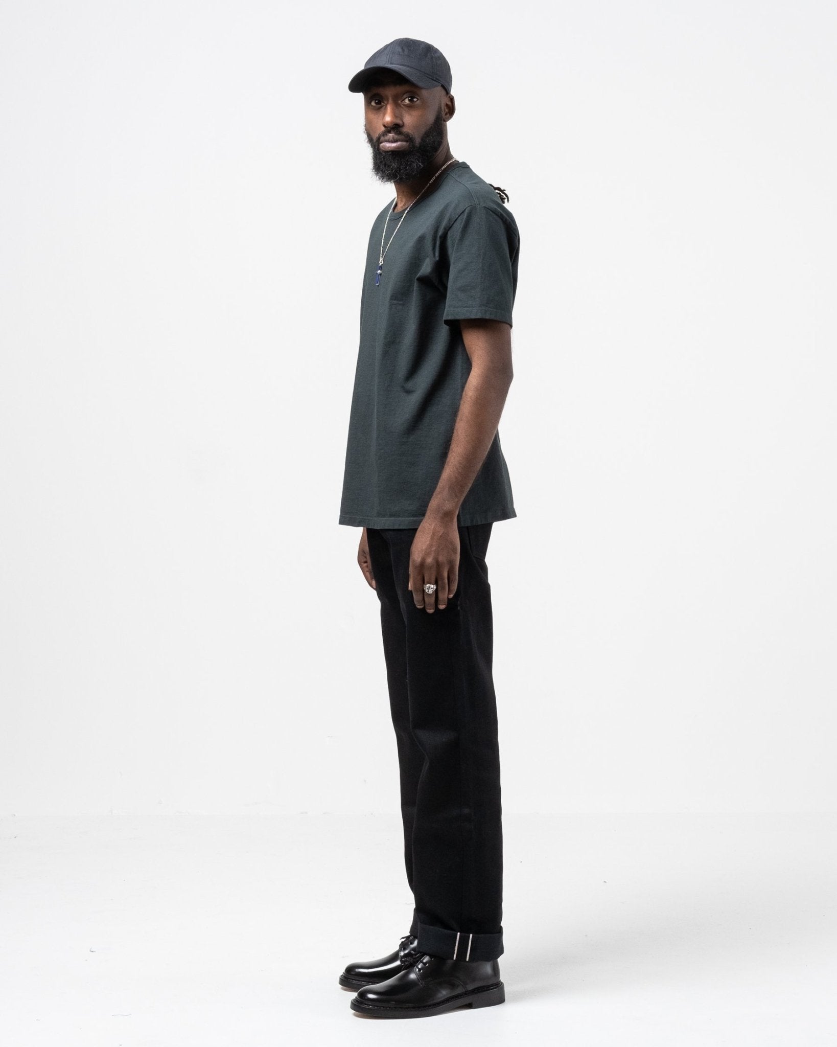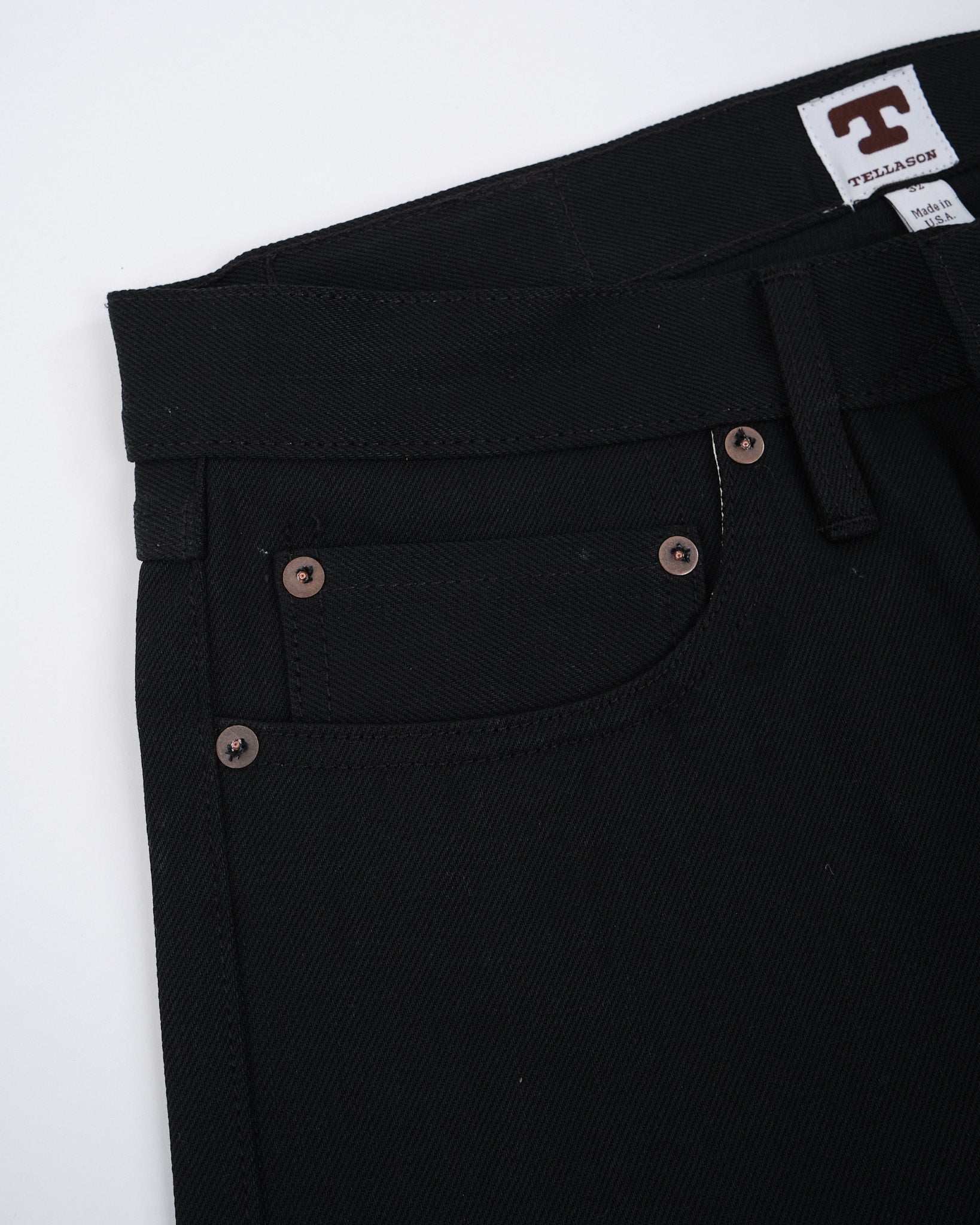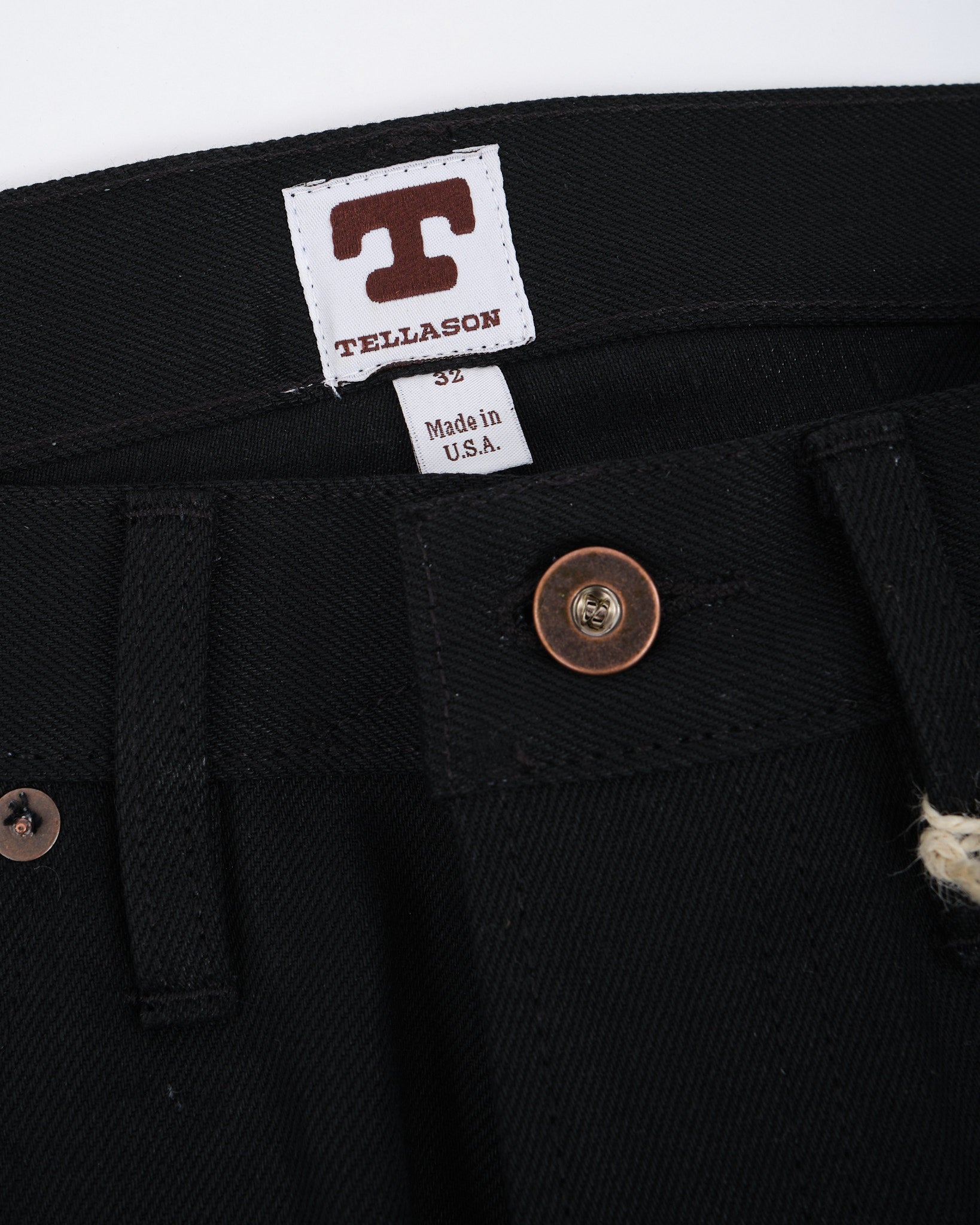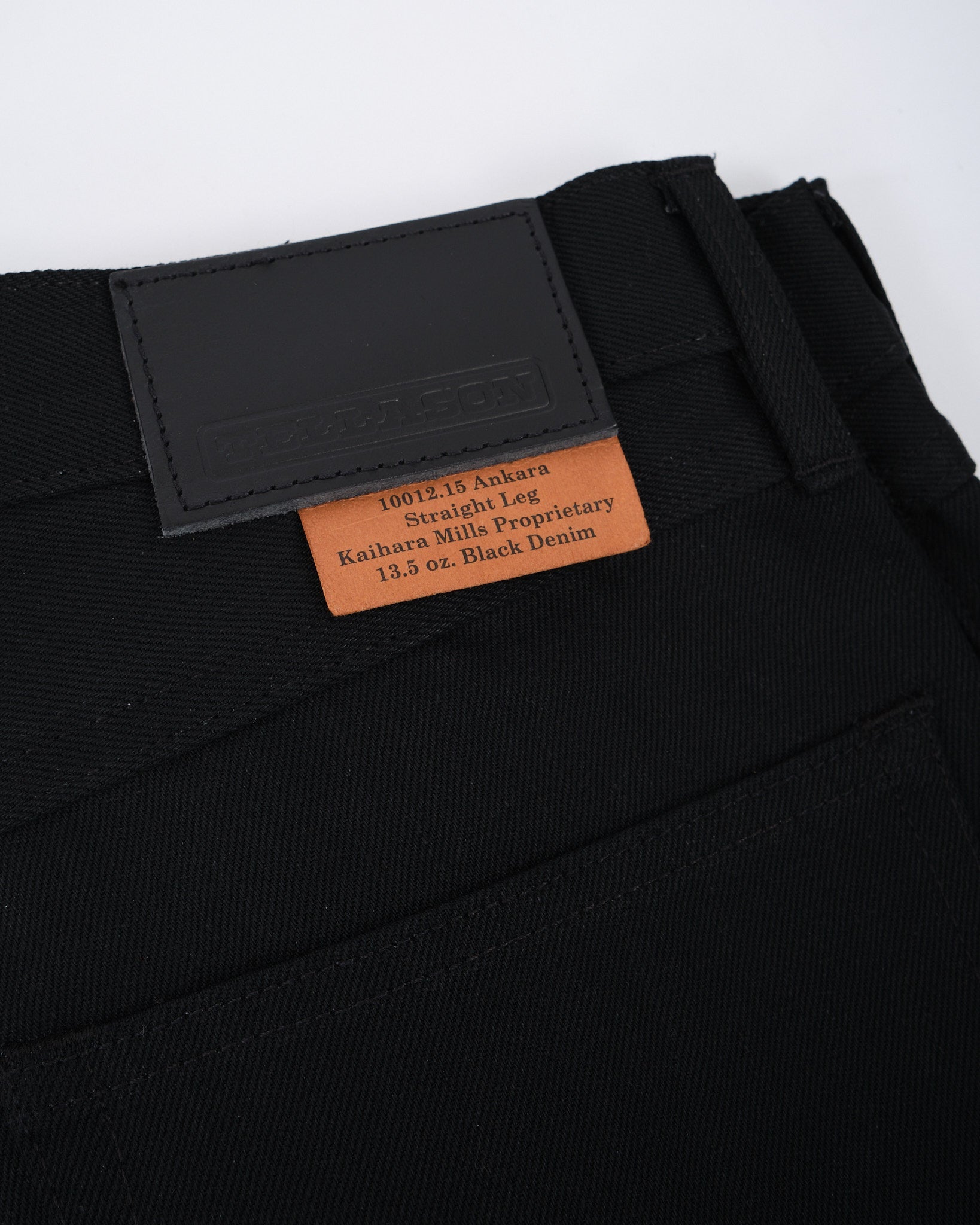 Upptäck höjden av elegans med Tellasons Ankara jeans, stil kod 10012.15, i svart japansk selvedge. Dessa jeans omdefinierar klassisk stil, tillverkade från 13,5 oz. japansk röd linje sanforiserad egendomselvedge denim, vilket erbjuder en sömlös blandning av hållbarhet och komfort. Designade med en rakt ben passform som smickrar alla kroppstyper, är Ankara jeansen ett bevis på tidlös design och noggrant hantverk. Nyckelfunktioner inkluderar en robust knappgylf, extra tunga fickpåsar och förstärkta baksidfickor för oöverträffad hållbarhet. Tillägget av ett Tanner Goods lädermärke från Portland, OR, lägger till en touch av hantverksmässig excellens. Med gradvisa innersömmar från 34,25" till 35,75", lovar dessa jeans en perfekt passform. Stolt tillverkade i San Francisco, Kalifornien, USA, är Ankara svarta selvedge-jeansen en symbol för amerikanskt denimhantverksarv, designade för de som kräver kvalitet och stil.