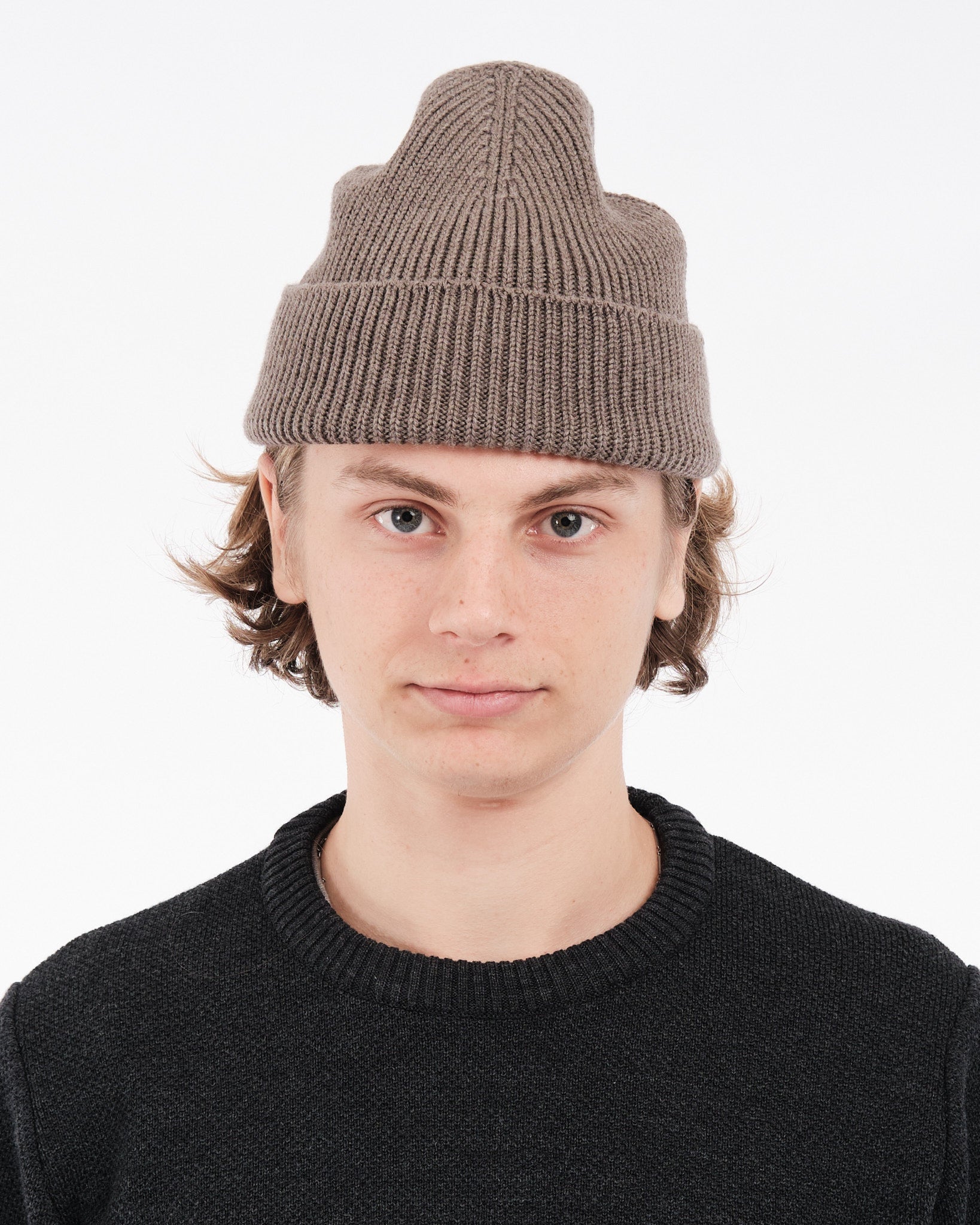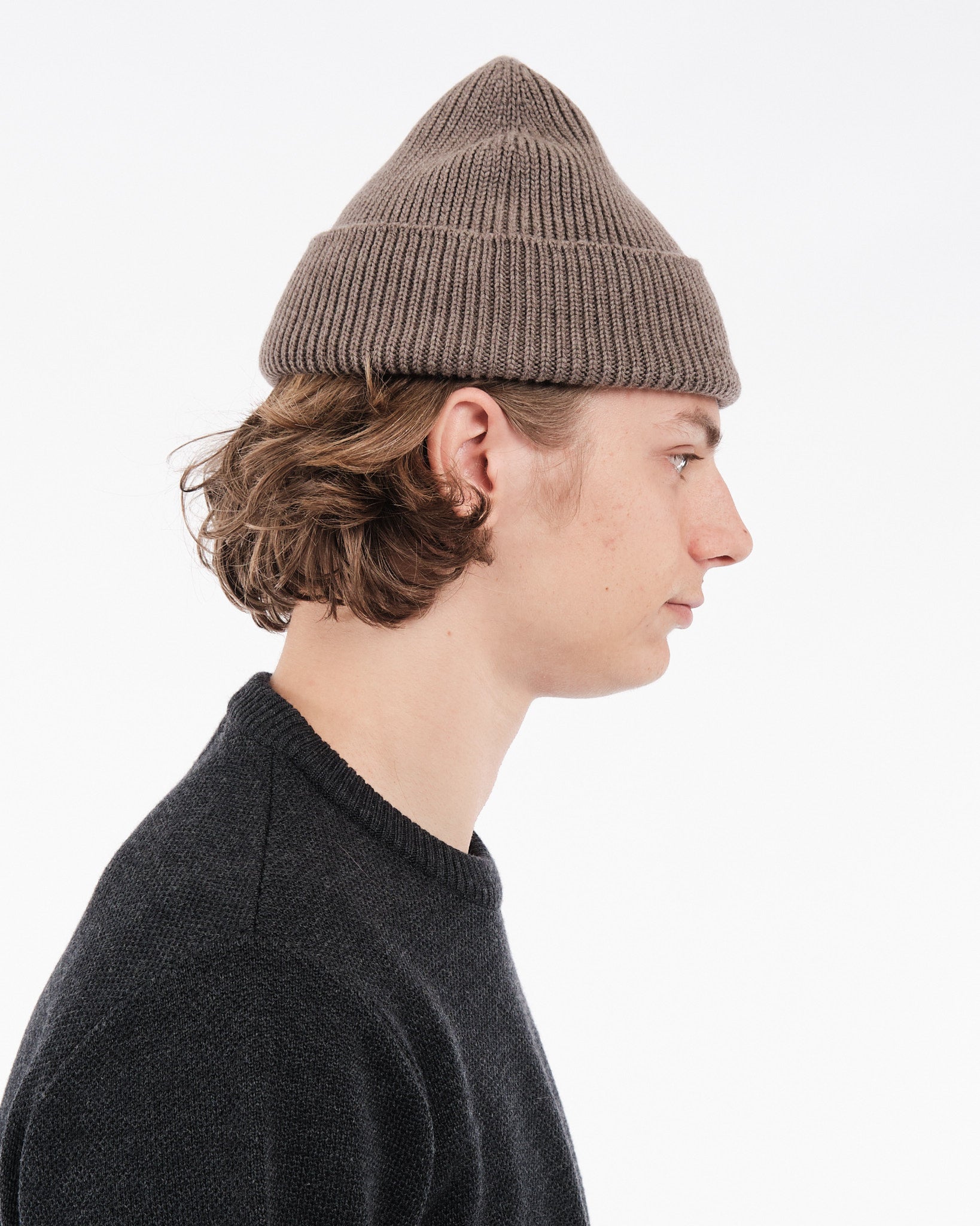 Stilnummer: Ara Bonnet Taupe Chiné, som visar Nitto Knitwears hantverkskunnande.