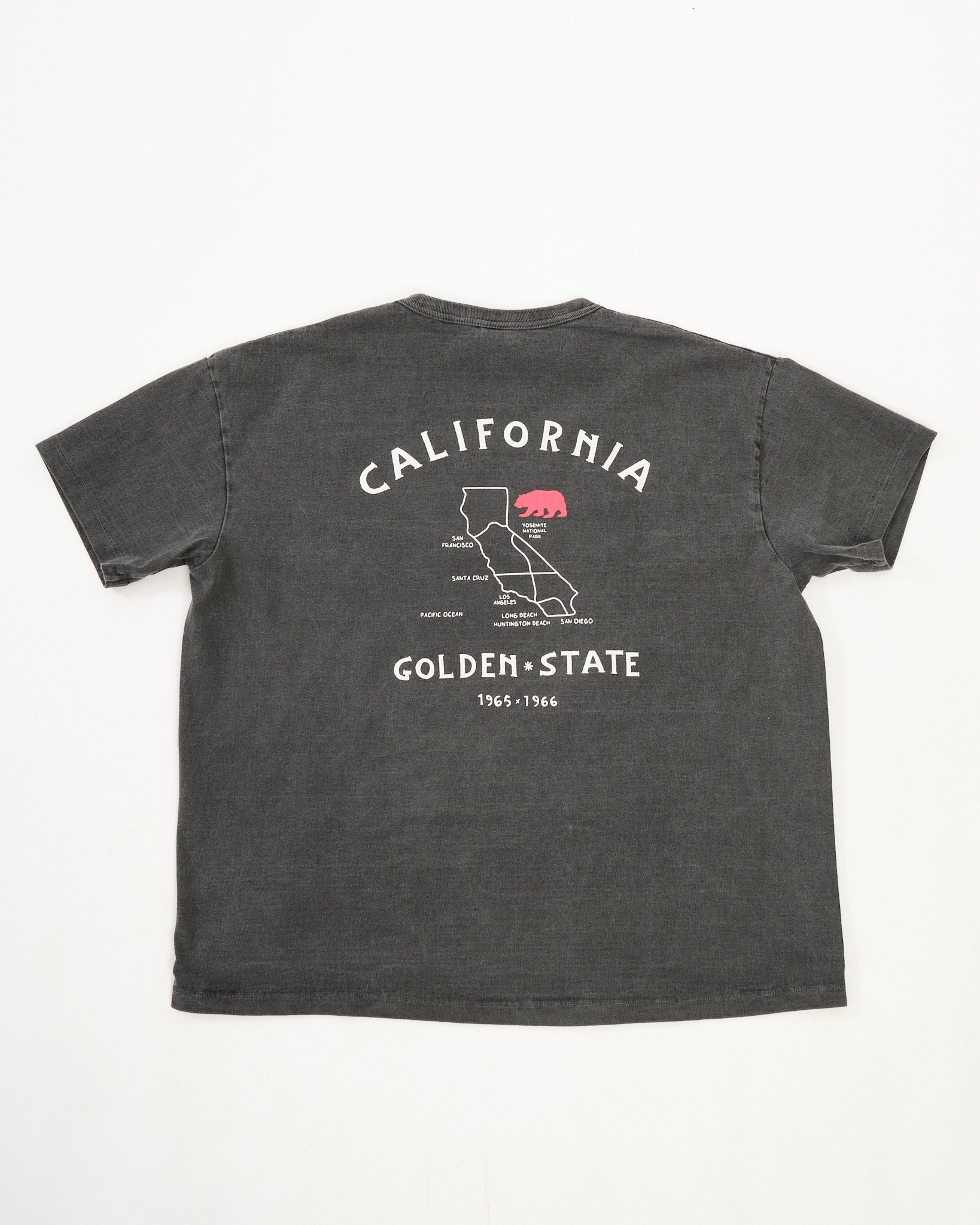 For Spring/Summer 2026, the tee is finished with a pigment dye process, giving the black fabric a softly faded, worn-in tone that adds depth without feeling overdone. The “California” graphic draws inspiration from the iconic Vietnam Jacket—known in Japan as the “Viet-Jan”—blending cultural references into a design that feels both nostalgic and fresh.