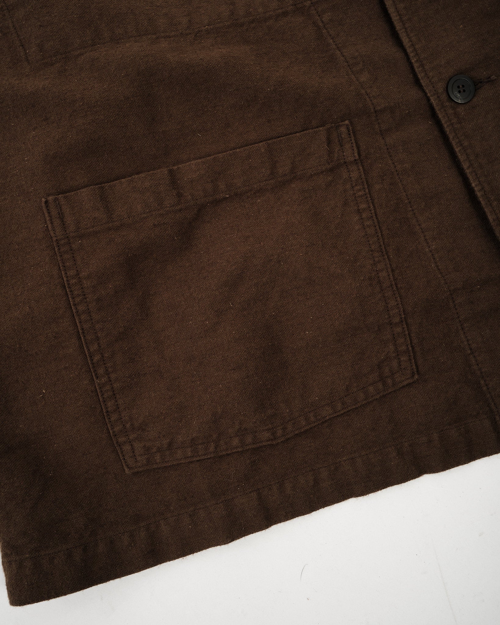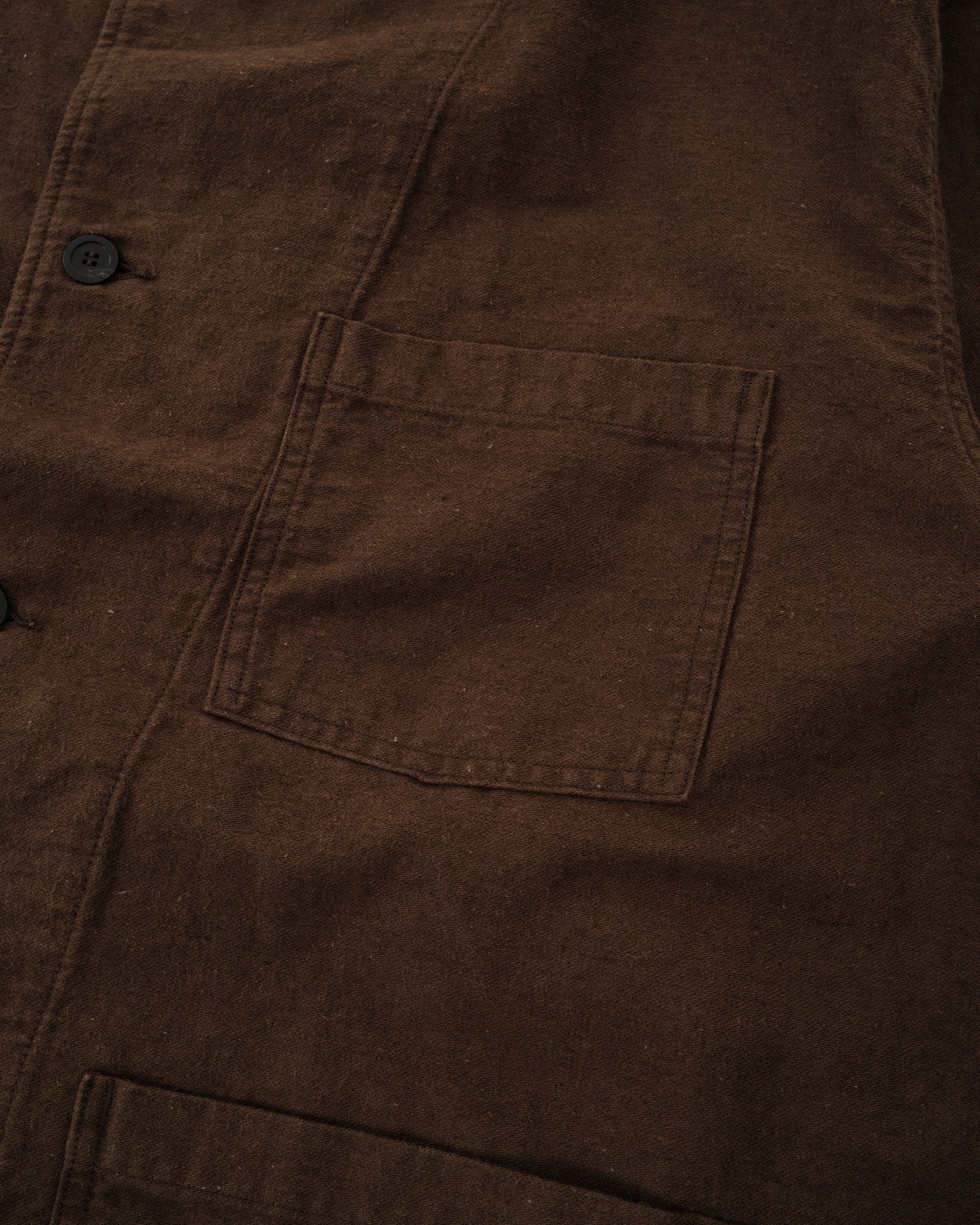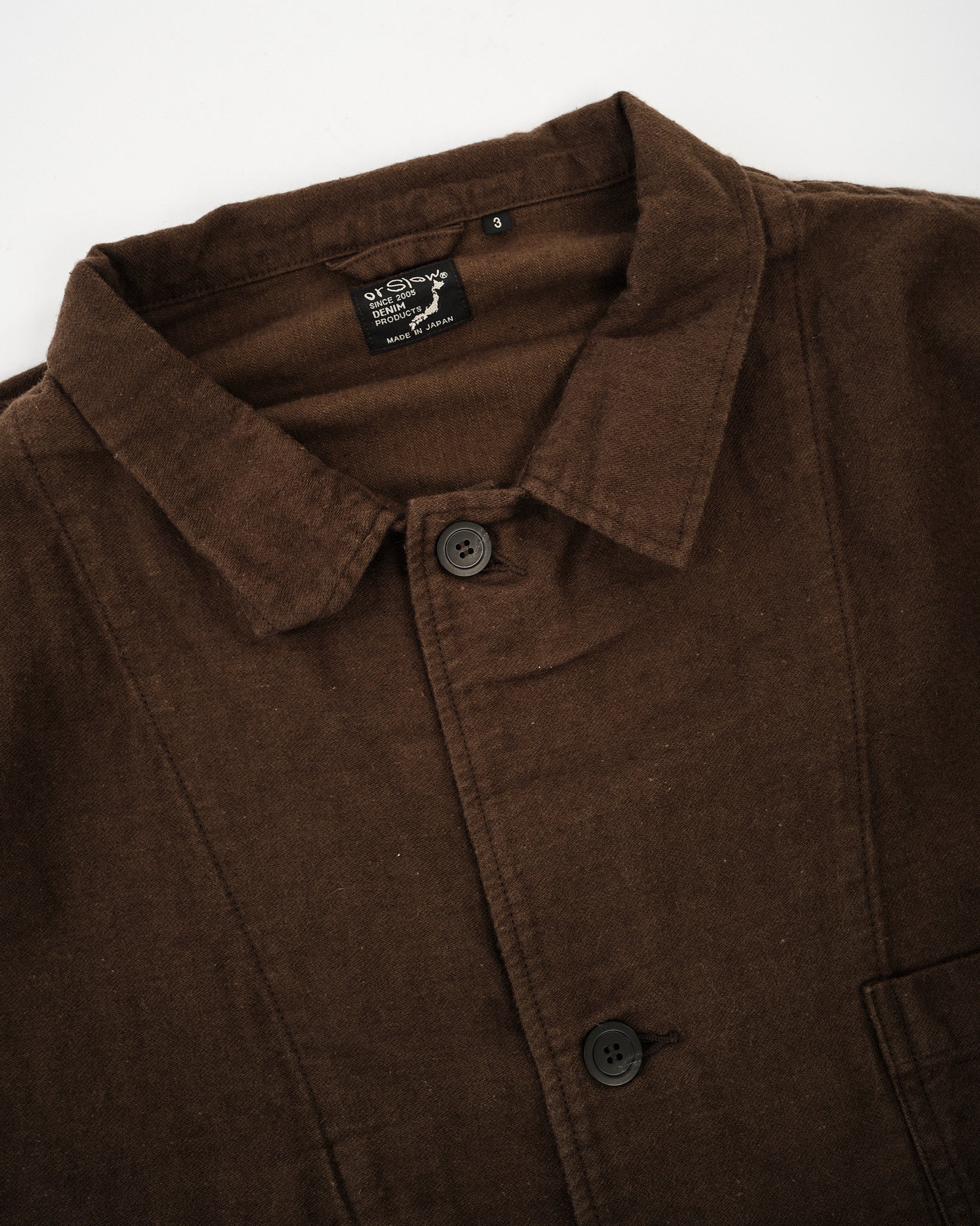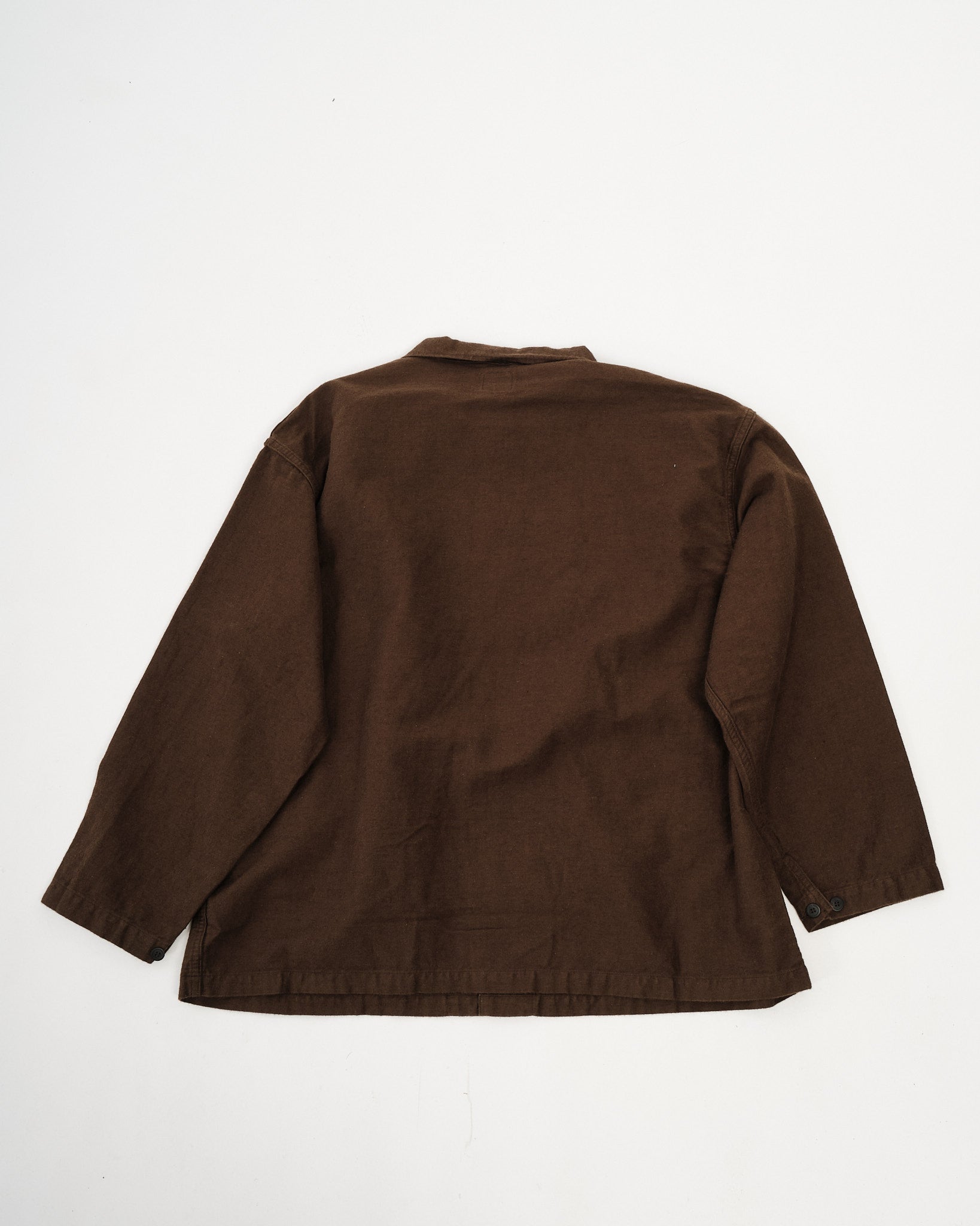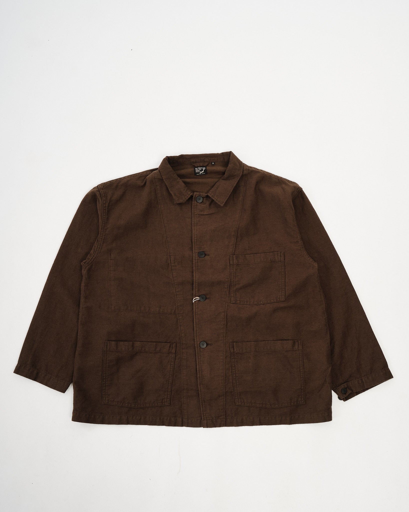 The orSlow Cotton Linen Moleskin Relax Fit Simple Work Jacket in Coffee Brown delivers rugged utility with refined comfort. Made from a durable cotton-linen moleskin blend, it offers a soft brushed texture with a breathable feel. The relaxed fit makes it easy to wear over shirts or knits, while the deep brown tone adds warmth and depth to your wardrobe. With its classic three-pocket layout and understated construction, it’s a timeless everyday jacket made in Japan.