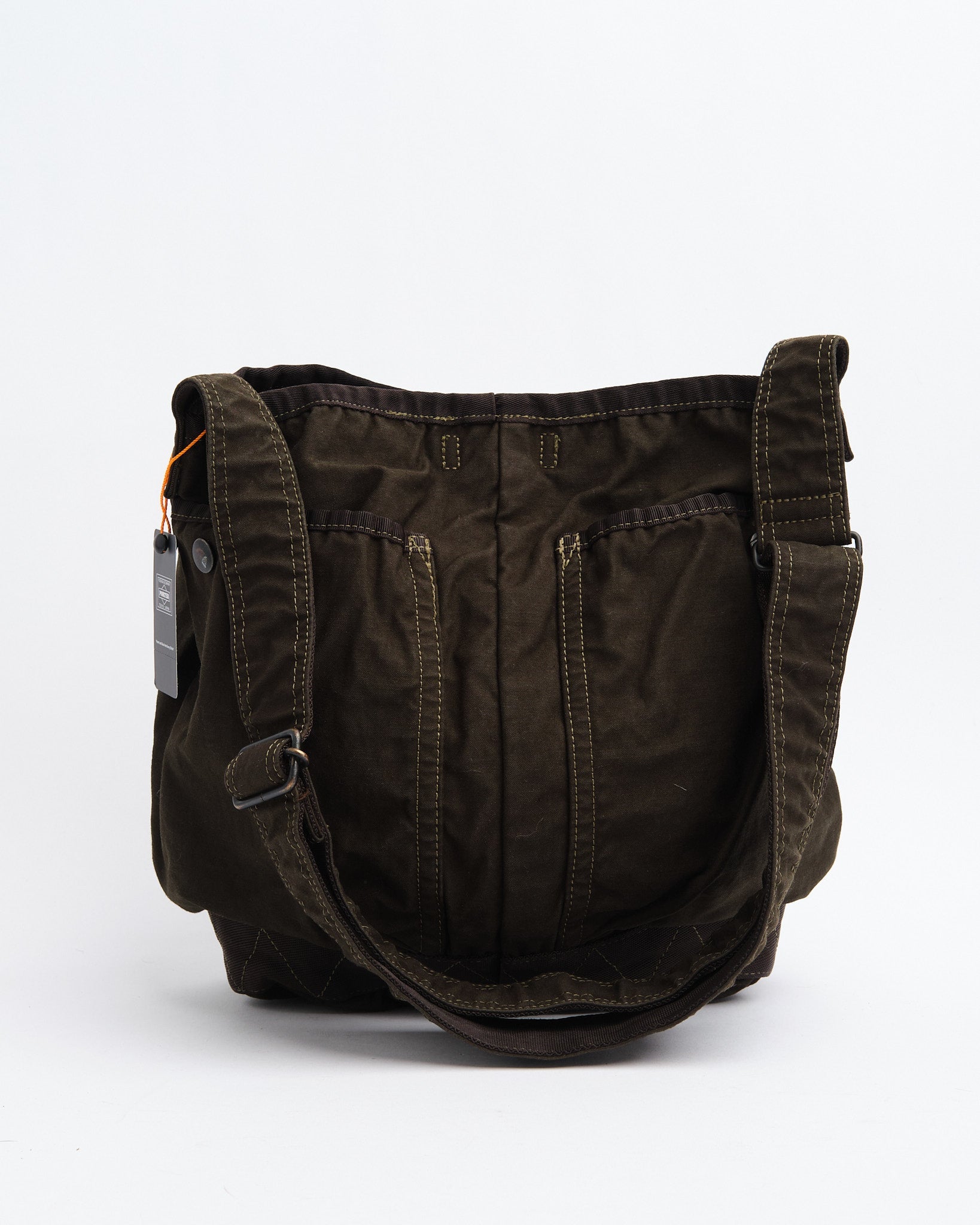 Den PORTER BY YOSHIDA Crag axelväska (S) är en del av PORTER CRAG-serien, känd för sin distinkta produktfärgningsprocess som skapar djupa, rika färger och unika texturer. Tillverkad av back satin tyg, en högdensitetsblandning av nylon och bomull, är väskan både hållbar och lätt. Den två-bads färgningstekniken förbättrar färgdjupet och skapar subtila variationer, vilket säkerställer att varje stycke är unikt.
