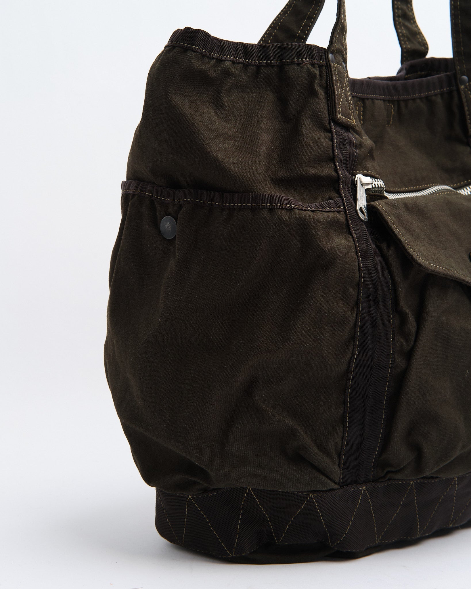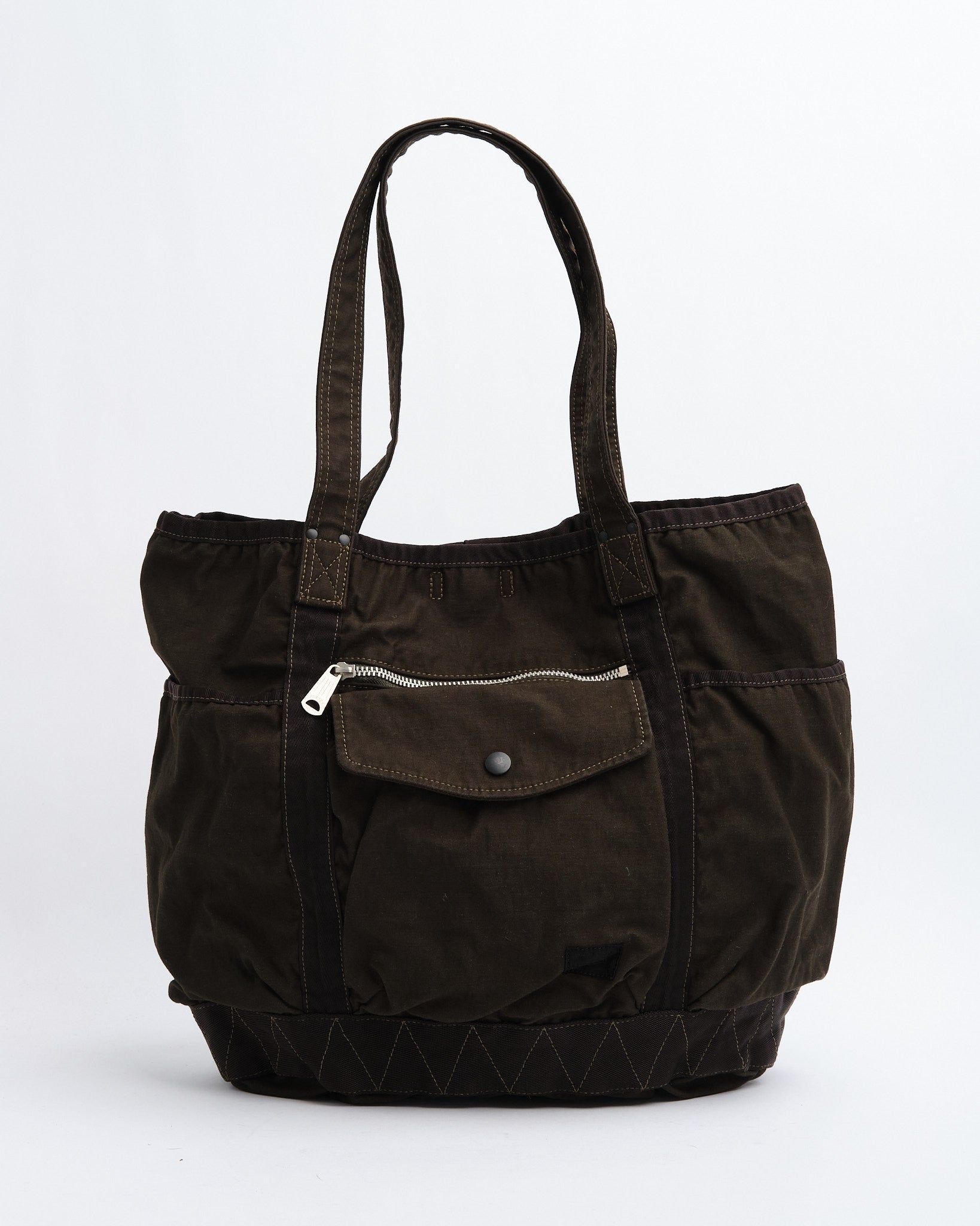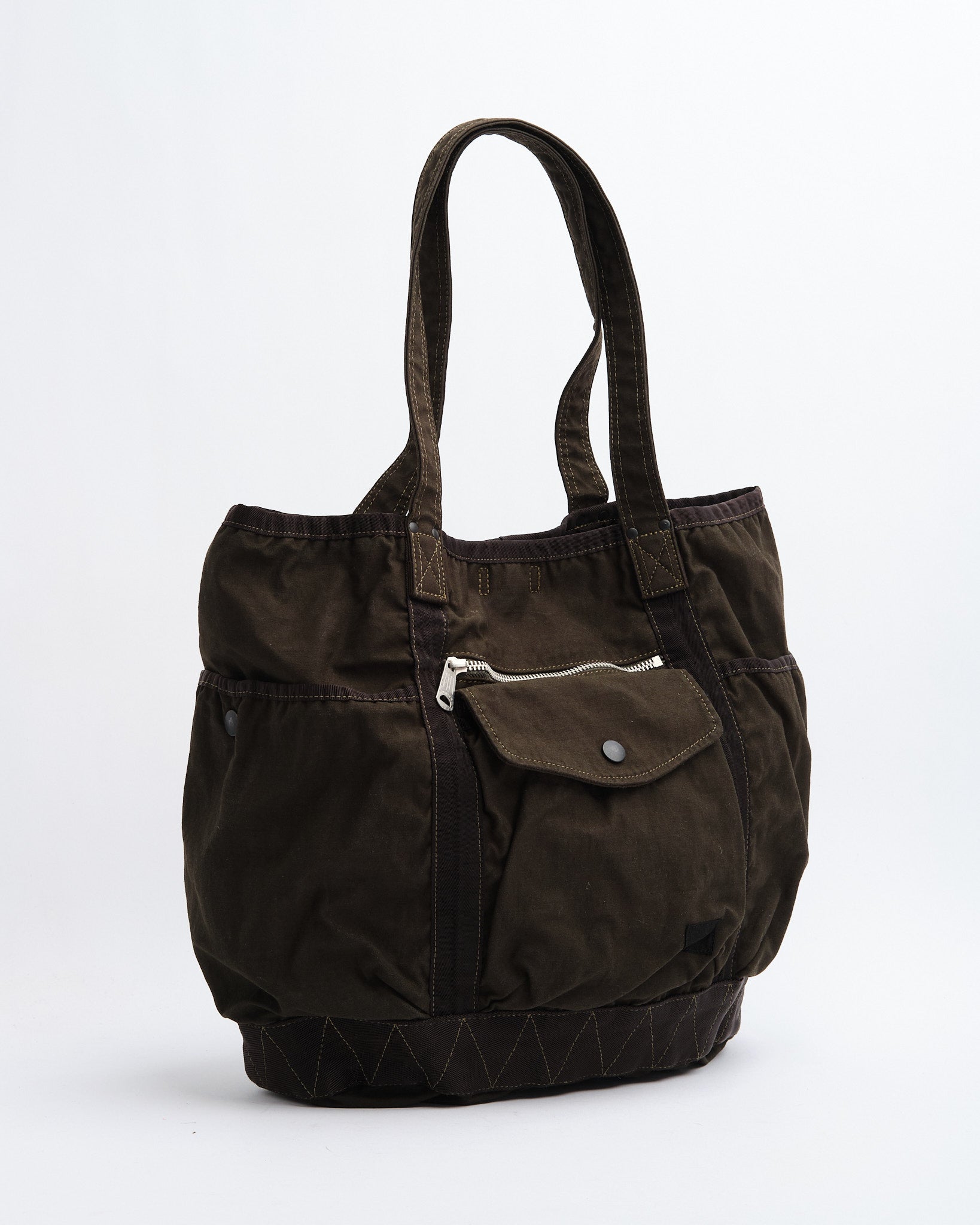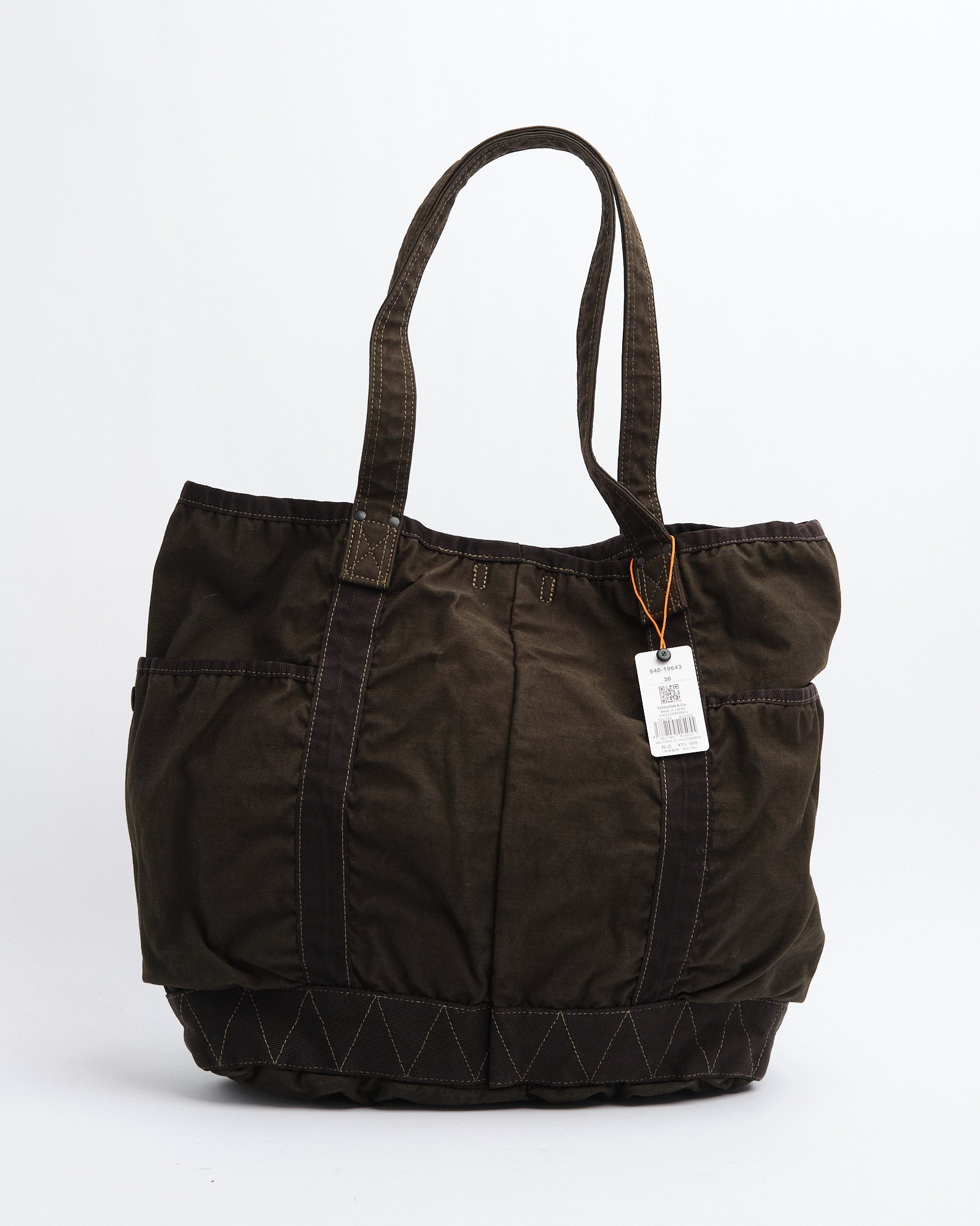 Den PORTER BY YOSHIDA Crag Tote Bag (540-19643-30) är en del av PORTER CRAG-serien, känd för sin unika produktfärgningsprocess som skapar djupa, rika färger och texturer. Tillverkad av backsatintyg, en högdensitetsblandning av nylon och bomull, är väskan både hållbar och lätt. Den tvåbadiga färgningstekniken säkerställer flerdimensionella nyanser och naturliga variationer, vilket gör varje väska unik.