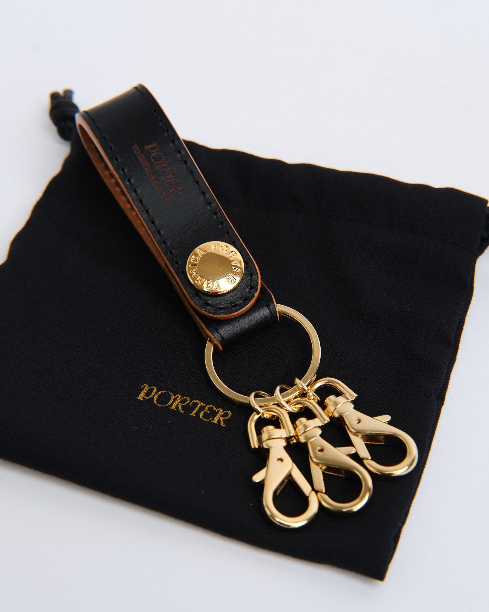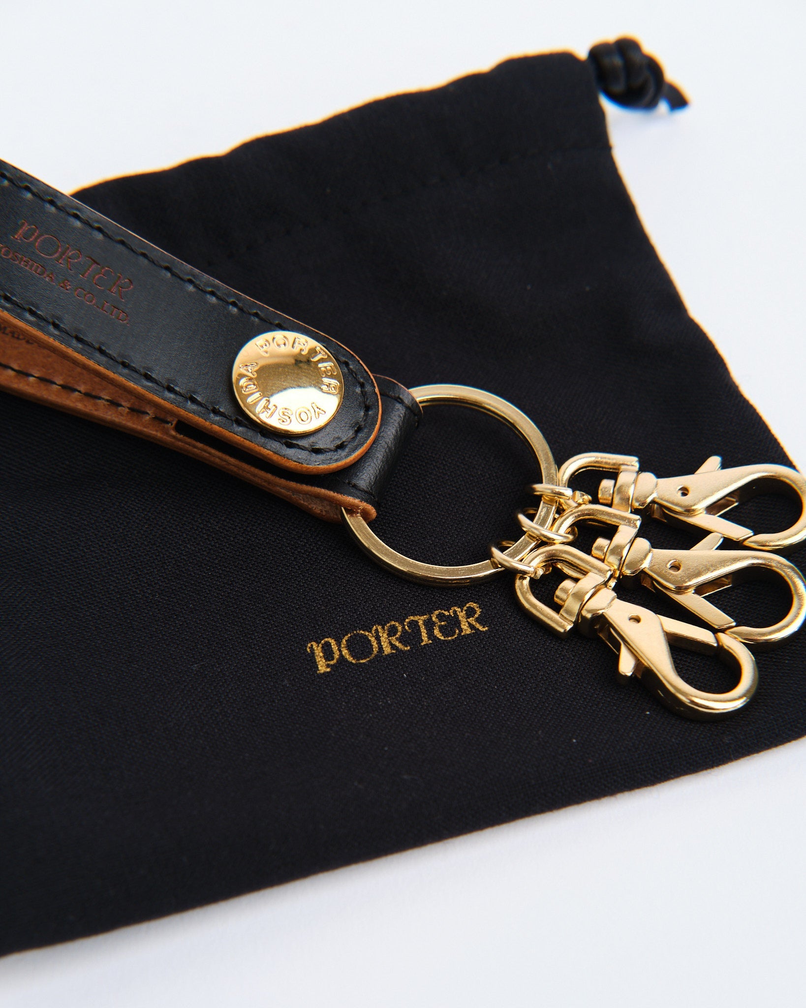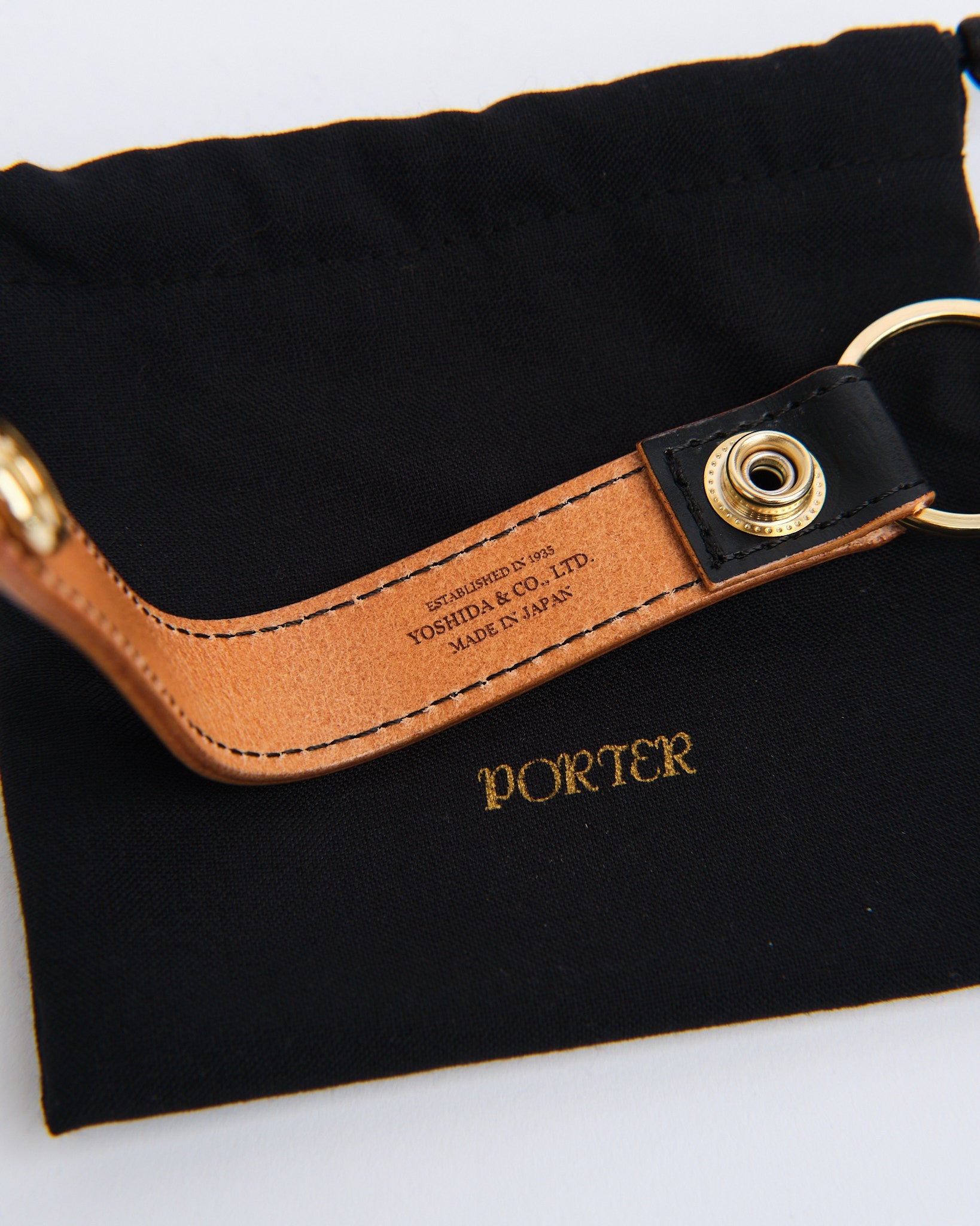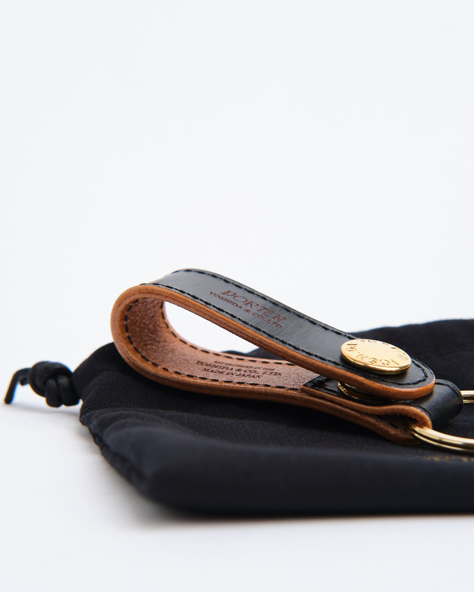 Presenterar FILM NYCKELHÅLLAREN i svart från den välrenommerade Porter by Yoshida. Tillverkad i Japan av utsökt kohudsläder från Toscana, Italien. Denna nyckelhållare, modell 187-01355, har en noggrann lager-på-lager applicering av pigment, vilket skapar ett distinkt uttryck när den poleras med sandpapper. Med fortsatt användning förbättras lädrets mjuka och bekväma textur bara, vilket garanterar lång livslängd och en personlig prägel med varje dag som går. Designad för att bli mjukare och mer bekväm med varje användning. Kompakt och funktionell med mått på W20mm/H130mm, vilket gör den lätt att bära.