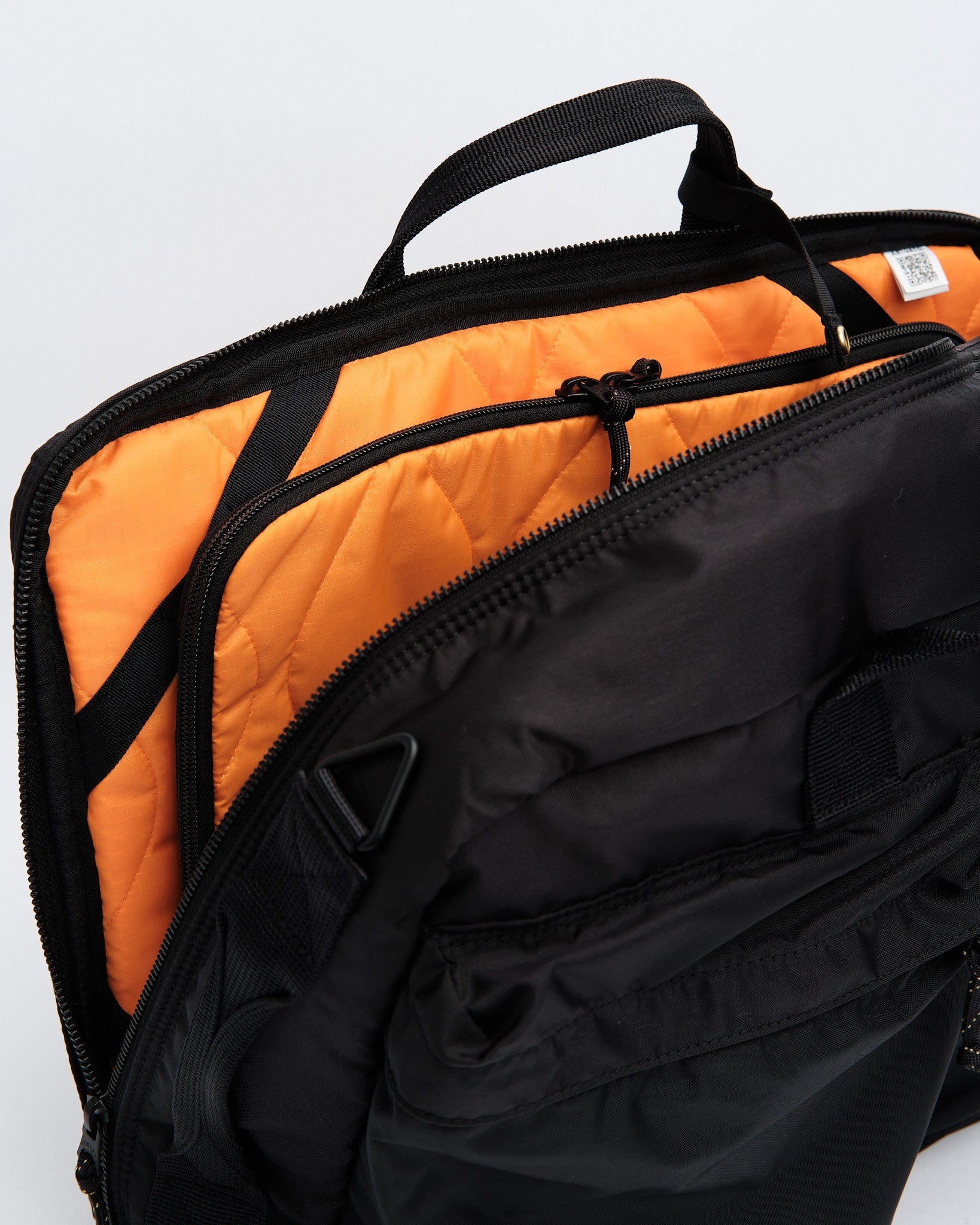 The PORTER BY YOSHIDA Force 3-Way Briefcase är en del av PORTER FORCE-serien, inspirerad av militär estetik och de oavsiktliga färgskillnaderna som finns i militära varor. En framträdande egenskap hos denna design är den subtila färgvariationen mellan tyget på främre fickan och väskans huvudkropp, vilket skapar intrycket av att använda olika tygpartier. Denna serie firar de oregelbundna färgscheman som finns i militär klädsel och tillbehör.
