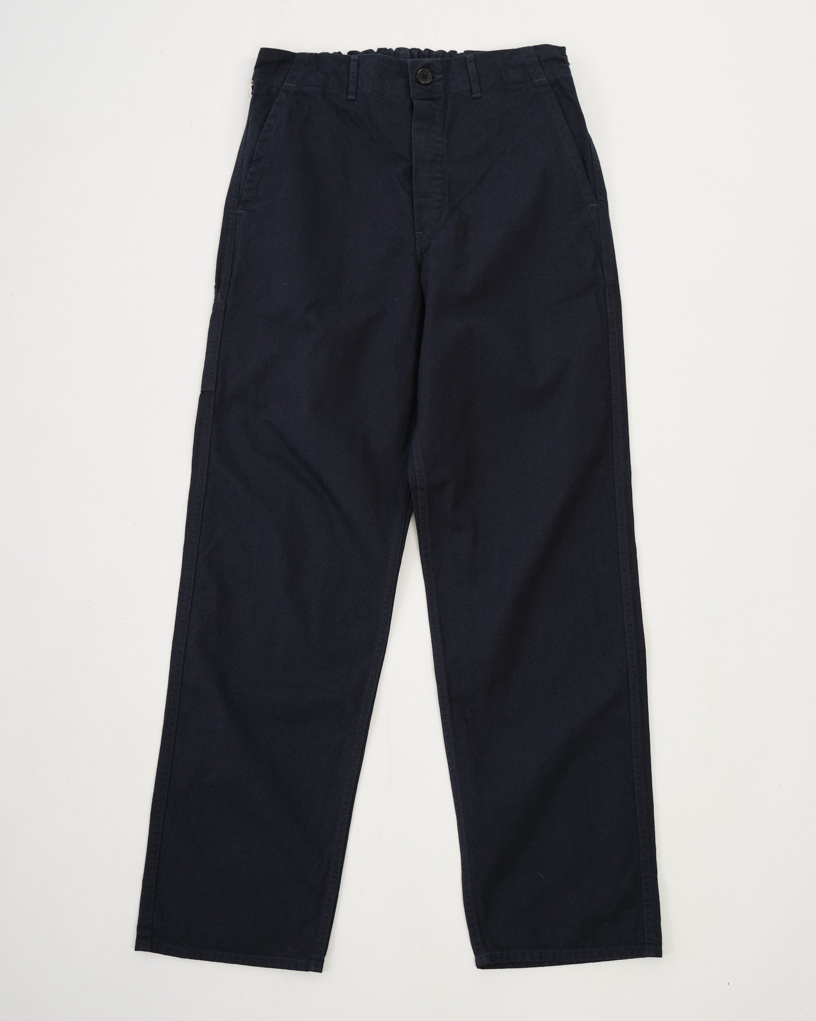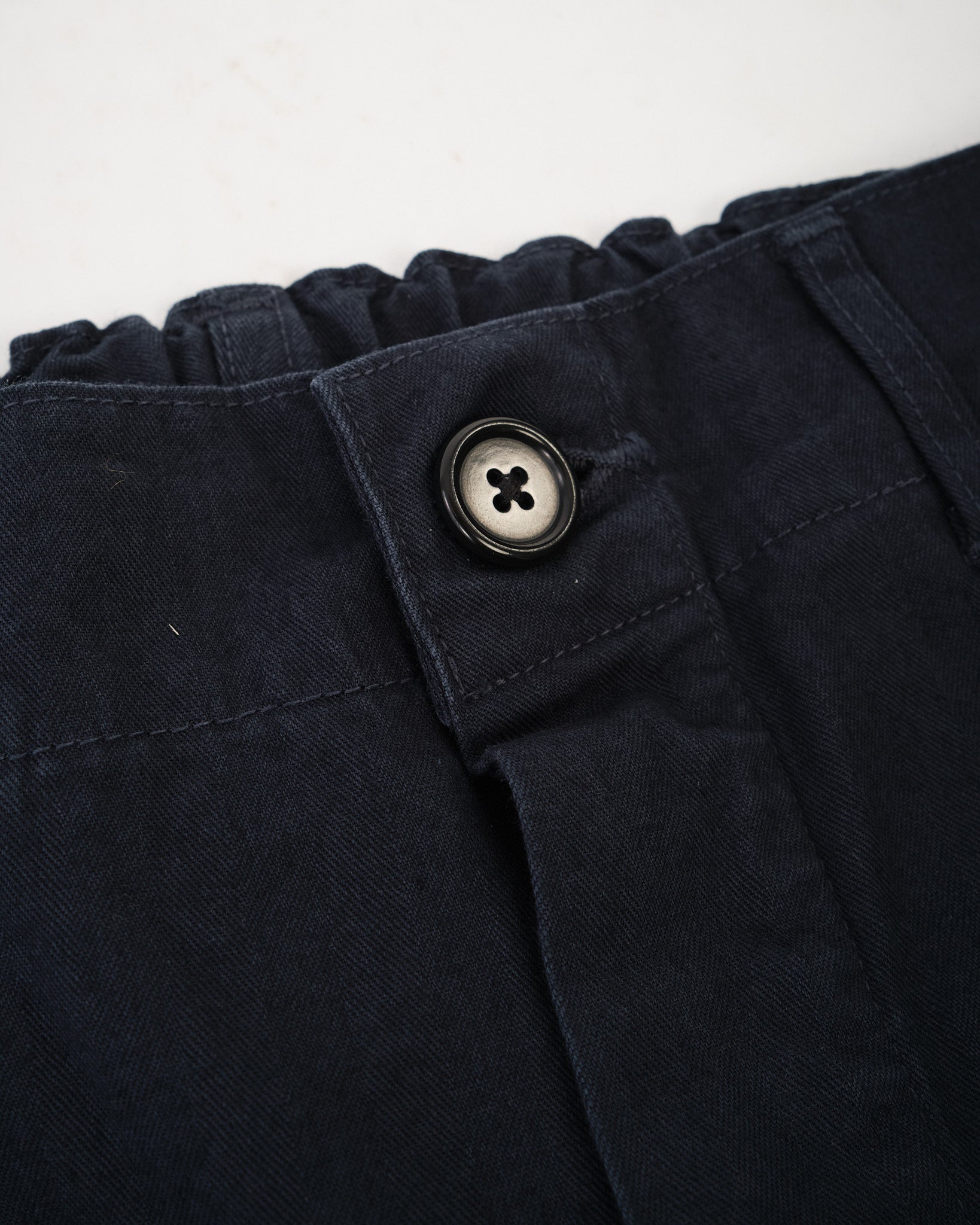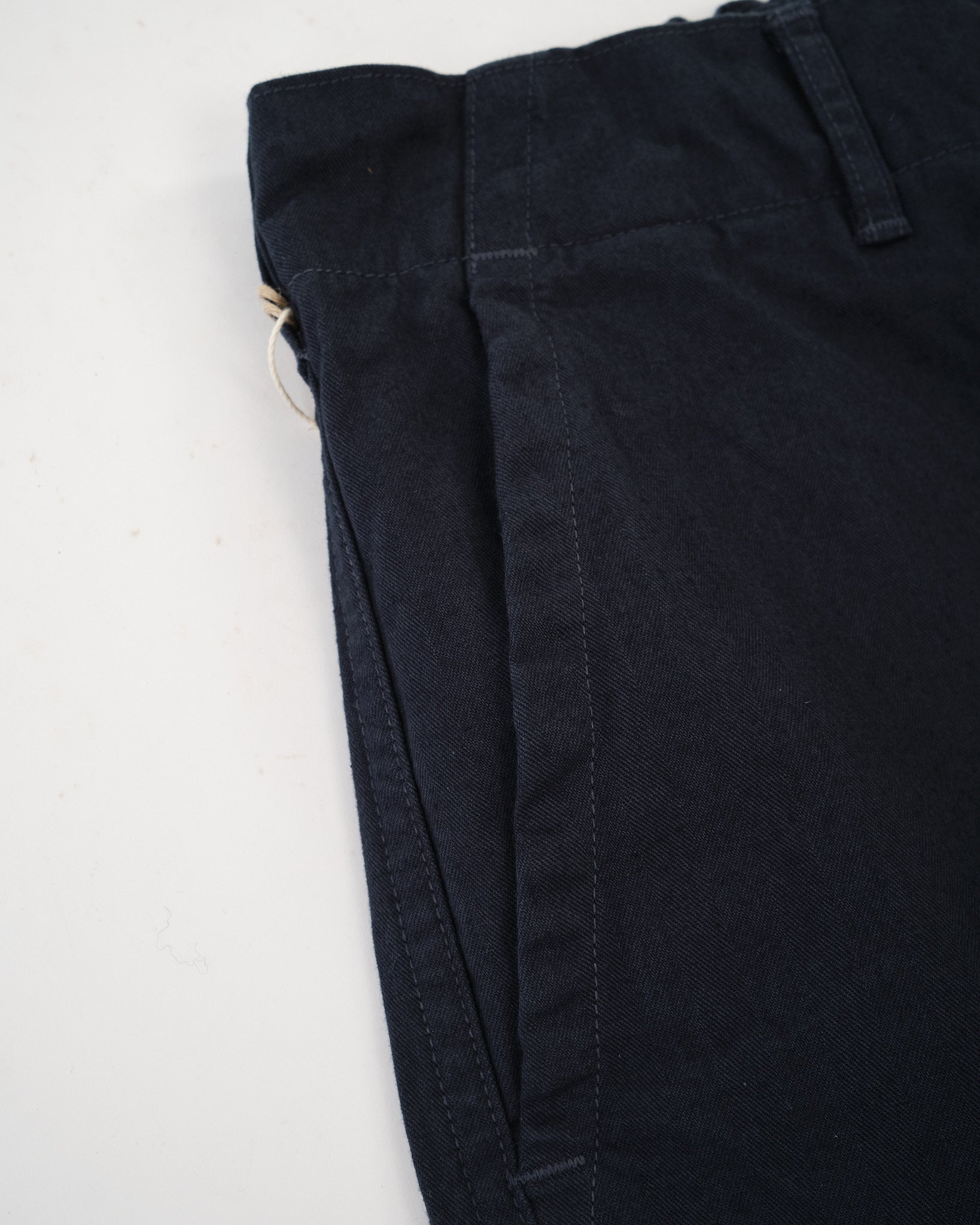Upptäck de Navy Orslow franska arbetsbyxorna noggrant tillverkade i Japan av mjuk bomullstwill i fiskbensmönster. Dessa byxor kombinerar komfort och praktiskhet med en midjeband, dragkedjegylf och raka ben för en avslappnad look. Den tidlösa designen i fiskbensmönster ger inte bara en antydan av sofistikation utan garanterar också hållbarhet vilket gör dessa byxor perfekta, för både arbete och fritidsaktiviteter.