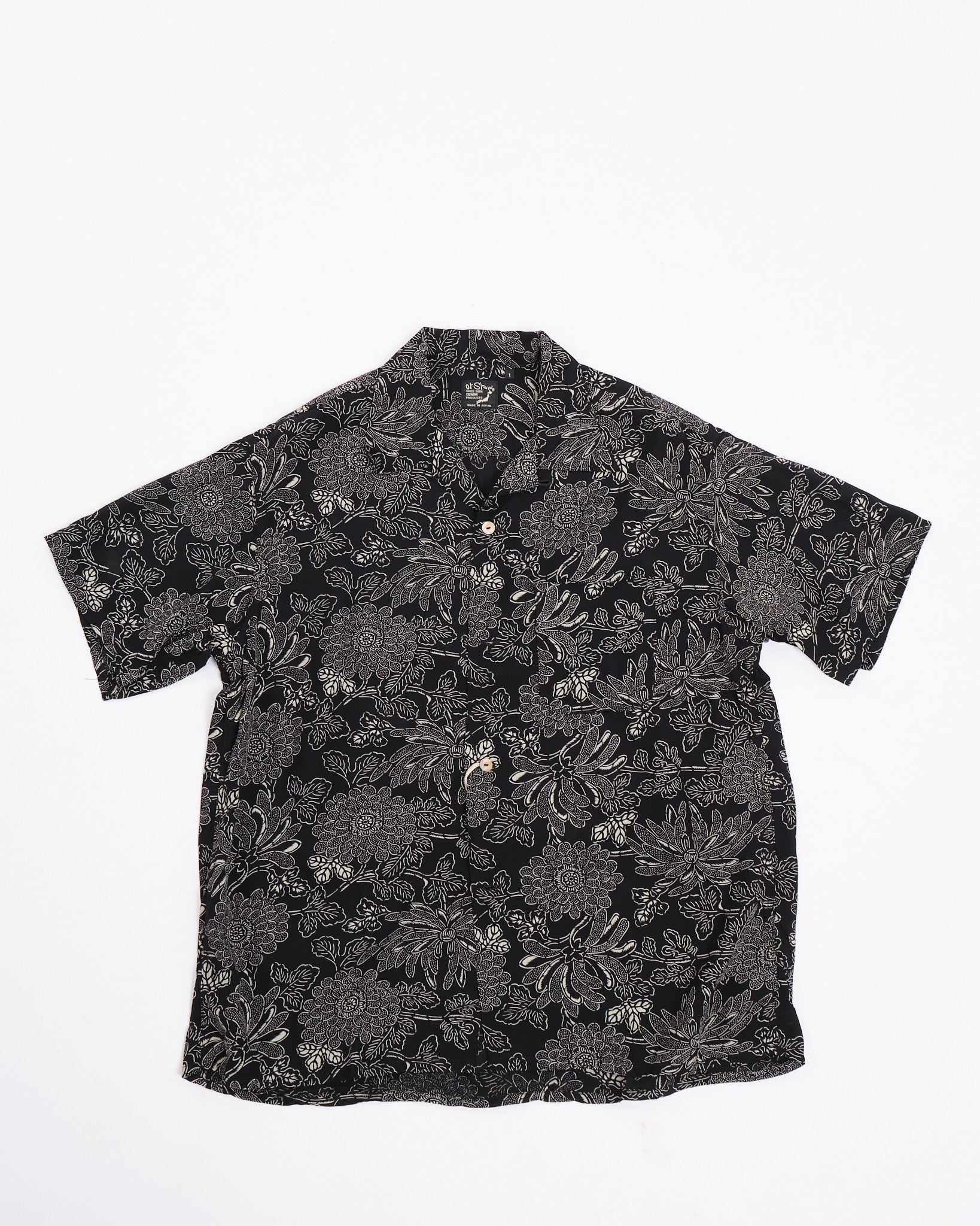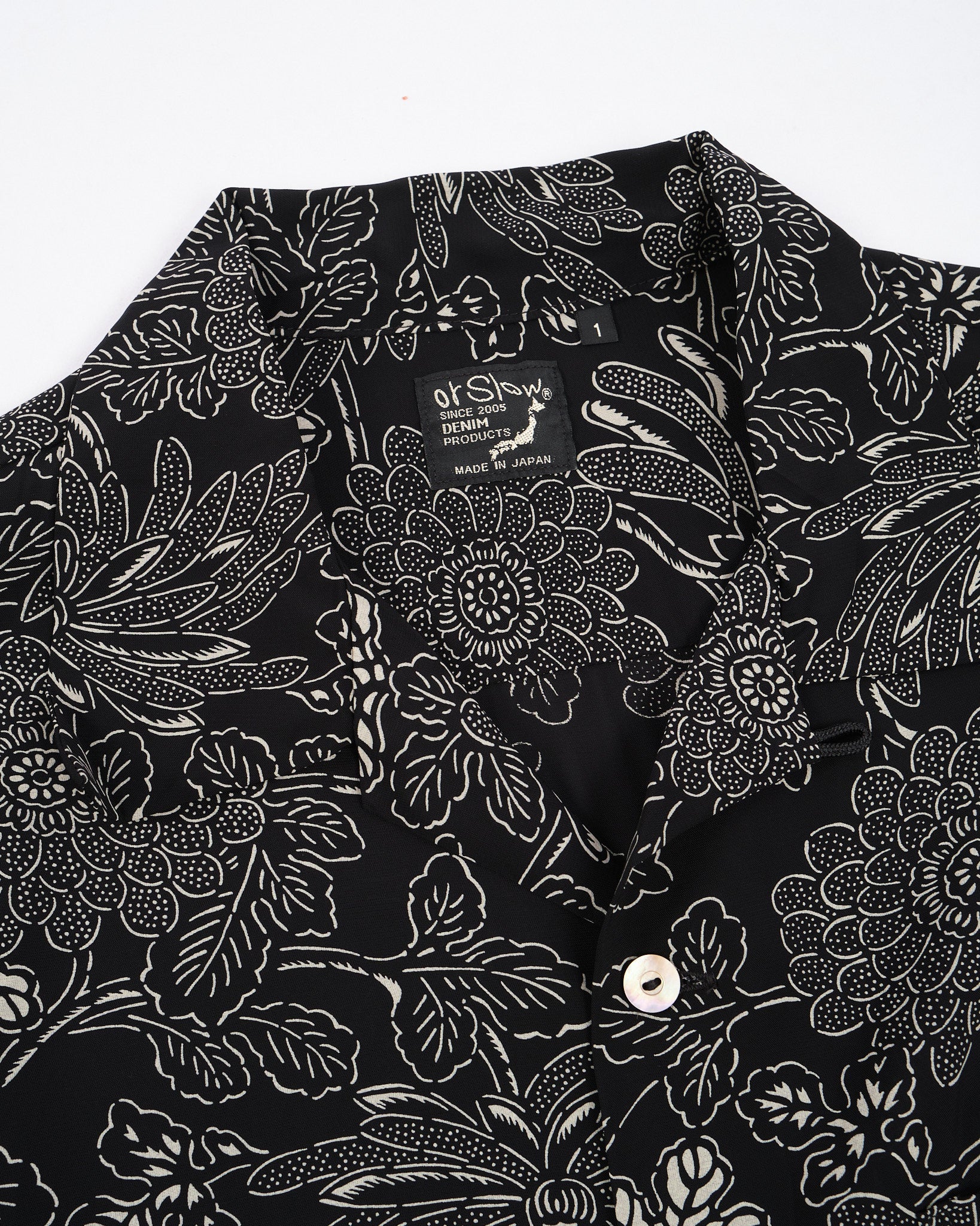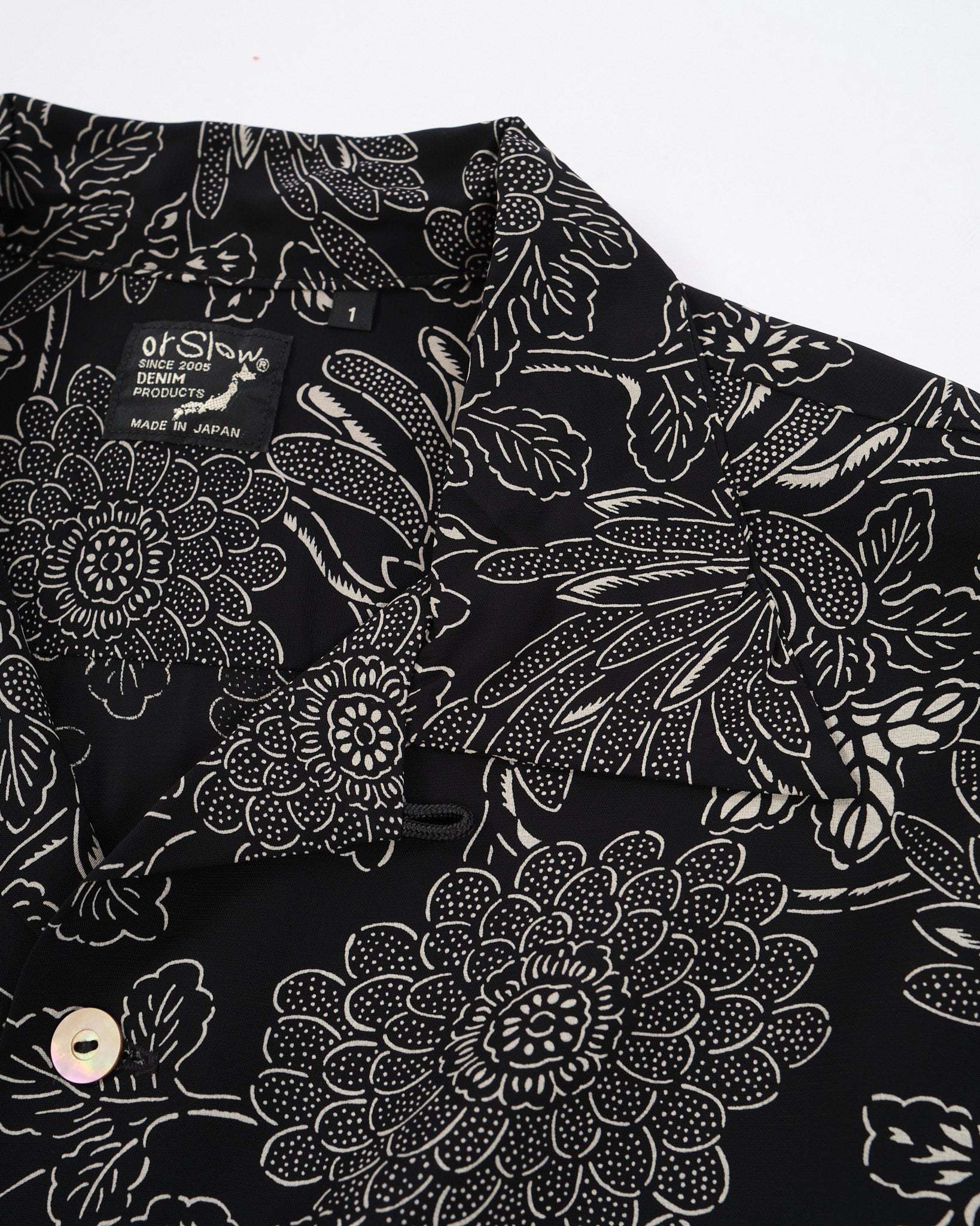 Gör varje dag kännas som en semester med orSlow Hawaiian Shirt i svart. Denna skjorta är inte bara lätt och luftig utan fångar också essensen av en traditionell hawaiiskjorta. Den är noggrant konstruerad av 100% rayon, vilket garanterar en mjuk och bekväm användning. Den har också ett blommigt mönster över hela, en avslappnad krage, knappstängning och en bröstficka. Denna hawaiiskjorta gör ett elegant uttalande, oavsett om den bärs ensam eller lager över en vit t-shirt.