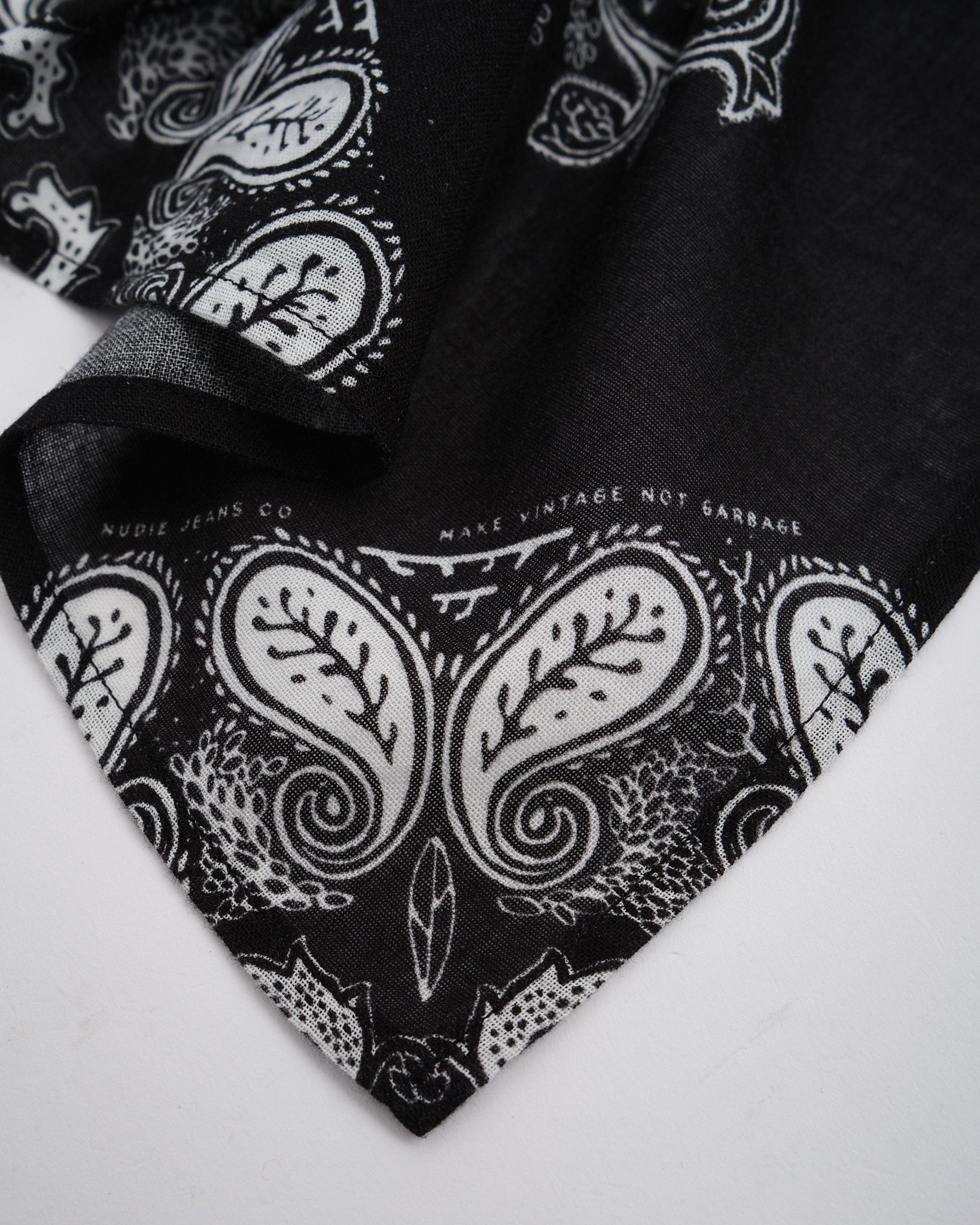 En bandana är en tidlös accessoar, och NUDIE JEANS CO. INGRID BANDANA PAISLEY BLACK är inget undantag. Tillverkad av ekologisk bomullspoplin, ger den en mjuk och lätt känsla samtidigt som den har en hållbar struktur. Tyget är fullt täckt med Nudies egna paisley-mönster, vilket skapar en distinkt och mångsidig look.