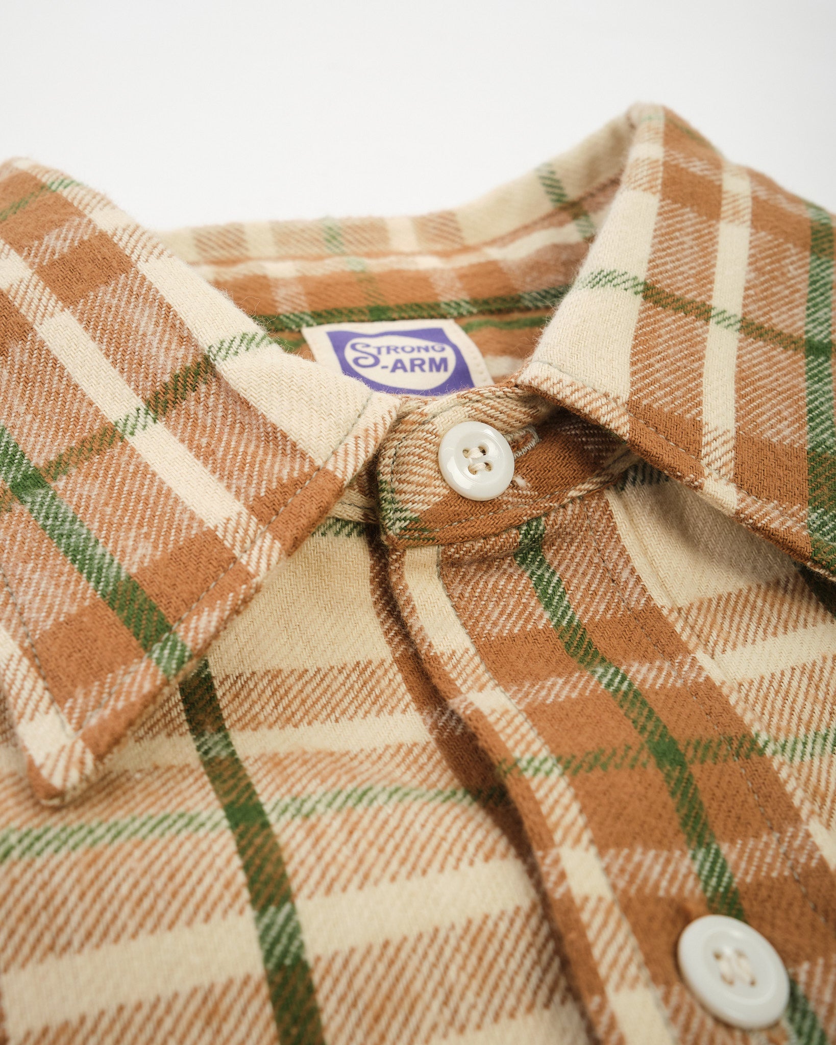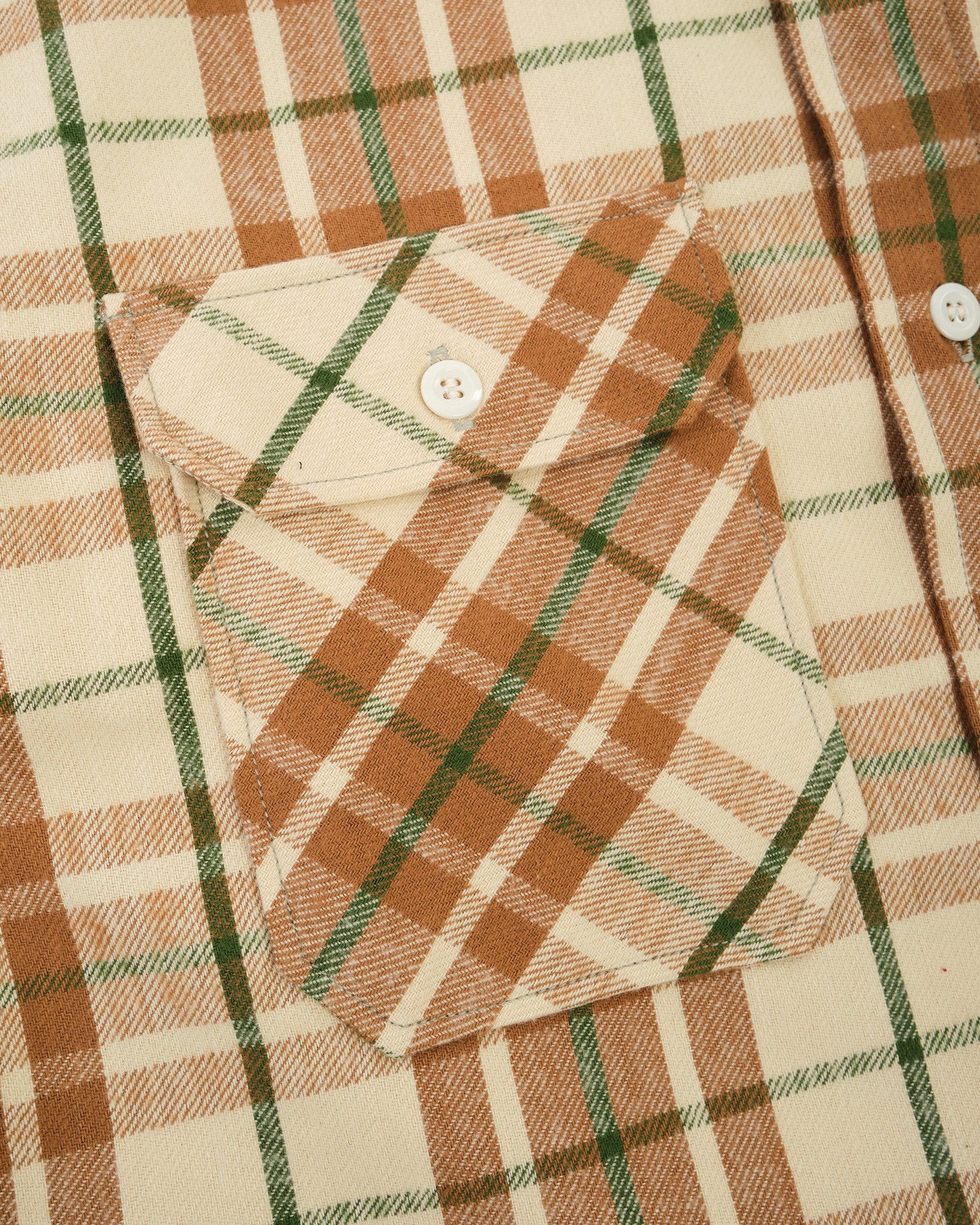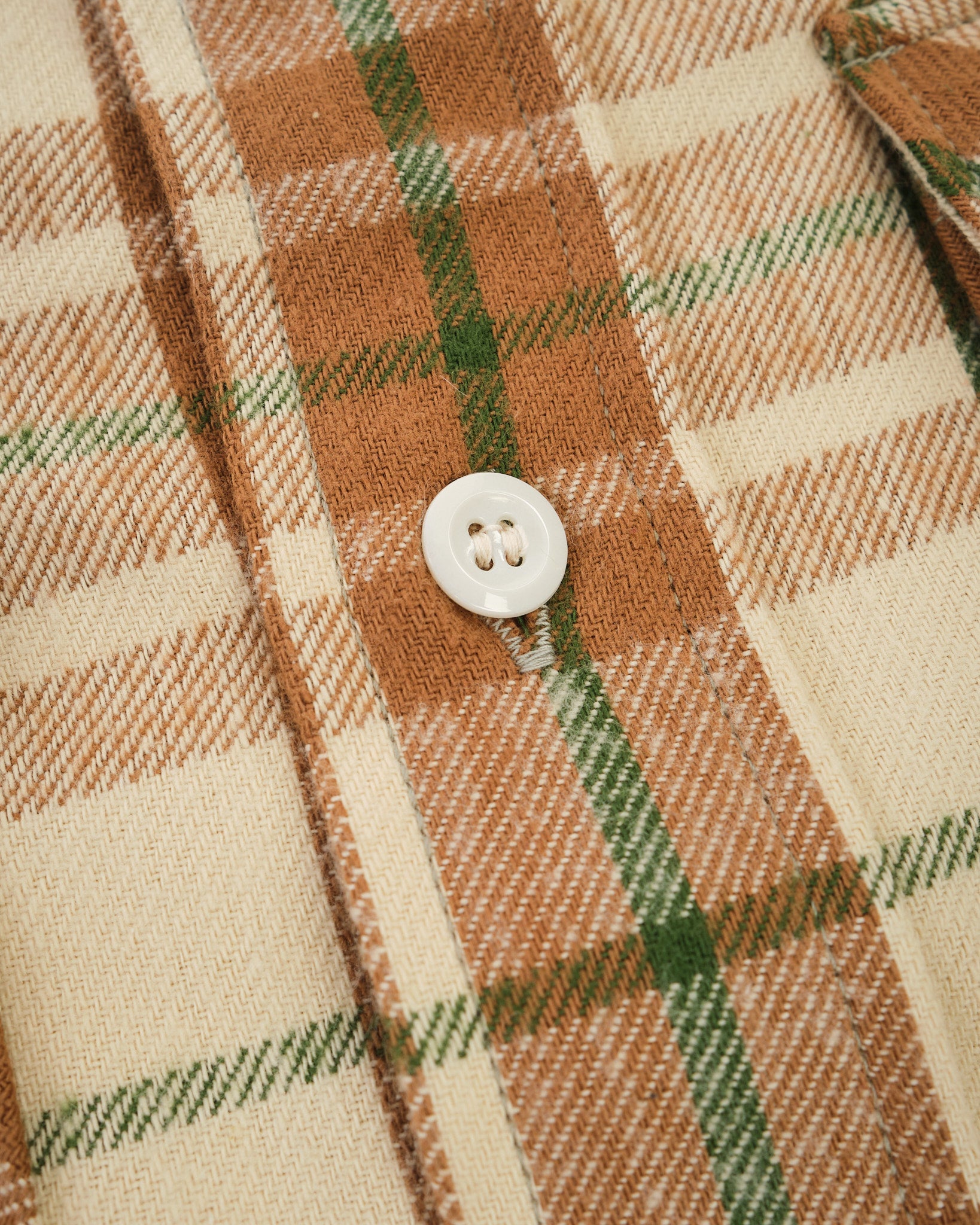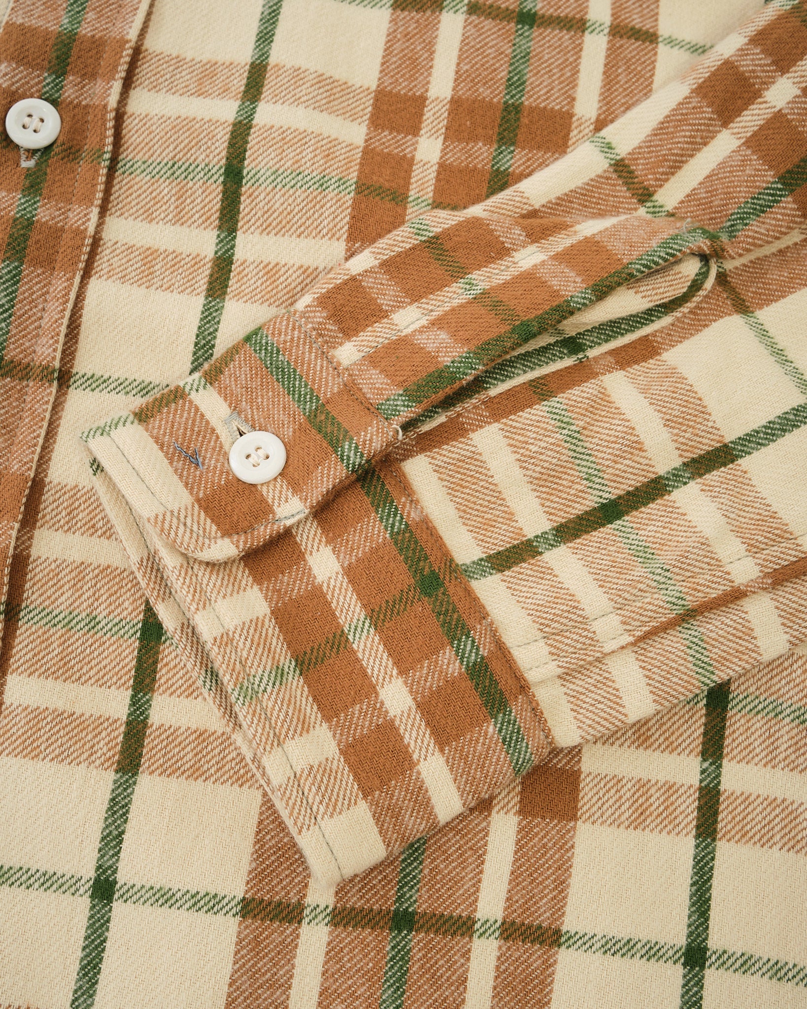 Modern Flannel från Warehouse & Co. är deras säsongsanpassade tolkning av den tidlösa rutiga skjortan. Den kommer denna säsong i fyra nya mönster. Tillverkad i en mättad beige rutig design med anmärkningsvärt djup, är tyget designat för att åldras värdigt och utveckla karaktär genom användning och tvätt. Sant till Warehouses rykte, är känslan i handen enastående: en mjuk men stadig flanell som kombinerar komfort och hållbarhet. Med sin balanserade passform och traditionella detaljer blandar detta plagg vardaglig användbarhet med vintage charm. Det är typen av skjorta som blir bättre för varje säsong.