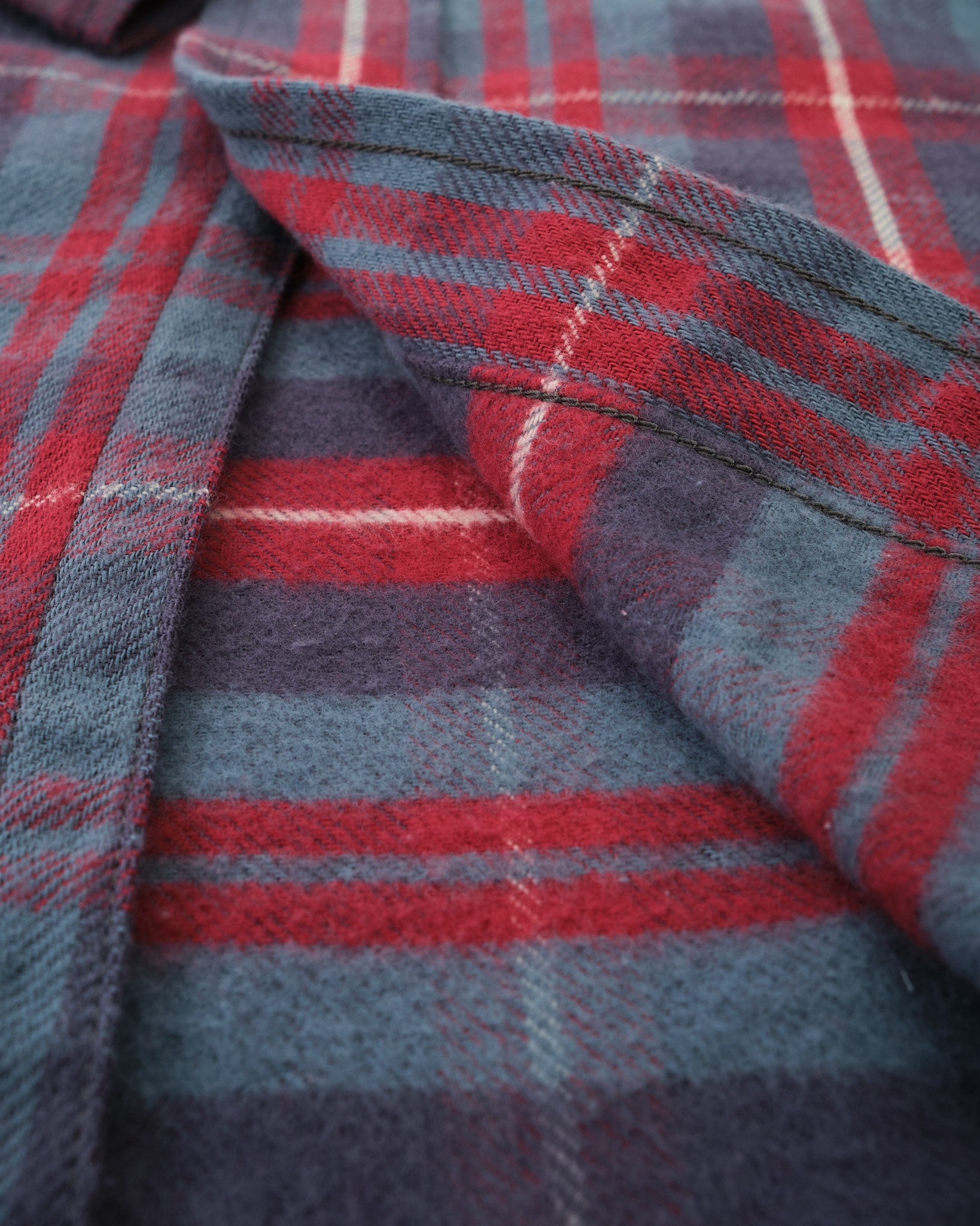 Modern Flannel är Warehouse & Co:s säsongsbetonade tolkning av den tidlösa rutiga skjortan. Den kommer denna säsong i fyra fräscha mönster. Tillverkad i en mättad blå rutig med anmärkningsvärt djup, är tyget designat för att åldras värdigt och utveckla karaktär genom användning och tvätt. Sann till Warehouses rykte, är känslan i handen enastående: en mjuk men stadig flanell som kombinerar komfort och hållbarhet. Med sin balanserade passform och traditionella detaljer, blandar detta plagg vardagsnytta med vintage charm. Det är sortens skjorta som bara blir bättre för varje säsong.