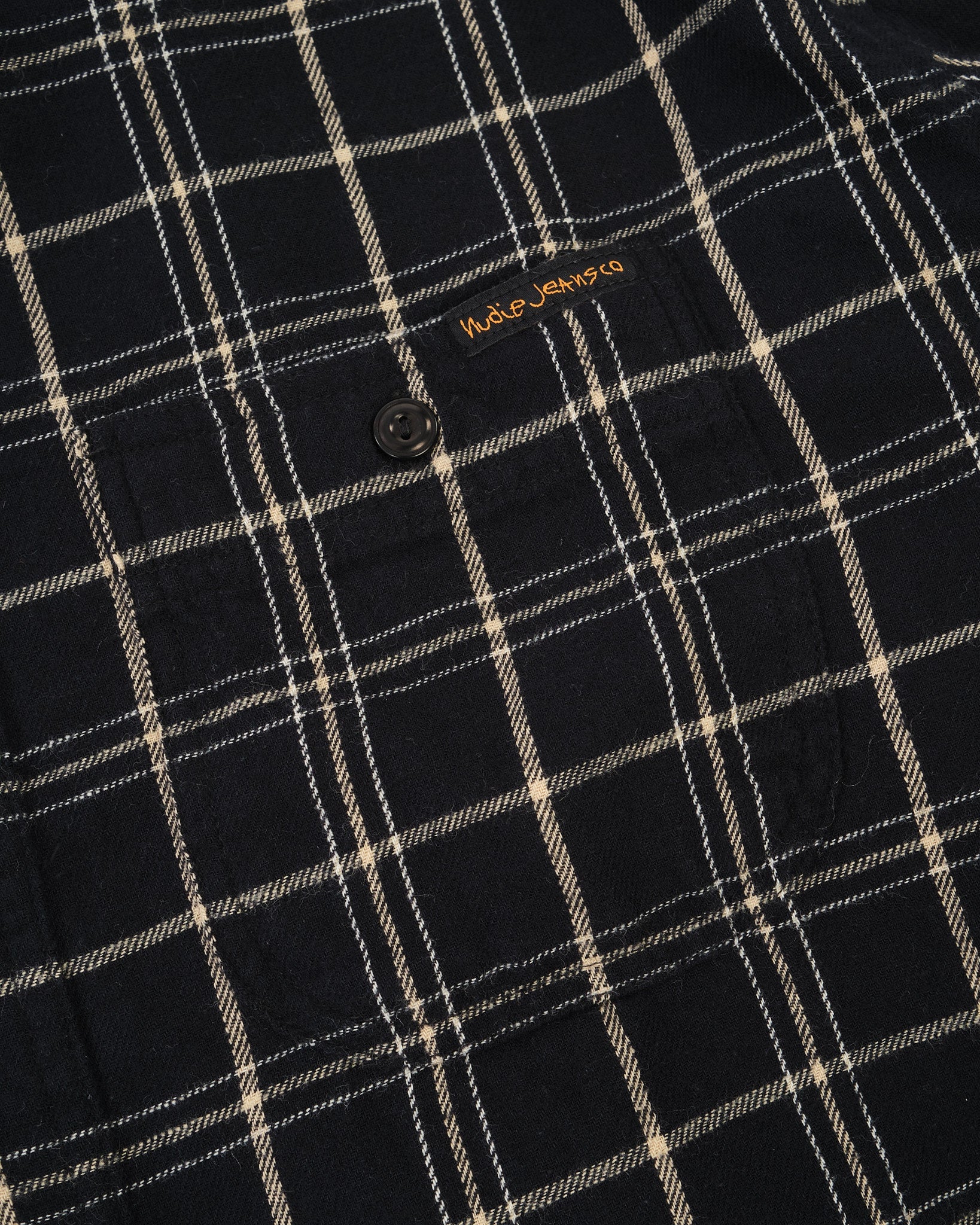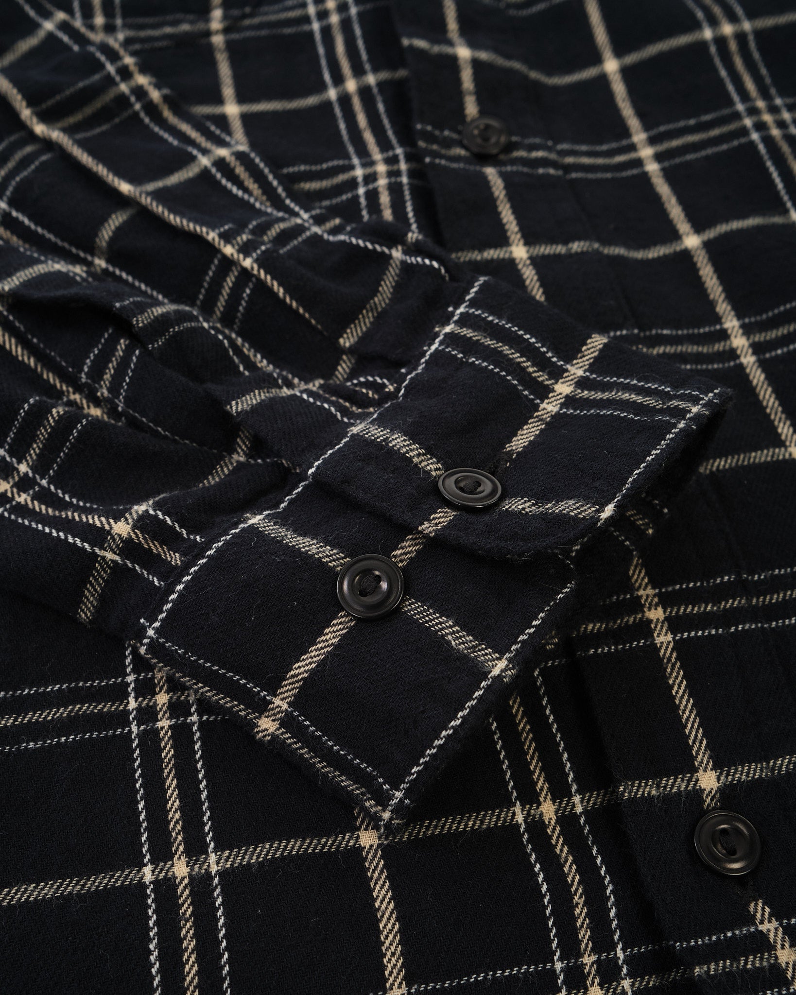 Julian Worker Shirt Checked Black is a long-sleeve shirt rooted in classic workwear, made from a soft and lightweight black-and-white checked twill fabric. A subtle brushing gives the material an extra layer of softness, making it comfortable to wear while retaining a clean, structured appearance.