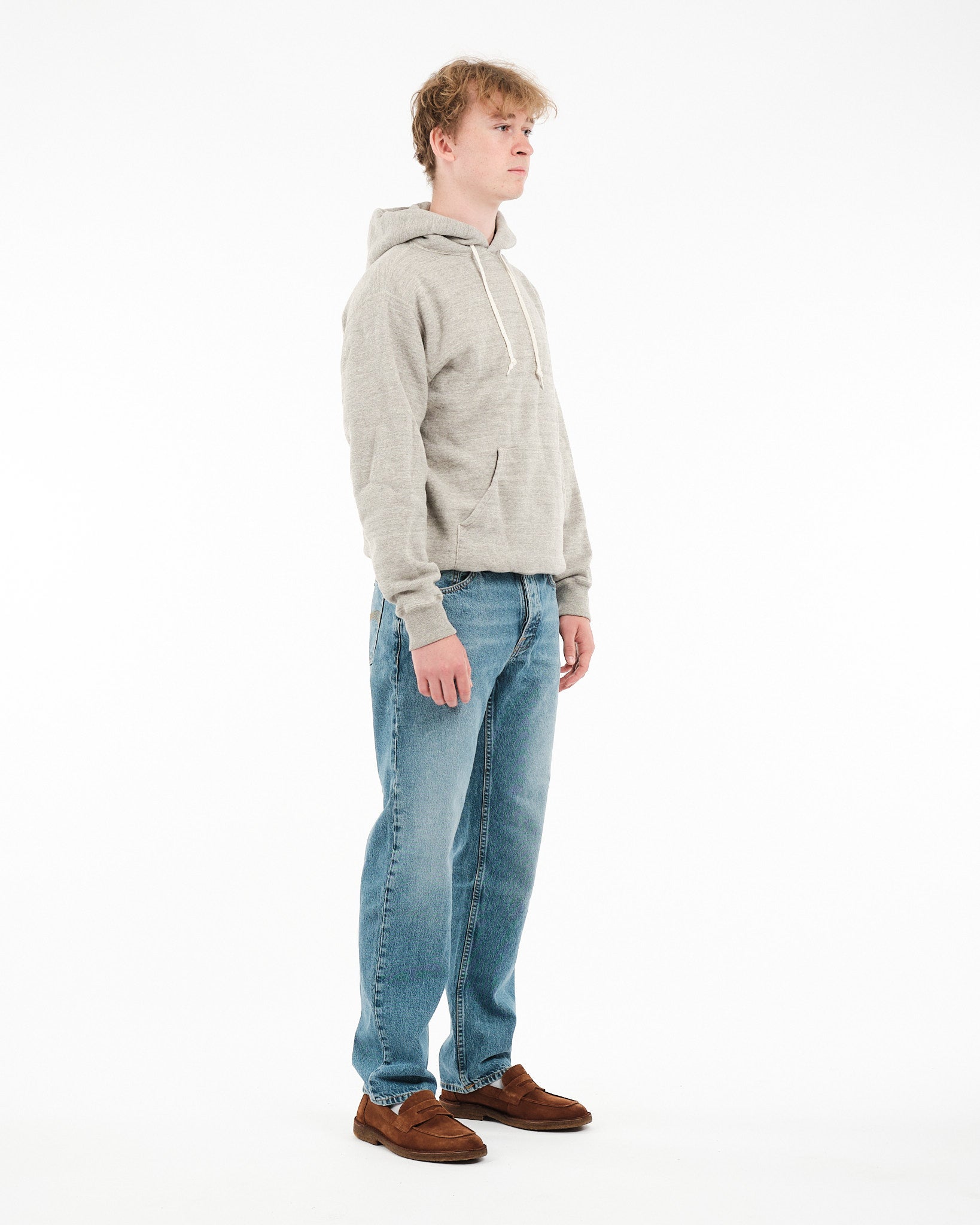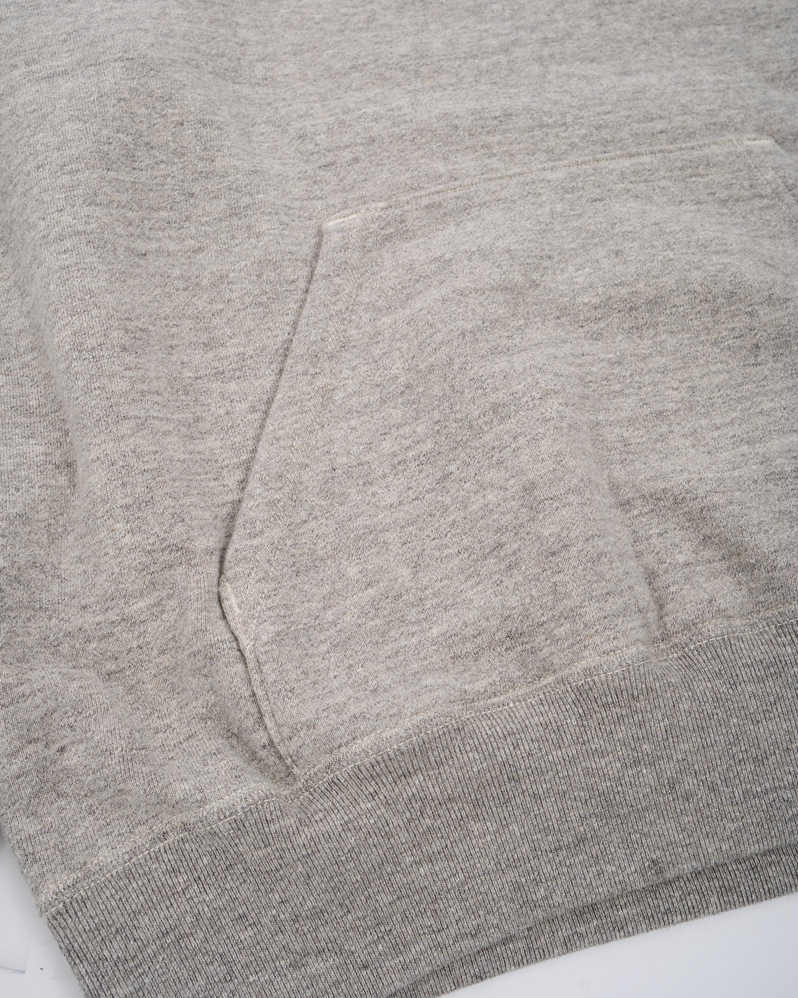 Den orSlow Loop Wheel Hooded Sweatshirt i Heather Gray är en mysig nödvändighet inspirerad av vintage amerikanska huvtröjor. Tillverkad i Japan med traditionella loopwheel-stickmaskiner, kombinerar den en mjuk 100% bomullstyg med exceptionell hållbarhet. Den avslappnade passformen, raglanärmarna och de ribbade muddarna och fållen säkerställer maximal komfort och obegränsad rörelsefrihet. En jerseyfodrad huva med justerbara snören och en framficka av kängurutyp lägger till funktionella detaljer till detta tidlösa plagg. Perfekt för lager på lager eller att bära för sig själv, den förkroppsligar orSlows åtagande till långsamt tillverkad kvalitet och tidlös design.