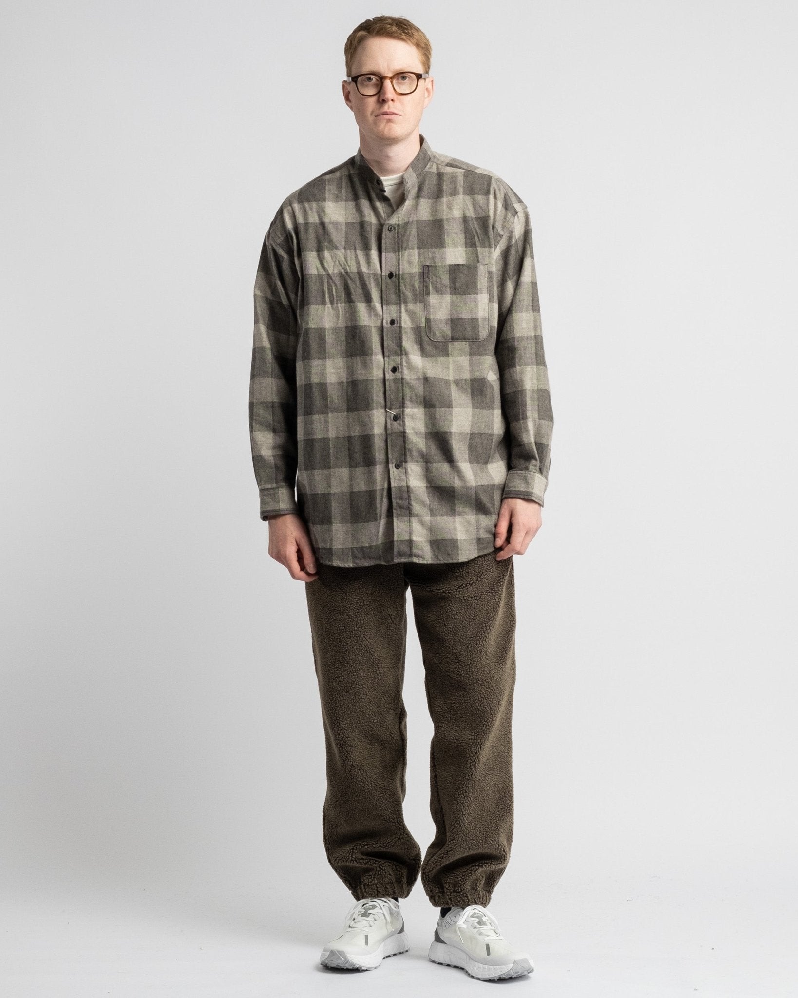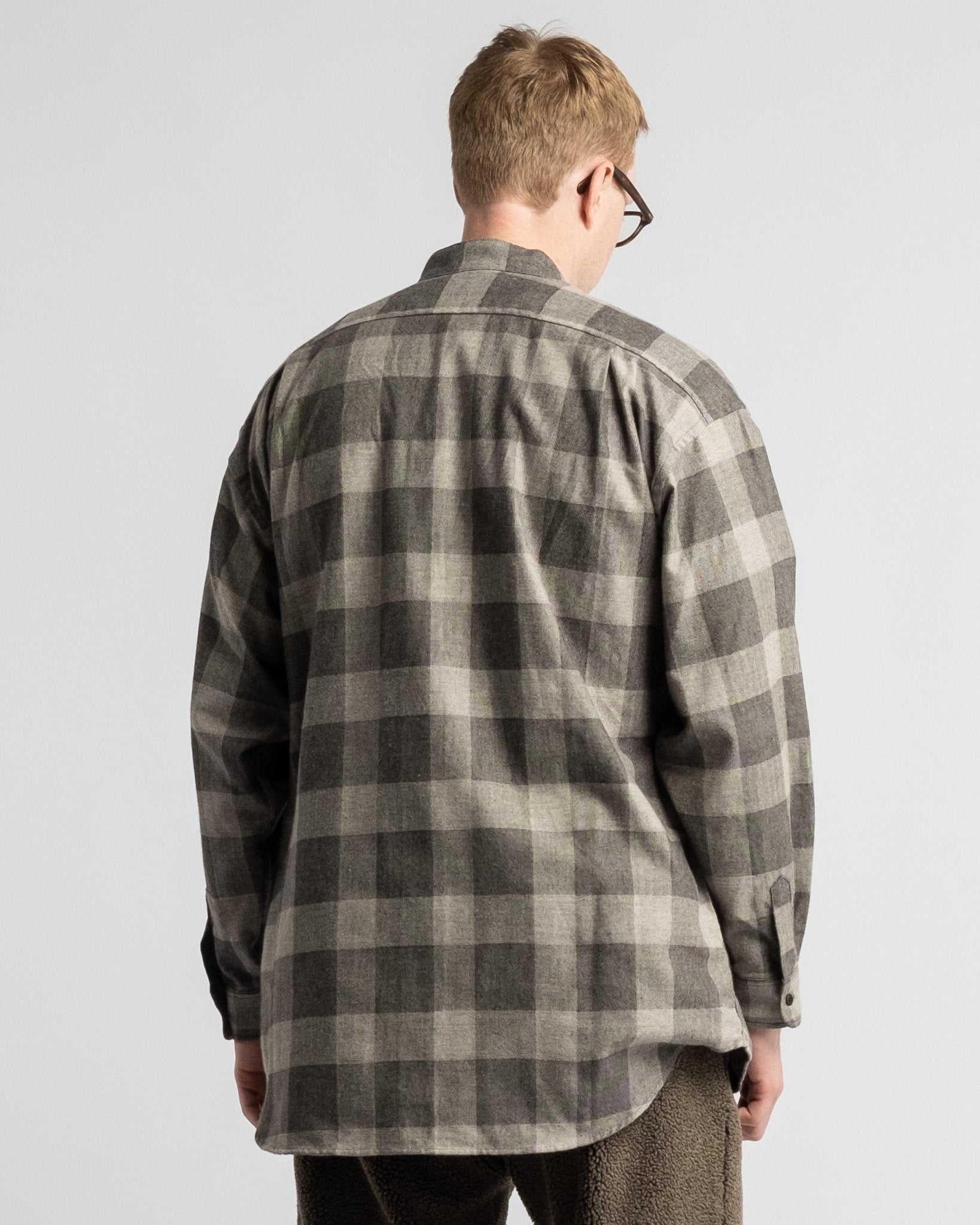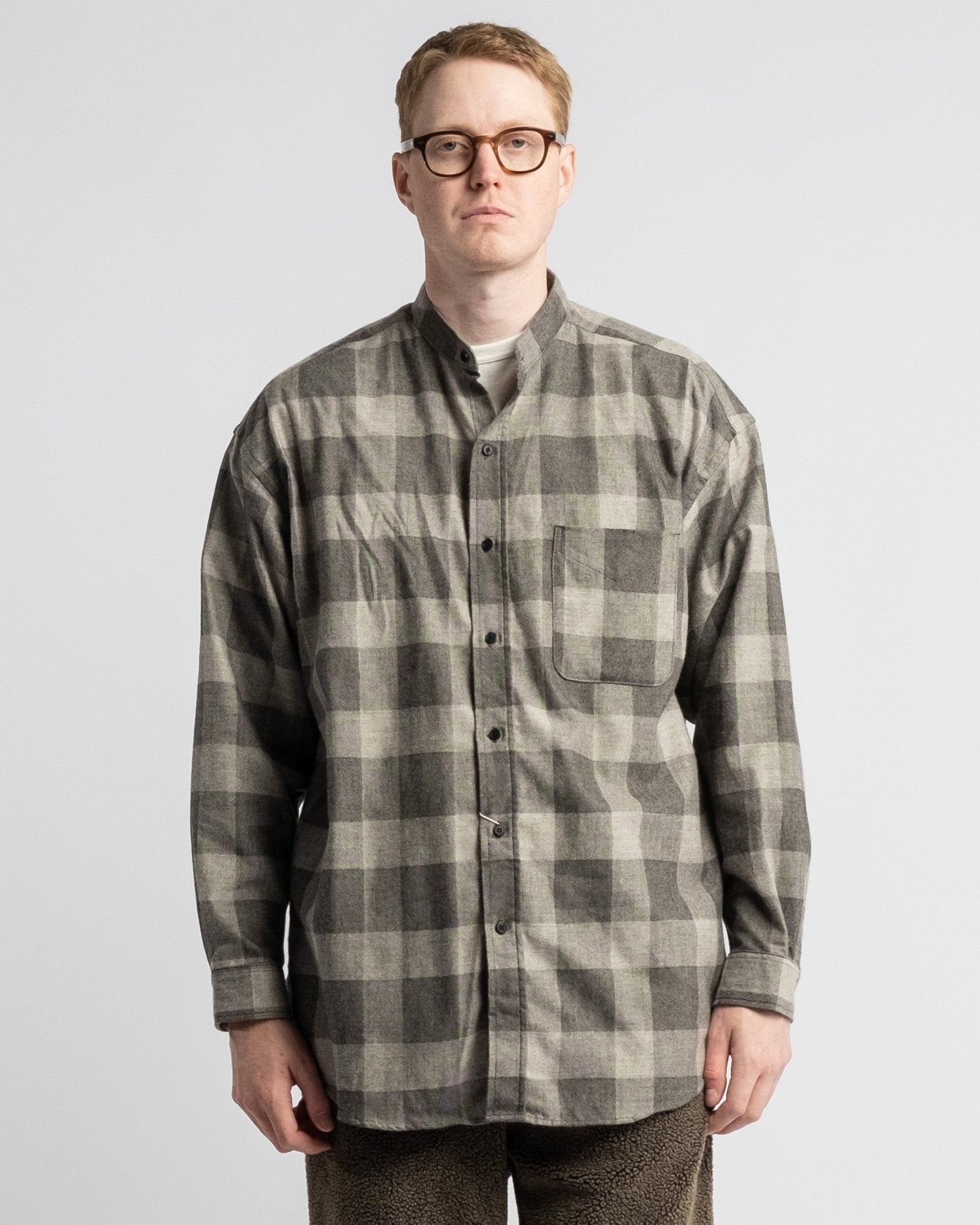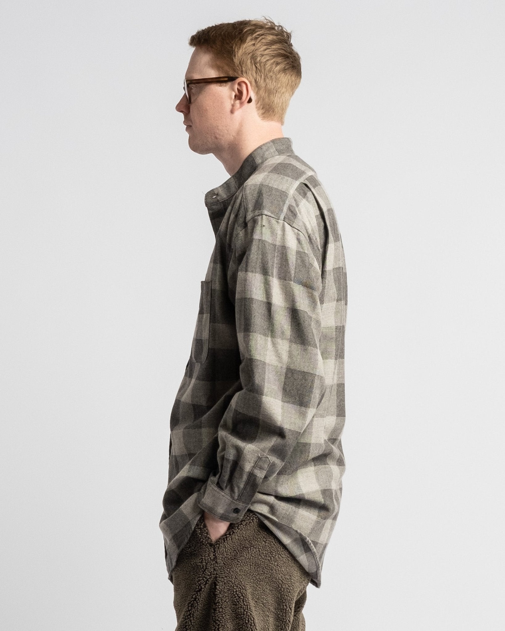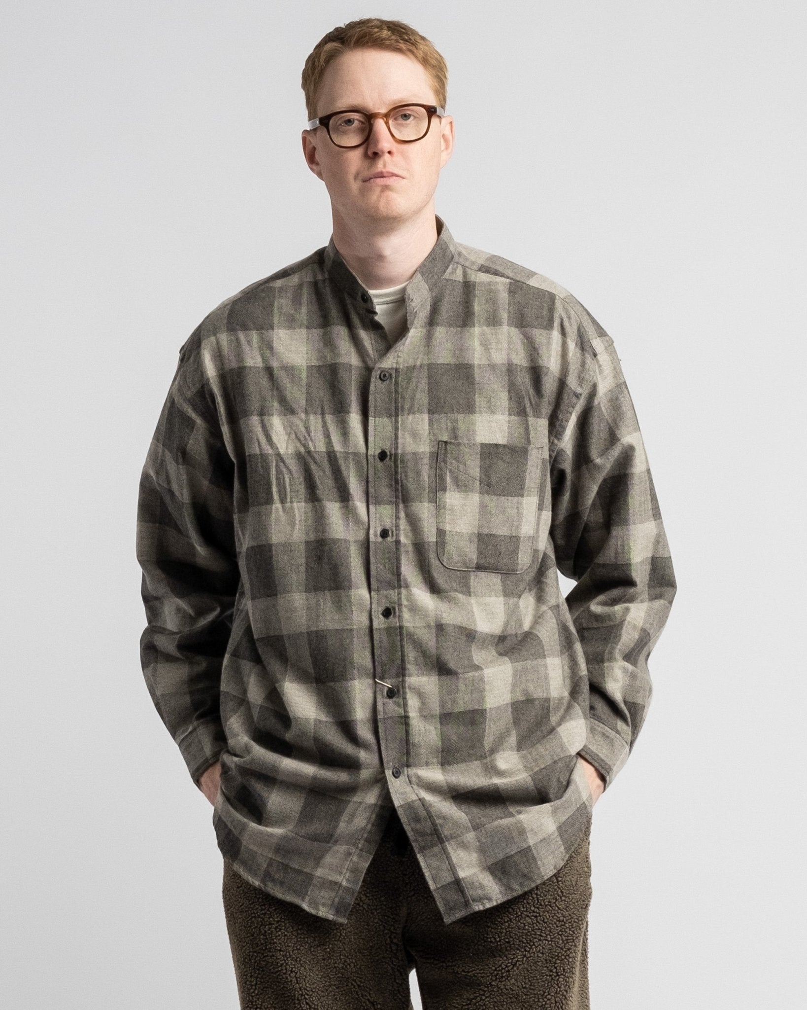 Letar du efter något riktigt bekvämt att ha på dig när det blir kallare? Då kan Loose fit stand collar från orSlow vara något för dig. Tillverkad av en supermjuk flanell gjord av 90% bomull och 10% ull, tillverkad i Japan.