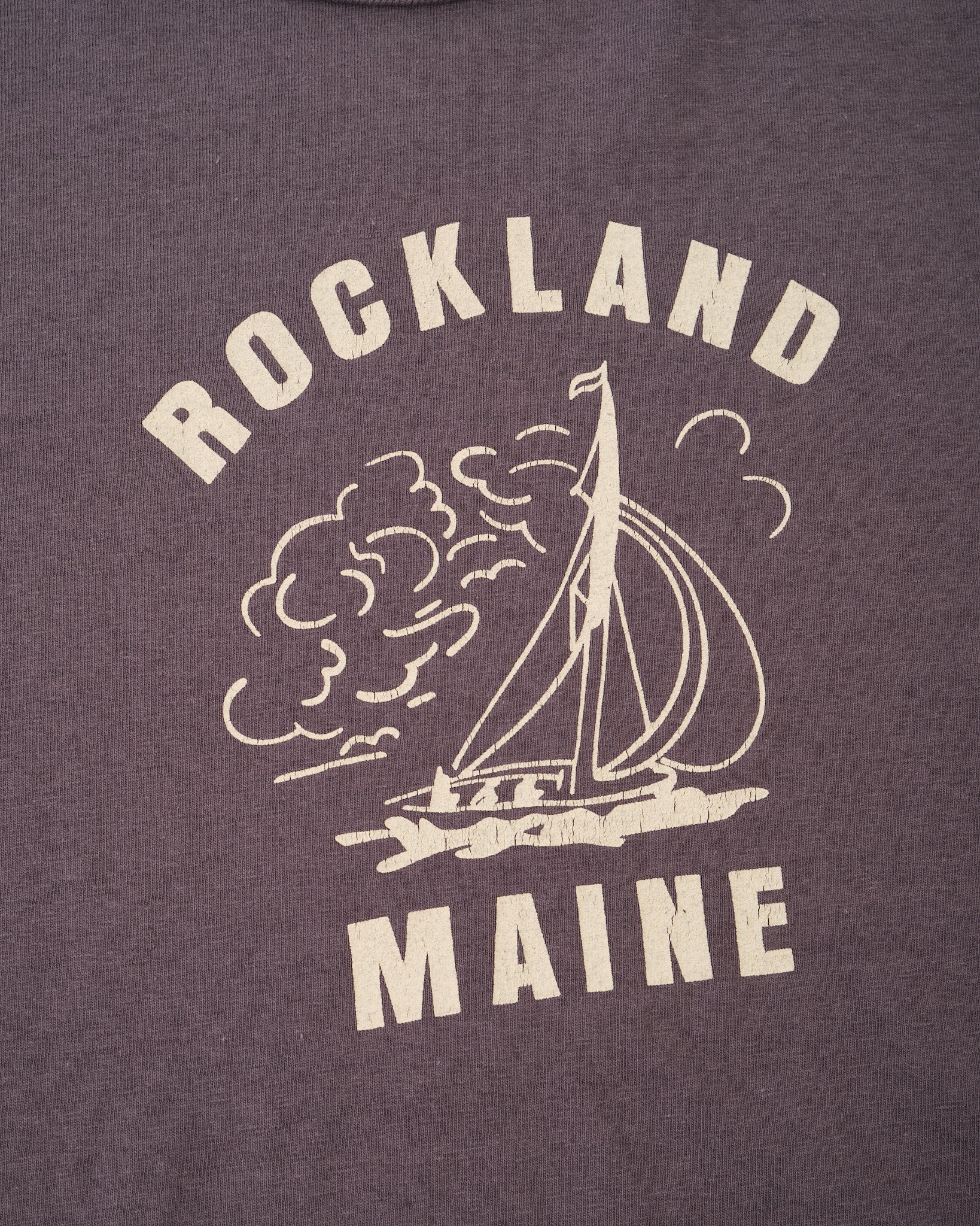 Med en måttligt lös halsringning, naturligt blekt kropp och ett nött "Rockland"-tryck, bär den charmen hos en gammal klassiker utan årens väntan. Den borstade finishen lägger till ett extra lager av komfort, vilket gör att den känns inarbetad från dag ett.