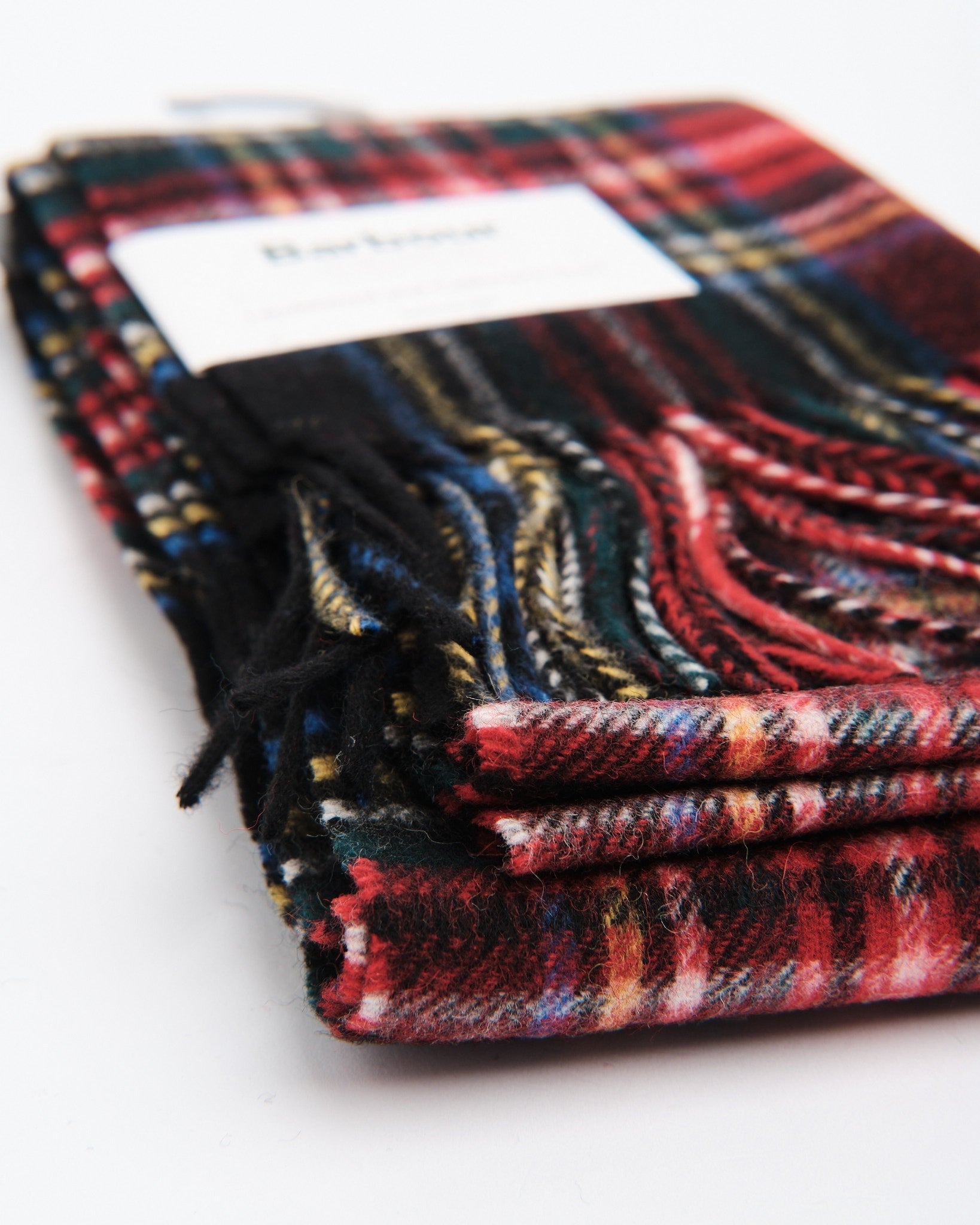 Svep in dig i tidlös brittisk charm med den Barbour nya rutiga tartanscarfen i Black Stewart. Gjord av en lyxig blandning av lamull och kashmir, erbjuder denna scarf precis rätt mix av mjukhet och värme för kallare månader. Den överdimensionerade filt-stilens tartanrutning är rik på arv, medan den borstade finishen lägger till ett lager av plyschig textur mot huden. Fransade kanter ger en klassisk finish, och scarfen’s 180 cm längd tillåter flexibel styling—vare sig omslagen, knuten eller draperad.