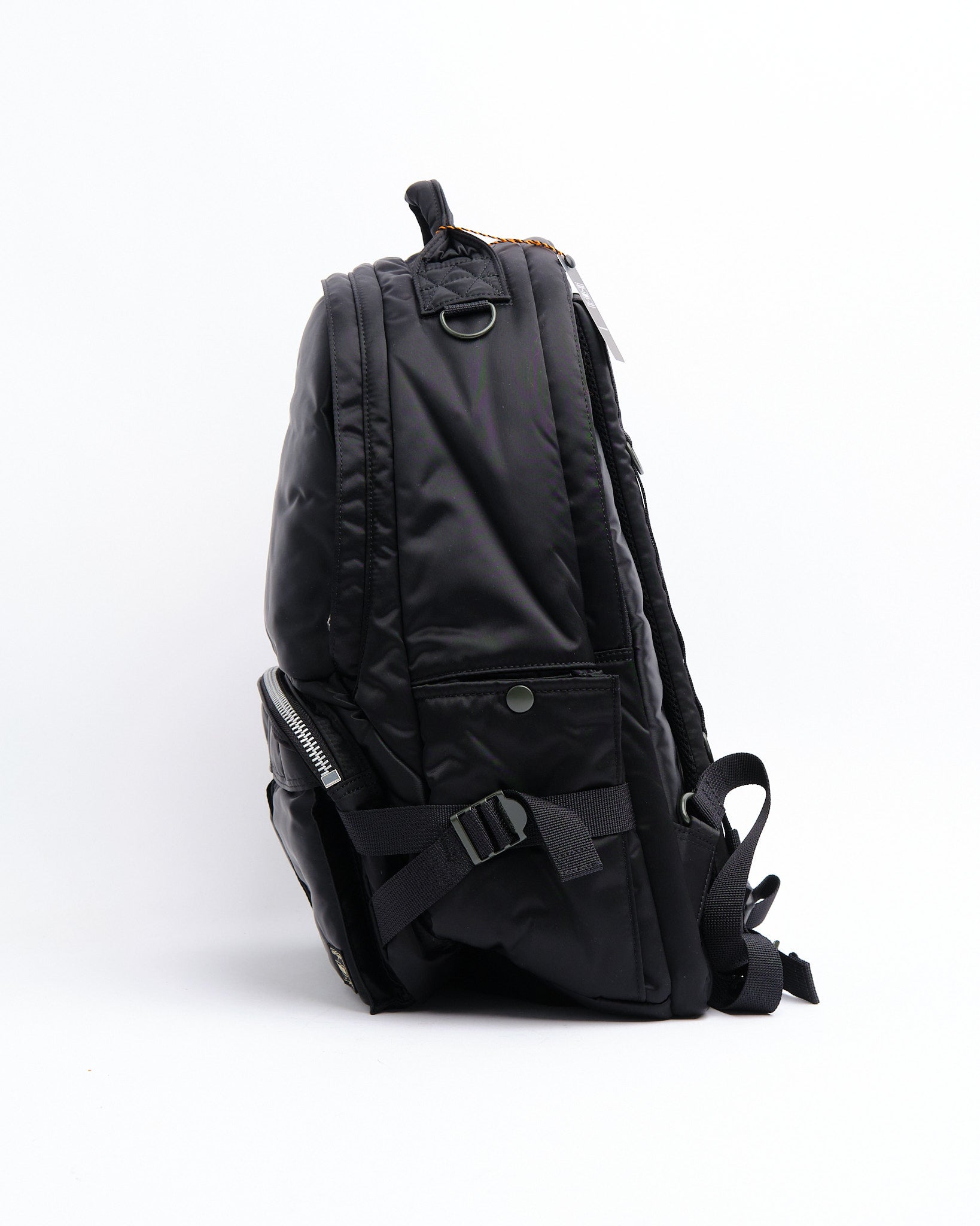 Ryggsäcken PORTER BY YOSHIDA Tanker Daypack (L) (622-19842-10) i svart är en rymlig, funktionell väska från den nyligen återfödda serien New Tanker. Tillverkad av 100% växtbaserad nylon, gjord av majs och ricinoljeväxter, fortsätter denna ryggsäck arvet från den ikoniska Tanker-kollektionen, nu förbättrad med moderna uppdateringar. Tyget, som produceras av Toray Industries, är känt för sin styrka, smidighet och en livlig glans, samtidigt som det är miljövänligt.