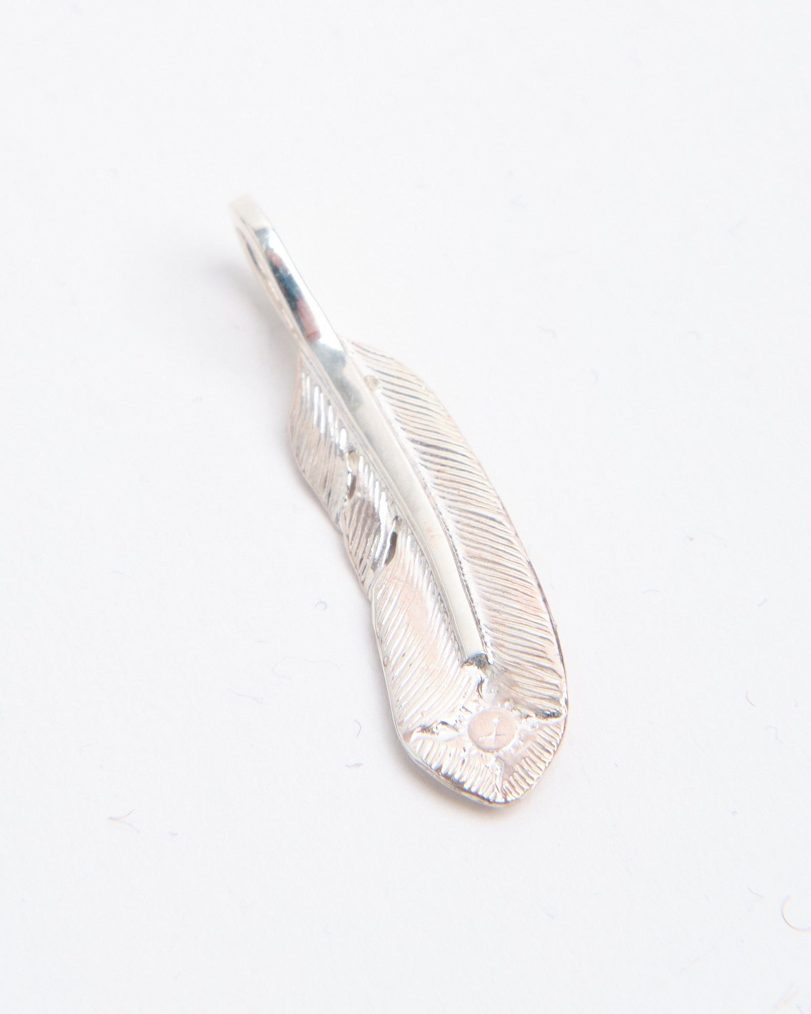 The Feather (S) is a smaller pendant from First Arrows, handcrafted in Japan using Britannia Silver 950. The feather design draws from Native American tradition, representing freedom, hope, and positive spirit, but is reinterpreted in a refined and versatile way. First Arrows use their unique heat treatment process to strengthen the silver, giving it both durability and brilliance. Compact and elegant, this piece can be worn on its own for a subtle accent or layered with other pendants to create a personal combination. With time, the silver darkens, adding depth and character that makes each piece unique to its wearer.