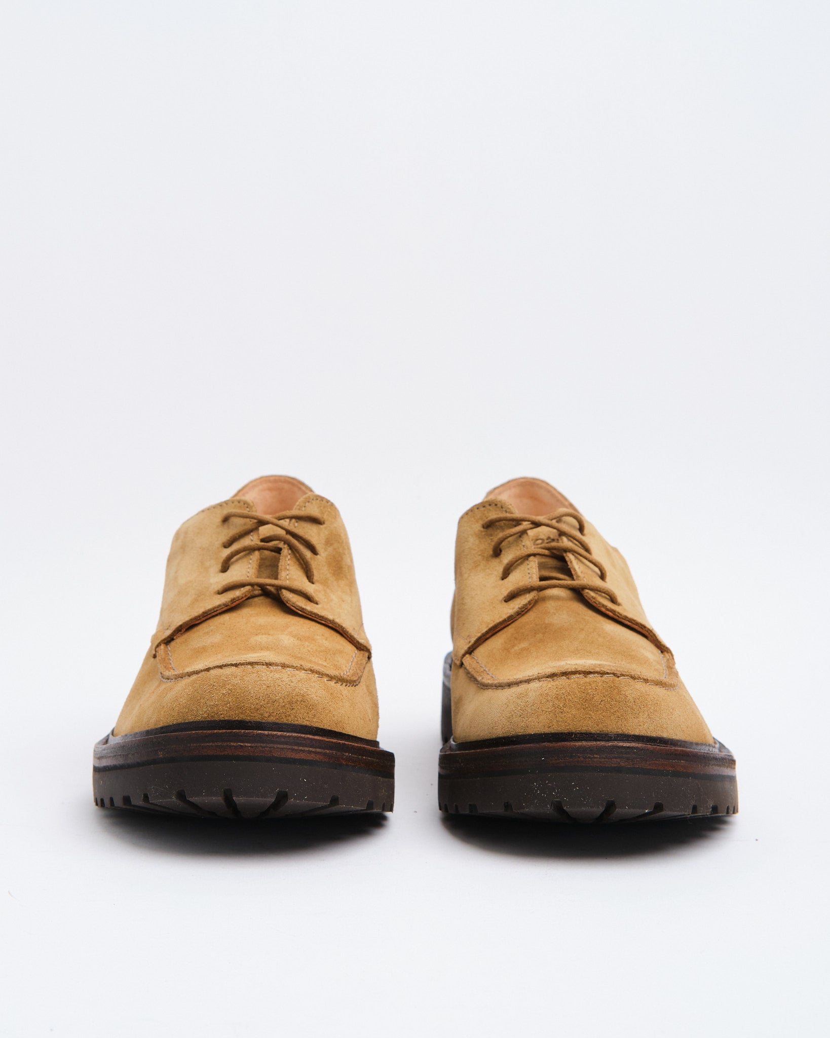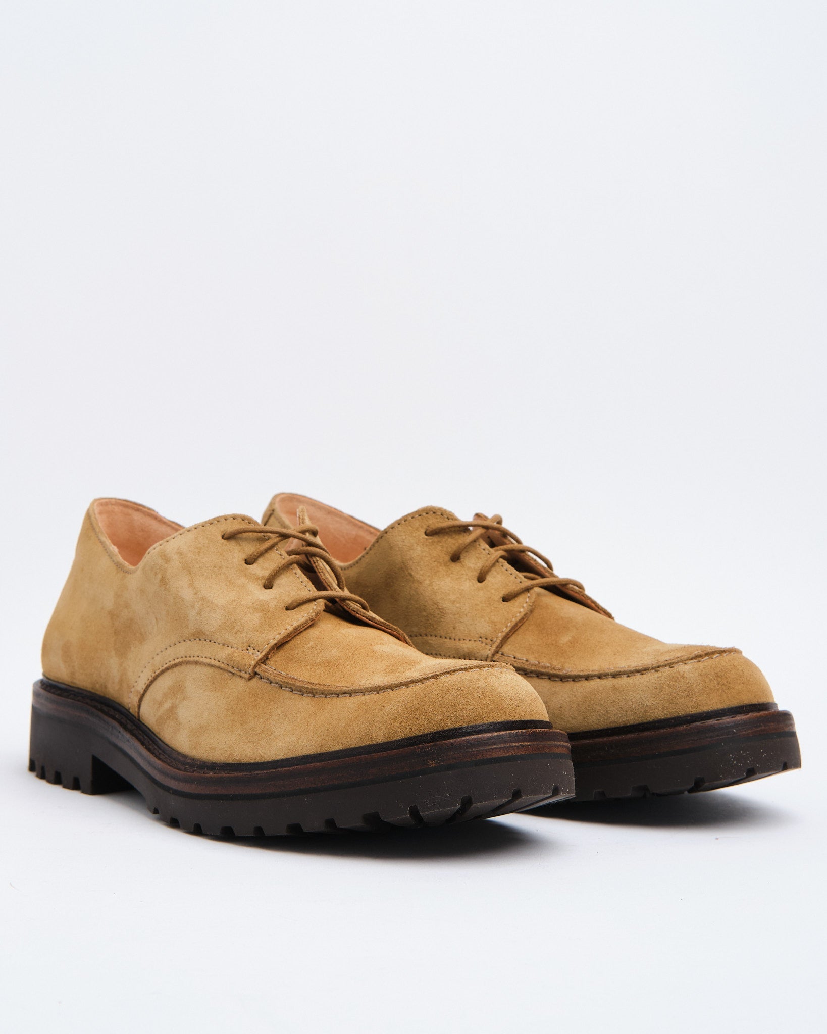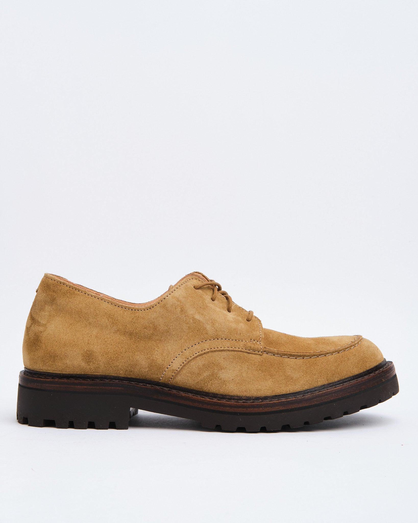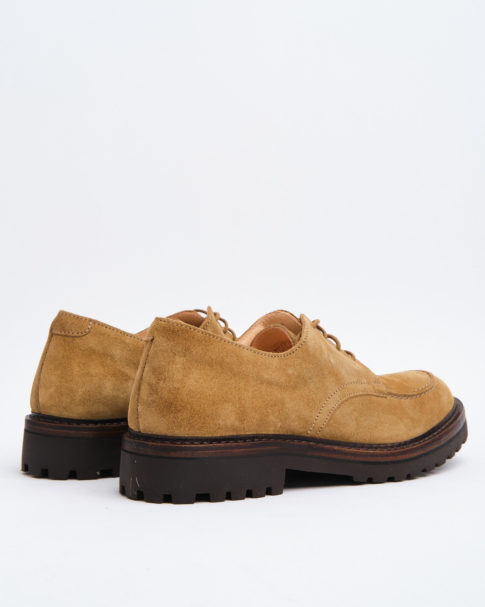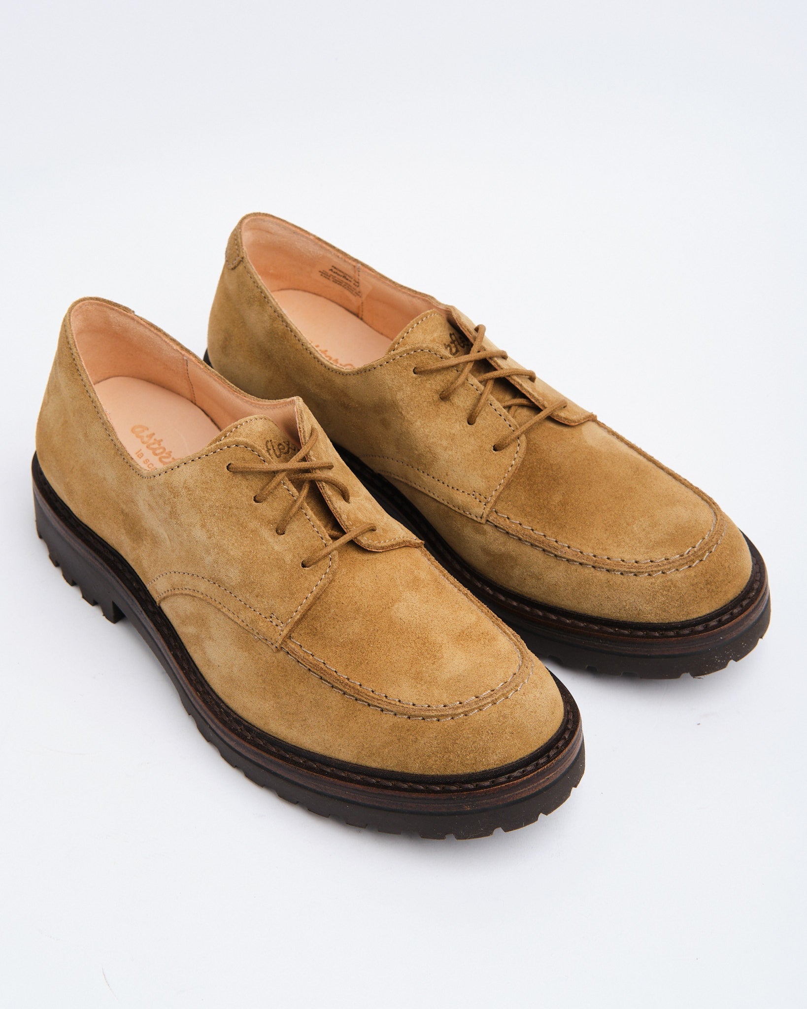 The Polflex by Astorflex is a rugged derby shoe designed for comfort, versatility, and long wear. Made in Italy from whiskey-coloured suede, it pairs classic shoemaking with outdoor-ready functionality.