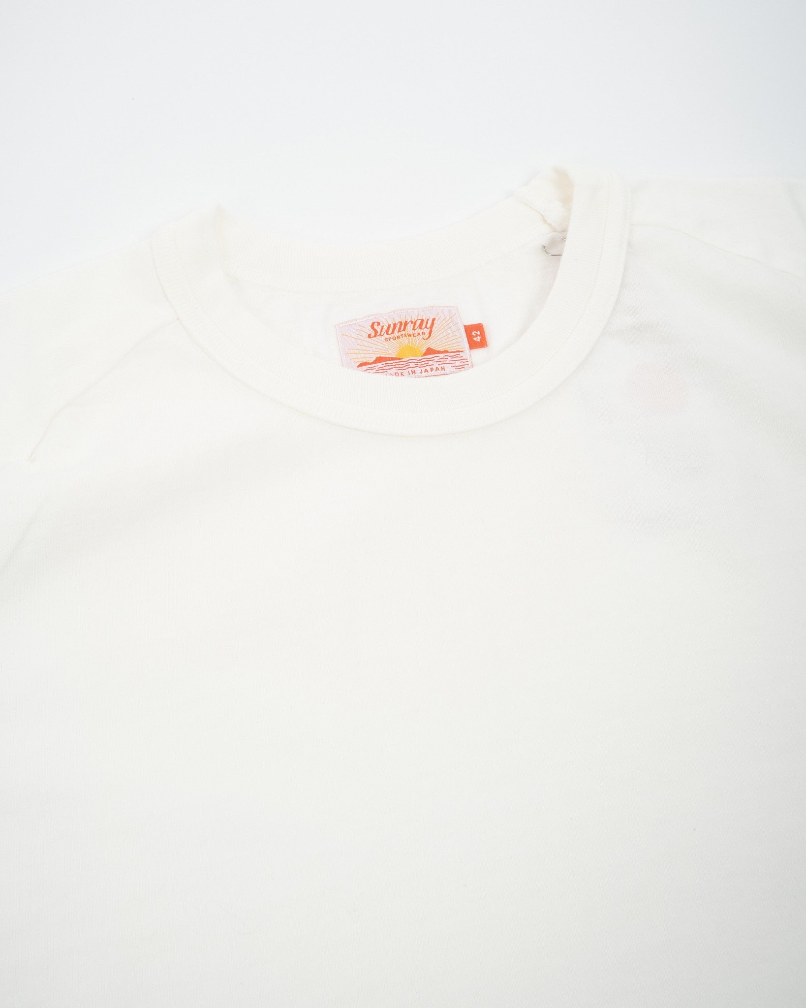 Föreställ dig Sunray Sportswear Pua'ena SS T-Shirt som ett mästerverk av hantverksskicklighet och komfort i immaculate Off White. Denna T-shirt har ett robust 300gsm japanskt jersey, lika tungt som högkvalitativt sweatshirtmaterial, men känns exceptionellt mjuk och lyxig mot huden. Tillverkad på vintage cirkulära stickmaskiner, erbjuder Pua'ena ett tyg av oöverträffad kvalitet utan sidofogar, vilket garanterar en felfri passform som varar. Den unika sadelraglanärmkonstruktionen, känd i Japan som 'freedom sleeve', erbjuder oöverträffad rörlighet och en elegant estetik. Denna skjorta är en perfekt blandning av traditionellt hantverk och samtida stil, idealisk för den moderna mannen som värderar kvalitet och ett distinkt utseende.