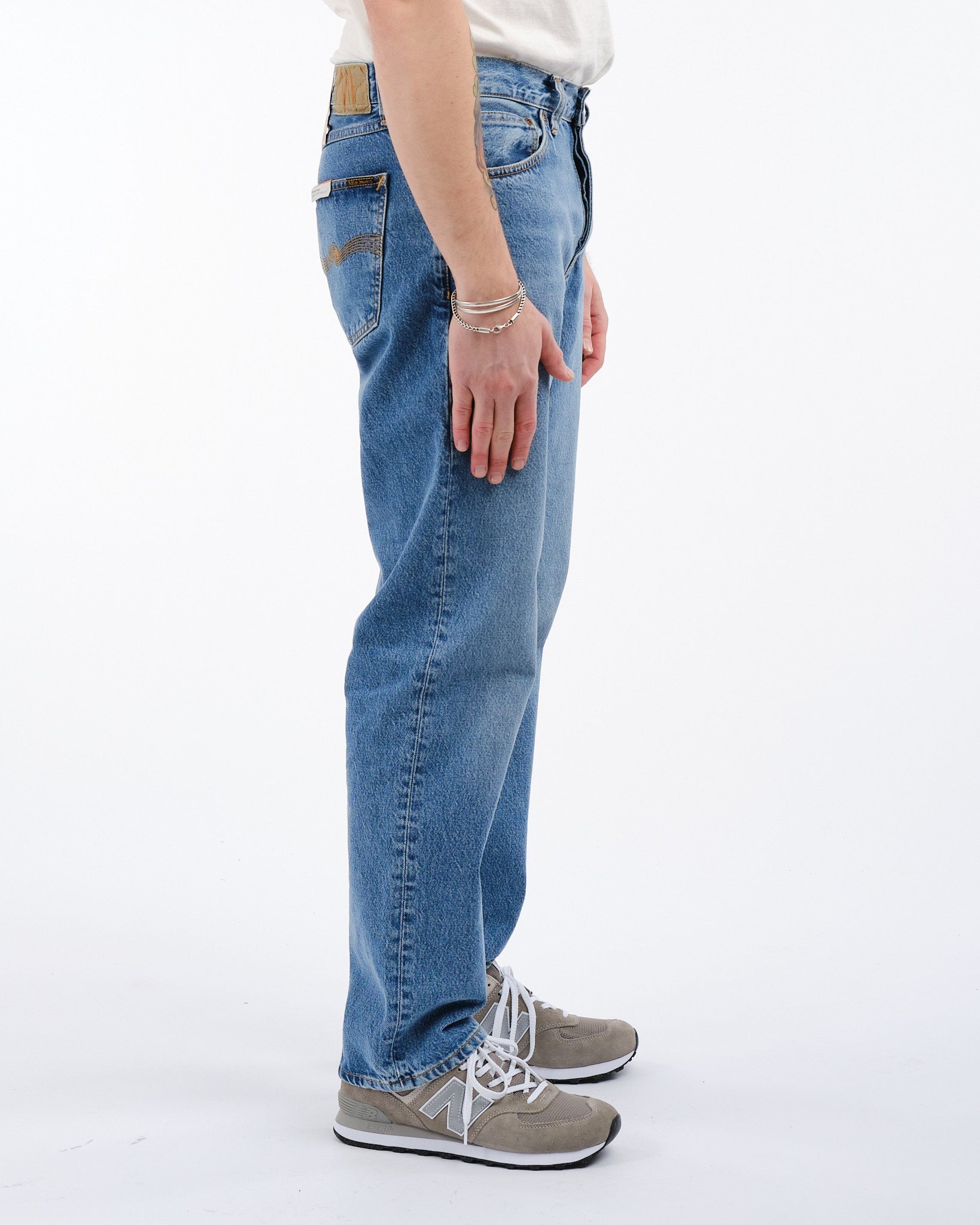 Utforska den blå världen av Rad Rufus Indigo Blues från Nudie Jeans Co. Dessa jeans är tillverkade av bomull och stoltserar med ett robust 14,9 oz. stel denim som inte bara säkerställer lång hållbarhet utan också utvecklar en unik charm med varje användning. De förblir sanna mot den tidlösa denimstilen med tobaksfärgade trådar, kopparaccenter och knappgylf, allt sammanbundet med en jacronlapp som symboliserar hantverksskicklighet. Den höga midjan och det raka benet ger en stilfull form, vilket gör dessa jeans till en mångsidig nödvändighet för varje garderob.