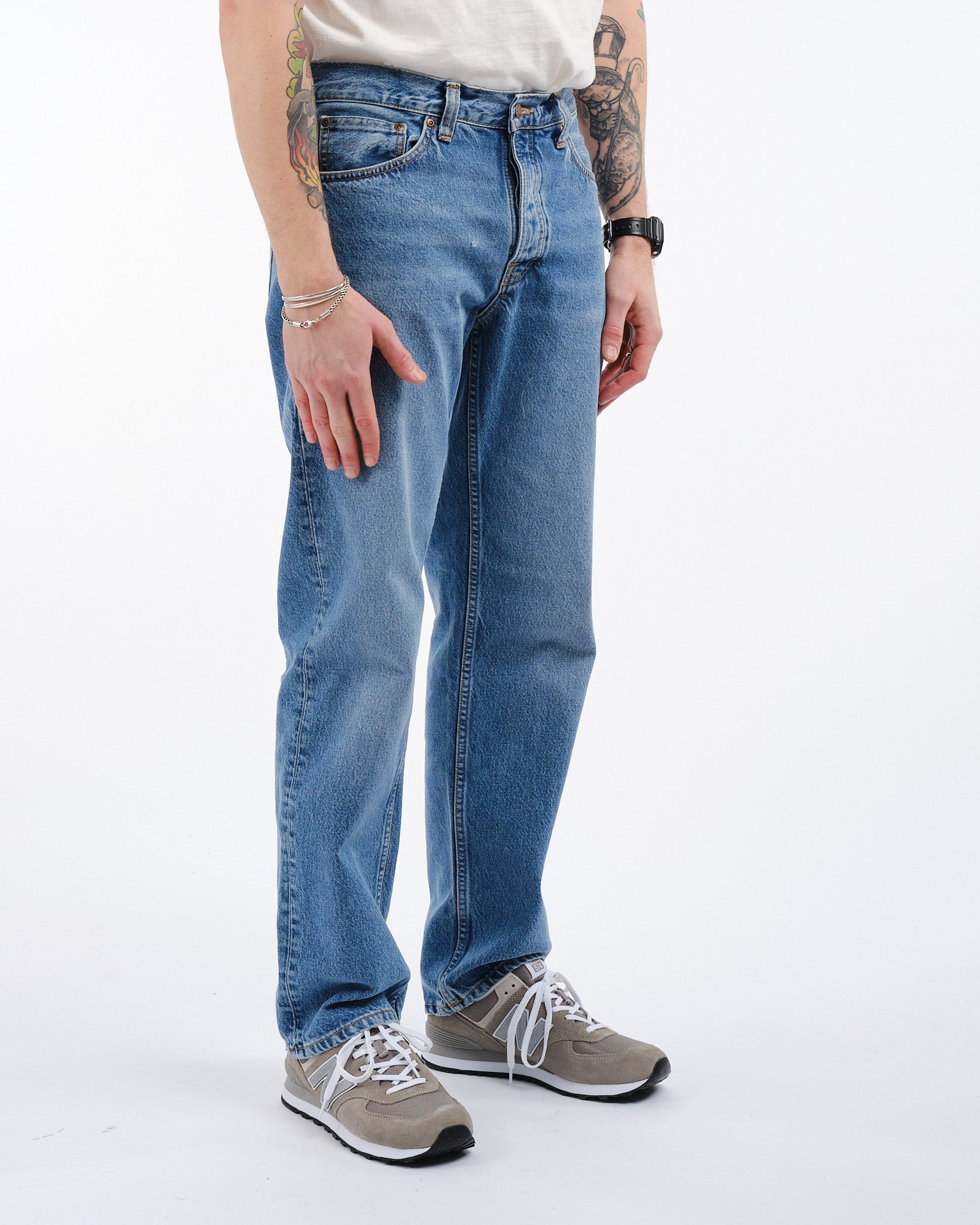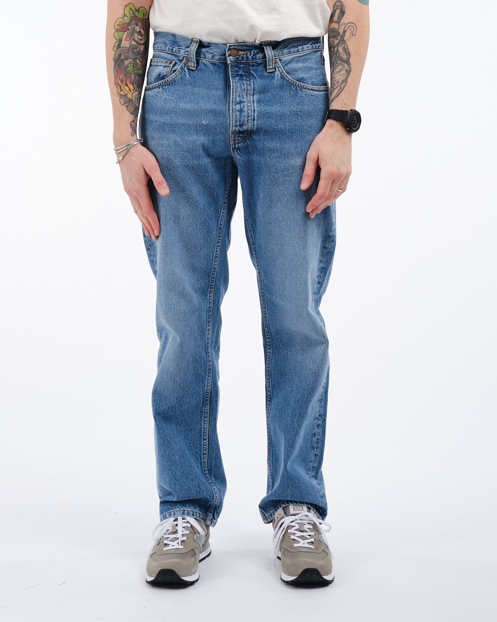 Vintage Indigo Tvätt: Har en mellanblå tvätt med ett spektrum av indigonyanser som lägger till djup och karaktär.