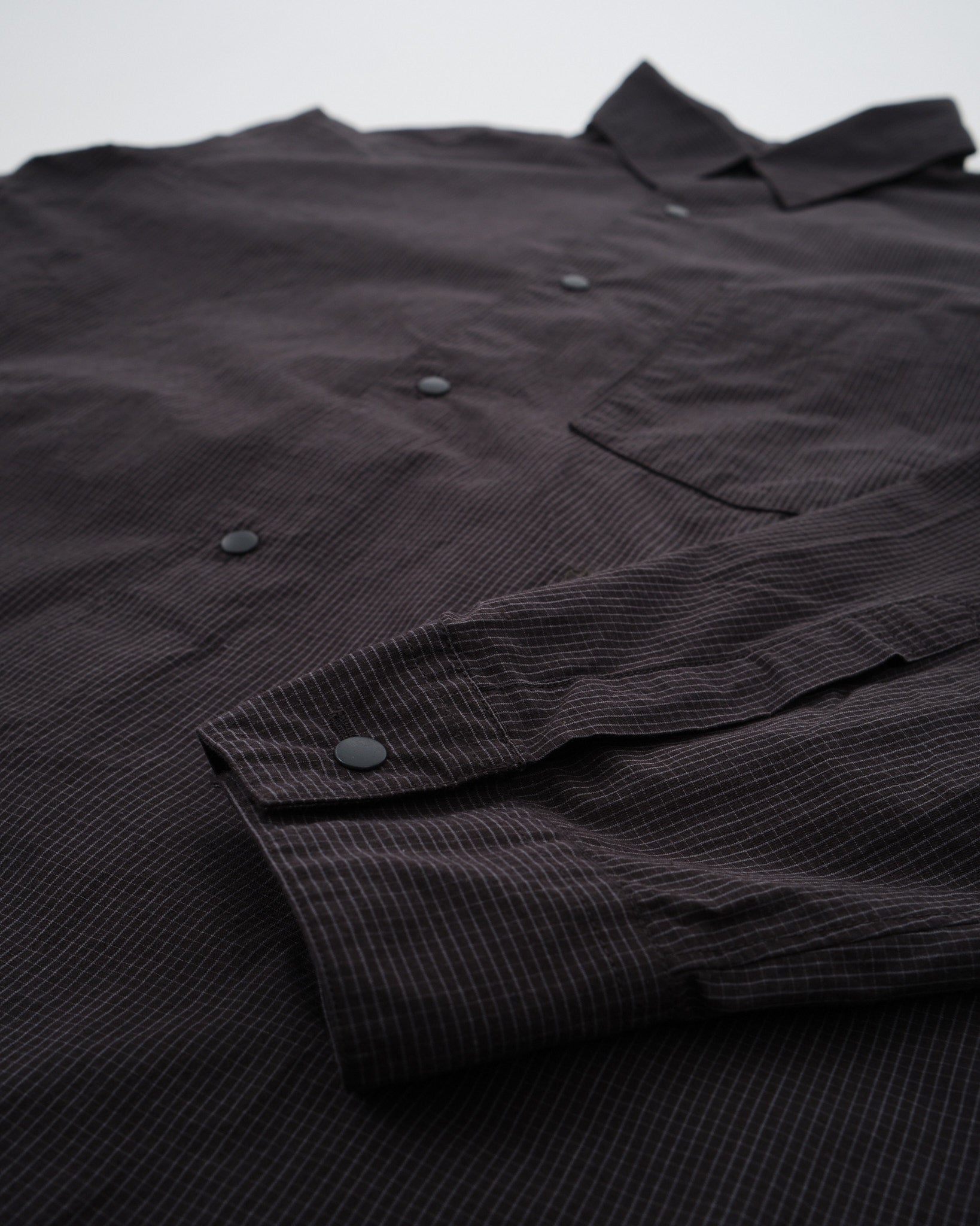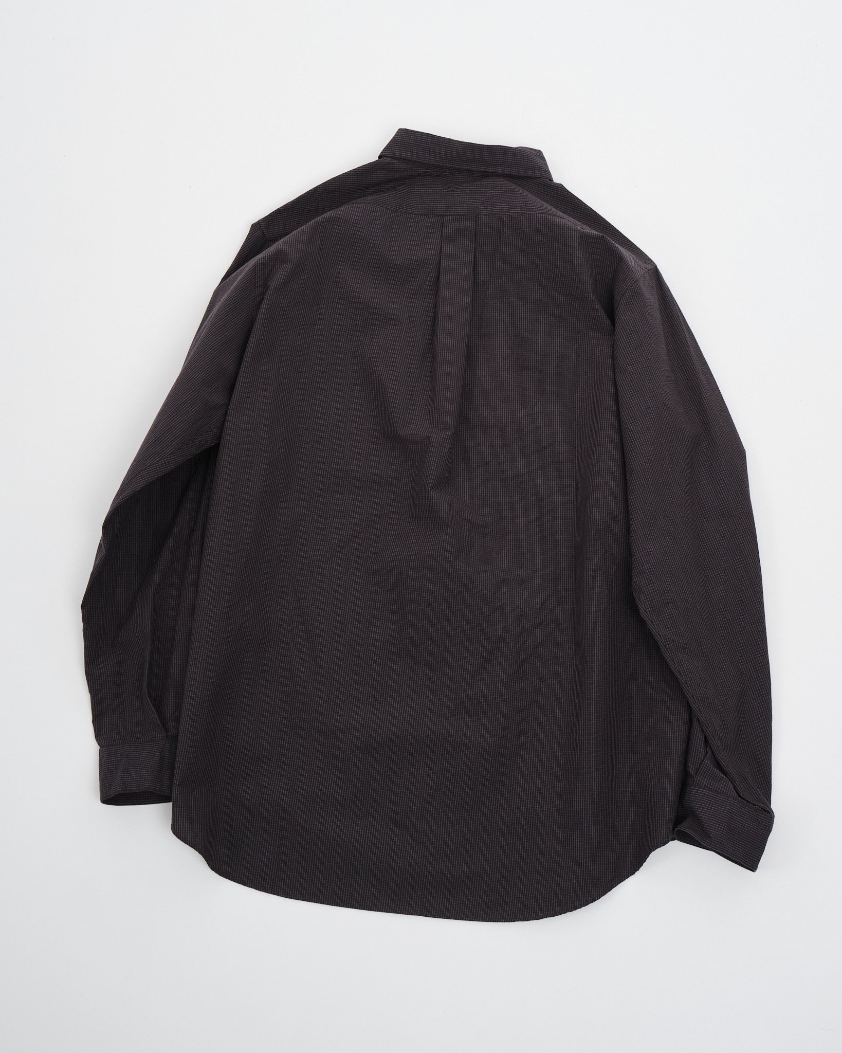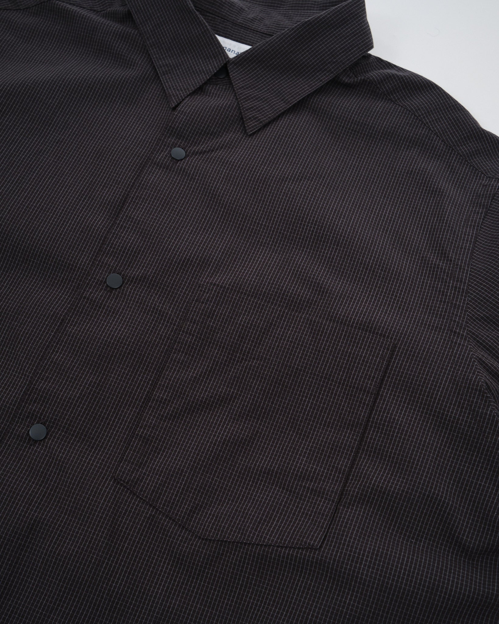 Stig in i förfinad sofistikation med Nanamicas Regular Collar Wind Shirt i en djup kolnyans. Skjortan förenar traditionell dragningskraft med samtida elegans. Dess unika broadclothtyg, tillverkat av täckande kärntråd, är omsorgsfullt designat med bomull som omsluter en polyesterkärna. Jämfört med den standard SUGS307, skryter den med en lättare tygtextur och erbjuder en silhuett ungefär en storlek smalare. Skjortan pryds av ett klassiskt rutigt mönster, som subtilt förhöjer dess estetiska tilltal. För att komplettera dess design, är alla knappar utformade som prickknappar, åtföljda av dekorativa knapphål, för den där extra finessen.