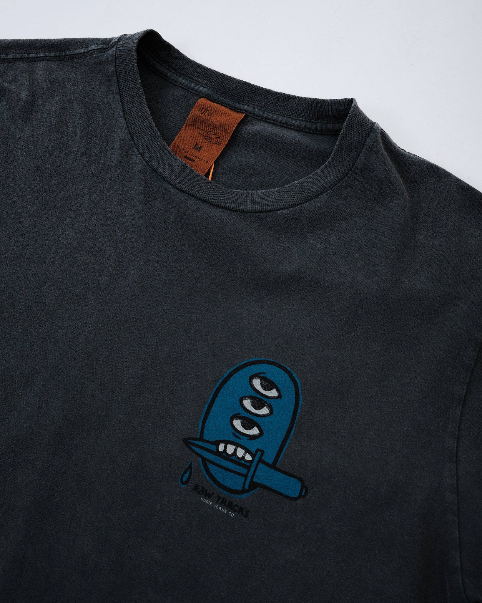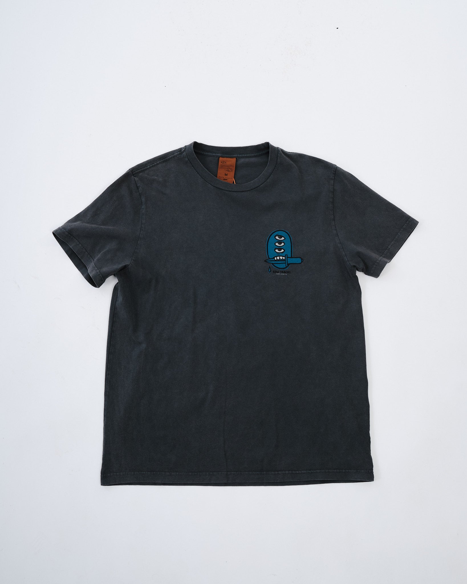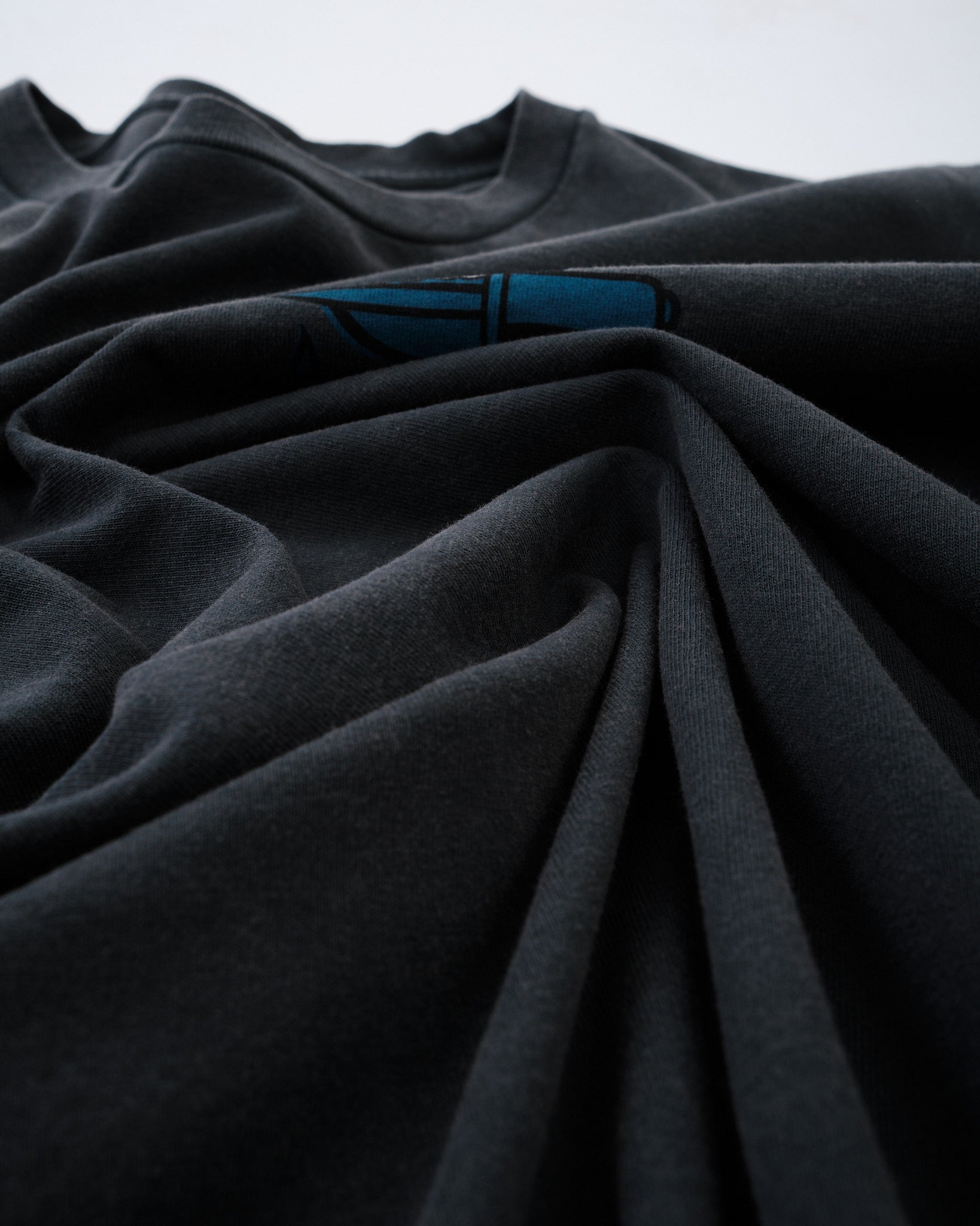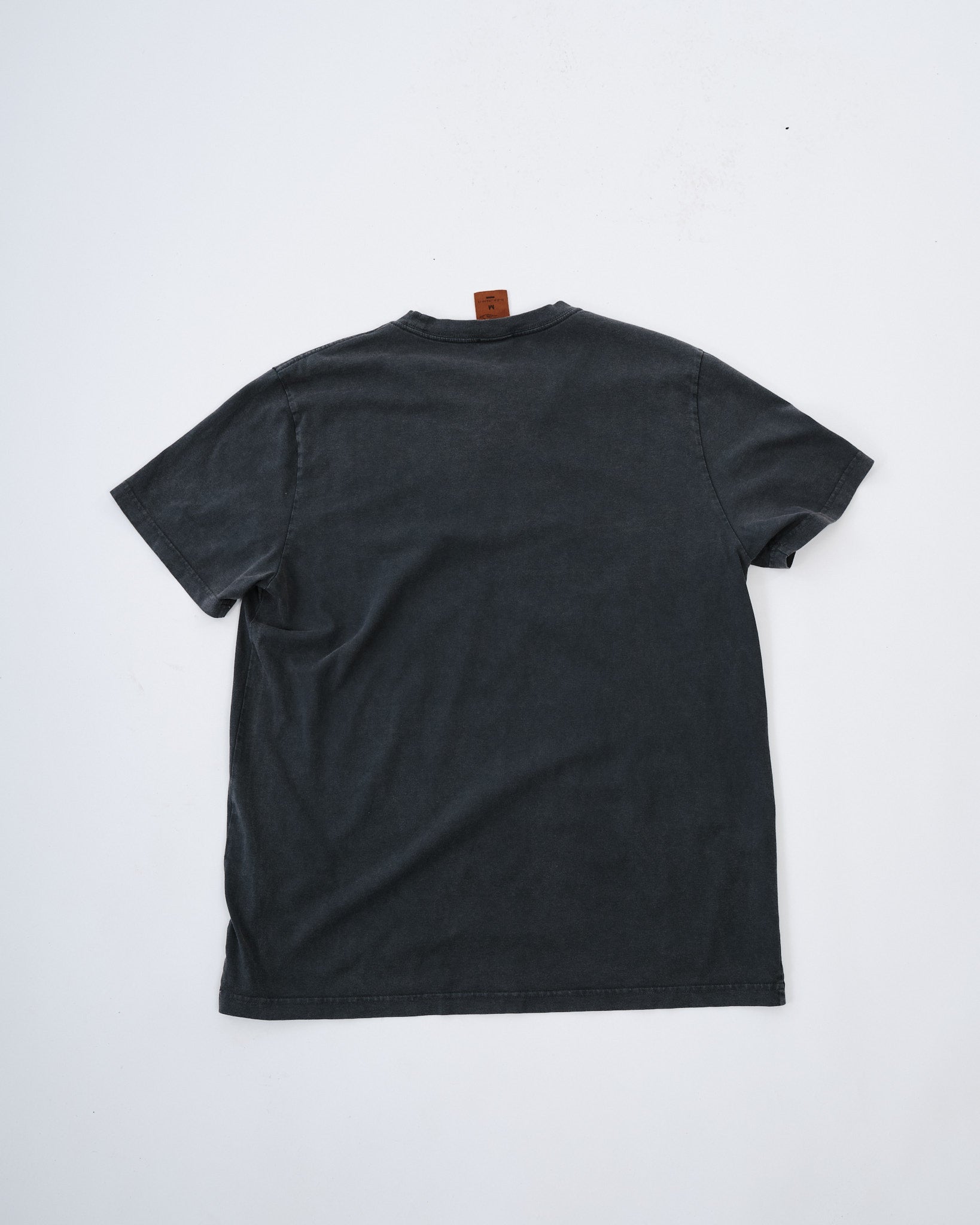 Den blekta antracitnyansen har genomgått en plaggfärgning och en fade-out tvätt, vilket ger den en naturligt inburen look som passar perfekt till denim. Med tiden kommer färgen att fortsätta förändras, vilket förstärker den autentiska vintagekänslan. Avslutad med en bröstprint, kombinerar denna t-shirt avslappnad stil med tidlös karaktär.