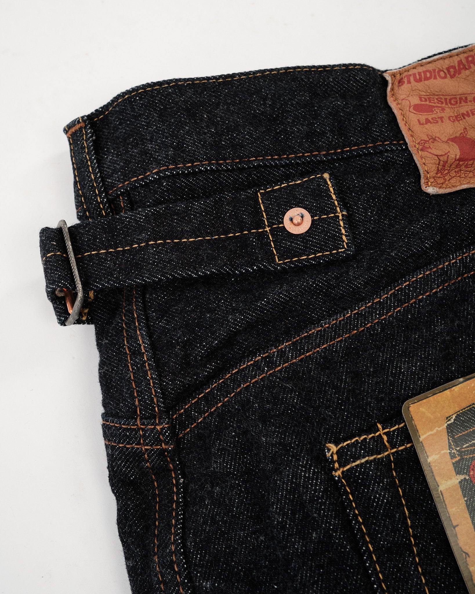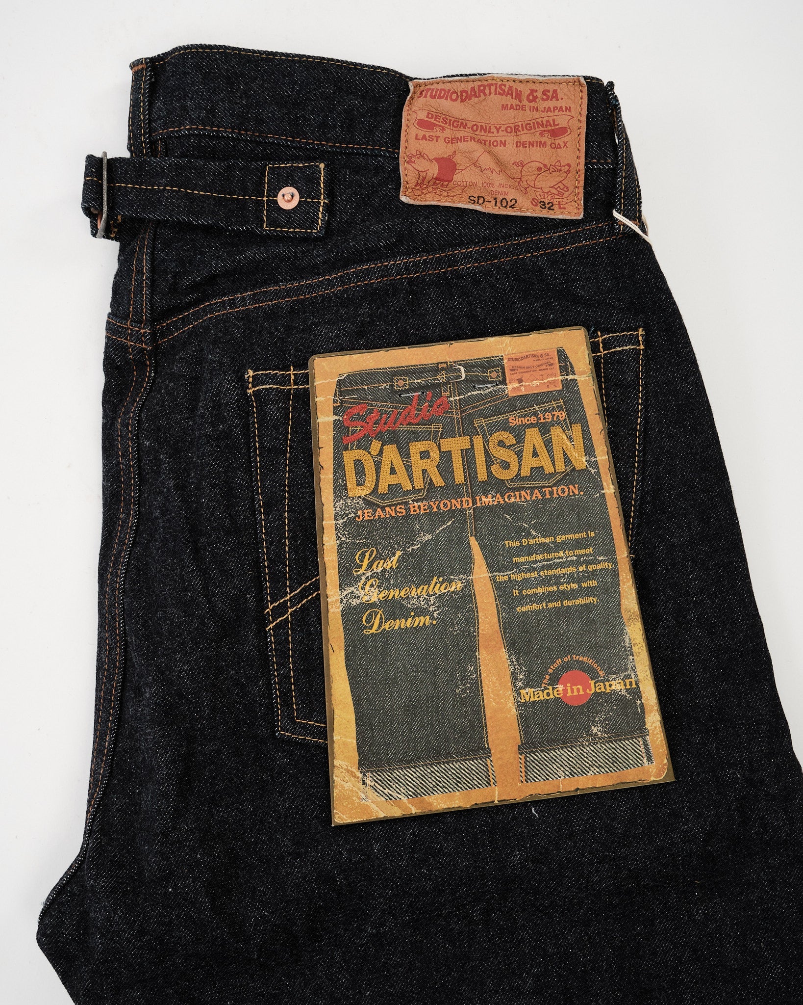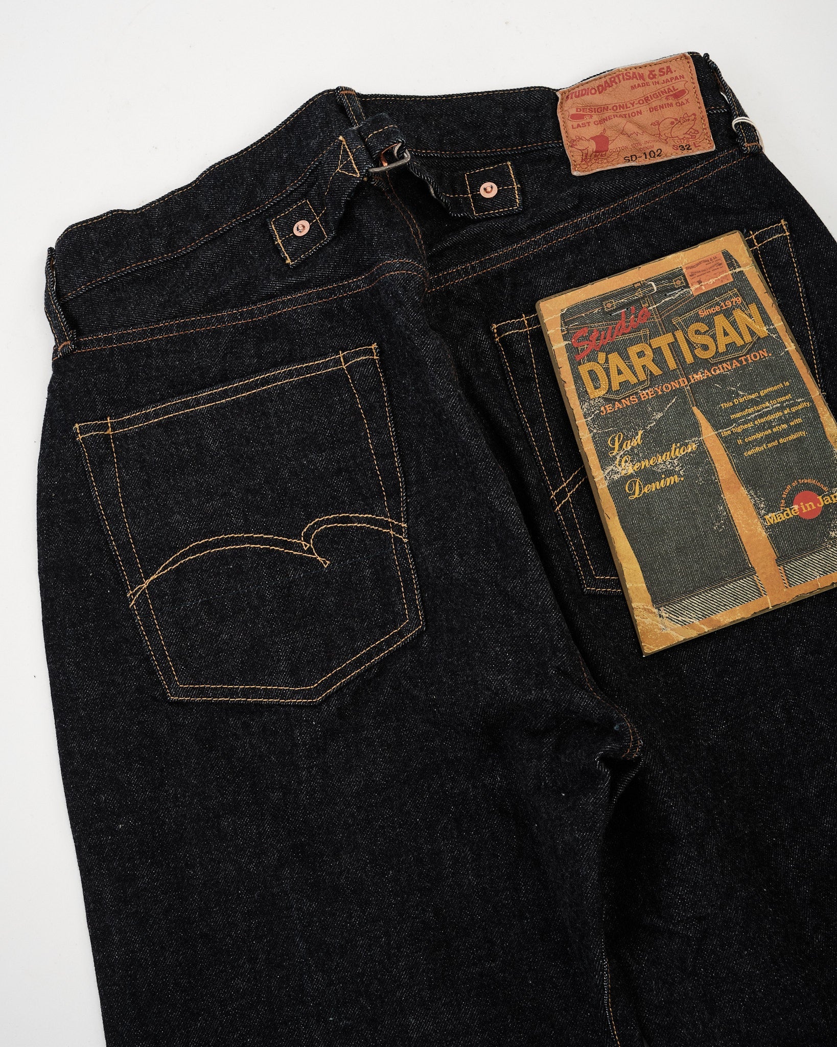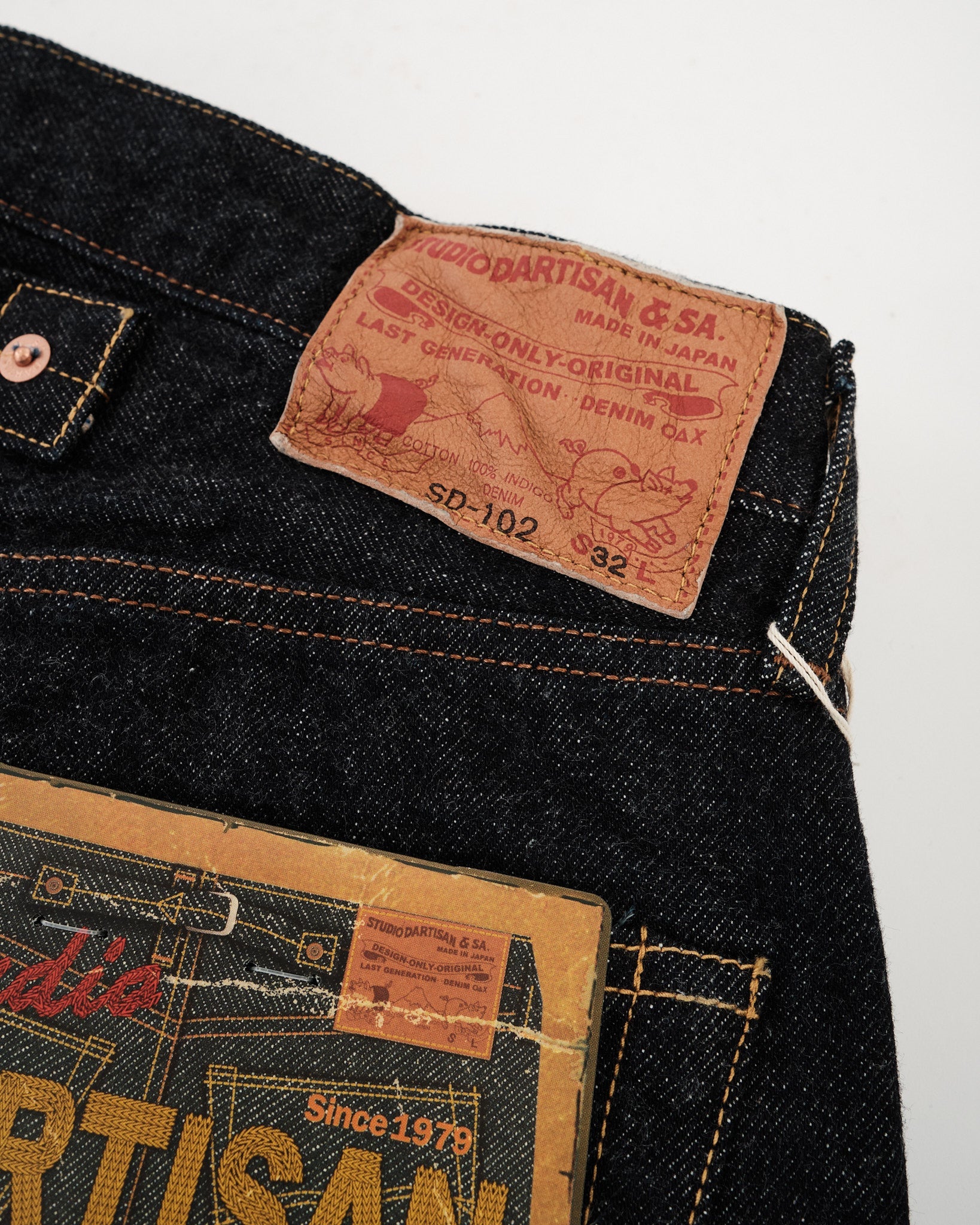 STUDIO D'ARTISAN SD-102CB Wide Straight Jeans (SD-102CB) hyllar traditionella arbetskläder med sin avslappnade, raka silhuett. Tillverkade av 15oz osanforiserad selvedge-denim, vävda på klassiska skyttelvävstolar, ger dessa jeans en slitstark och robust känsla som utvecklar en unik patina över tid.