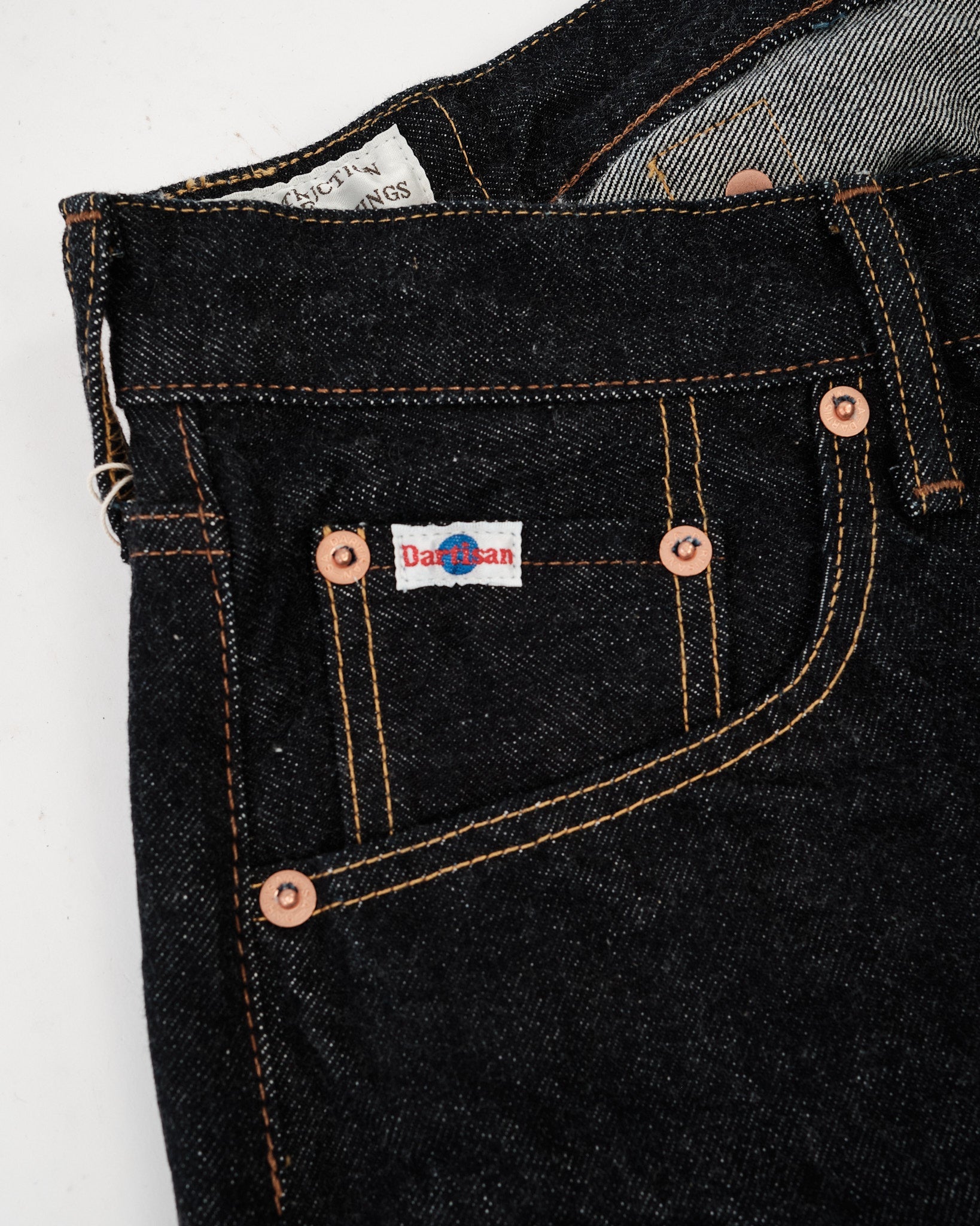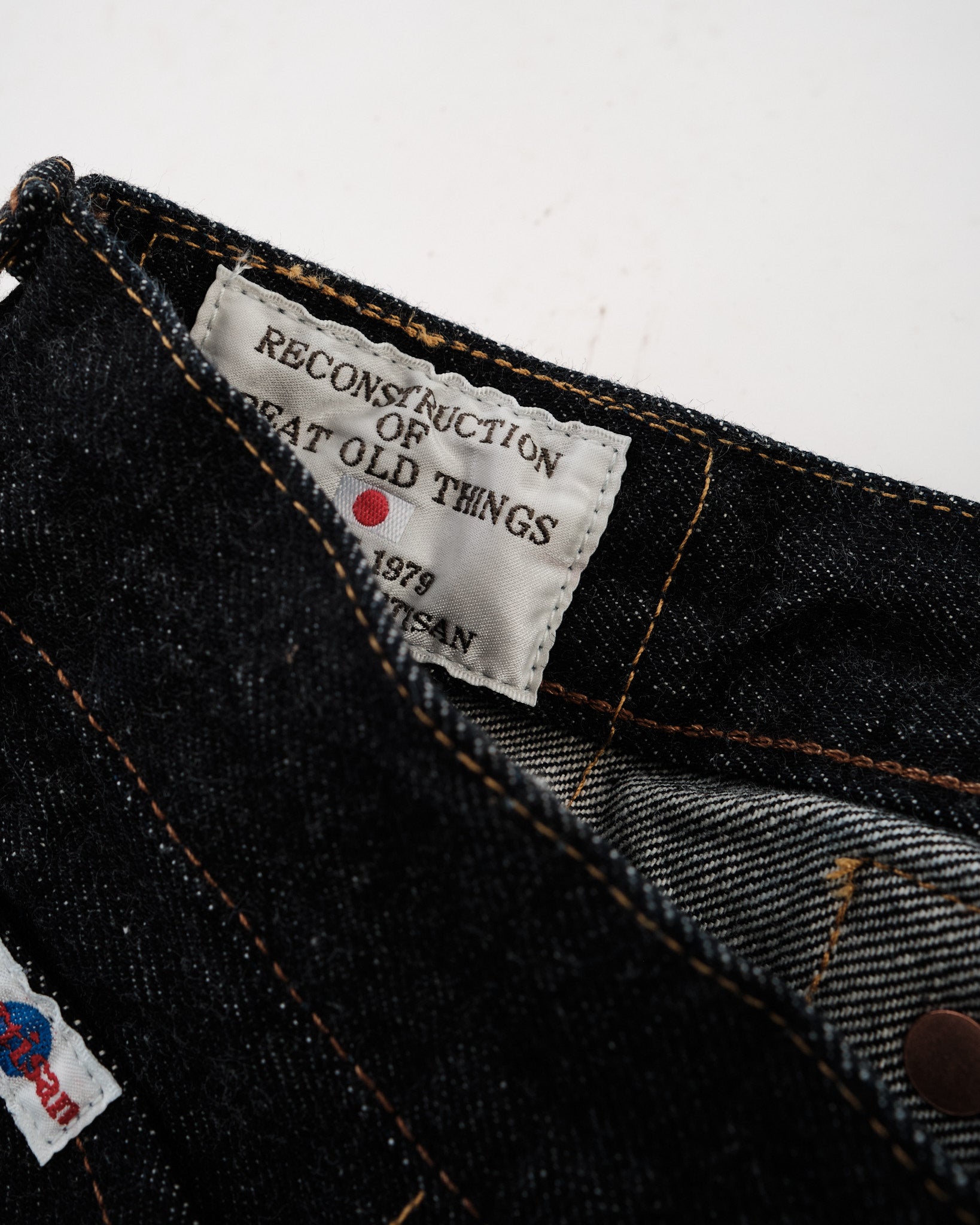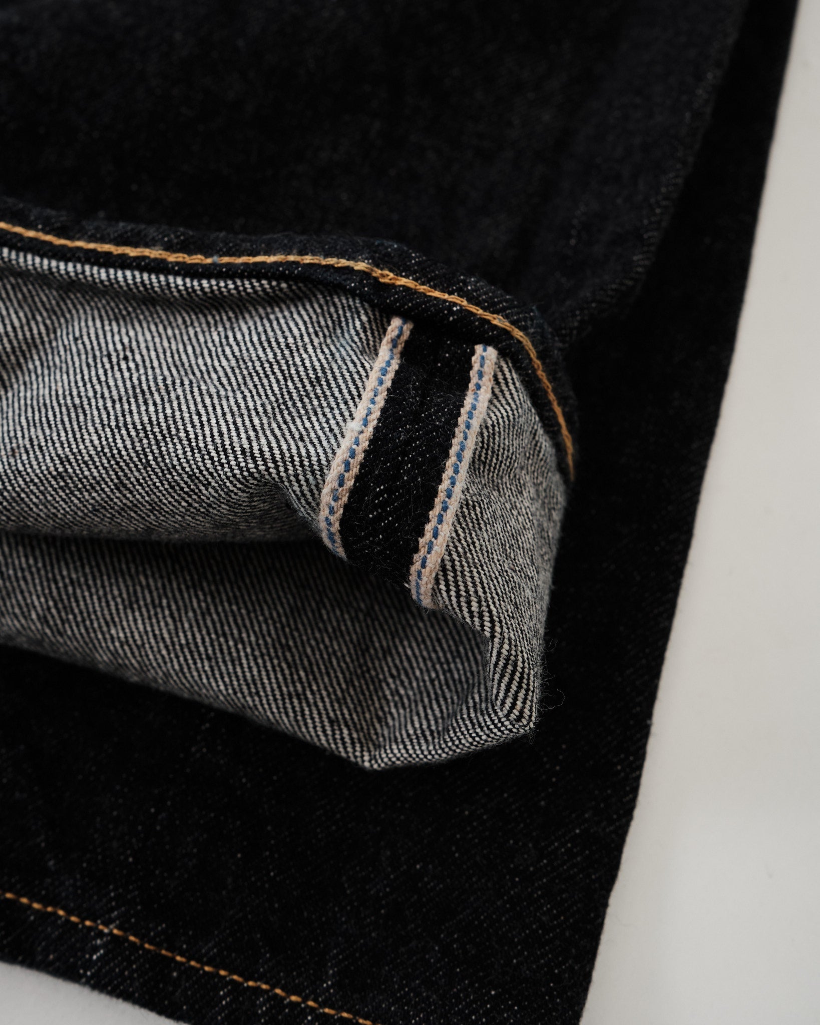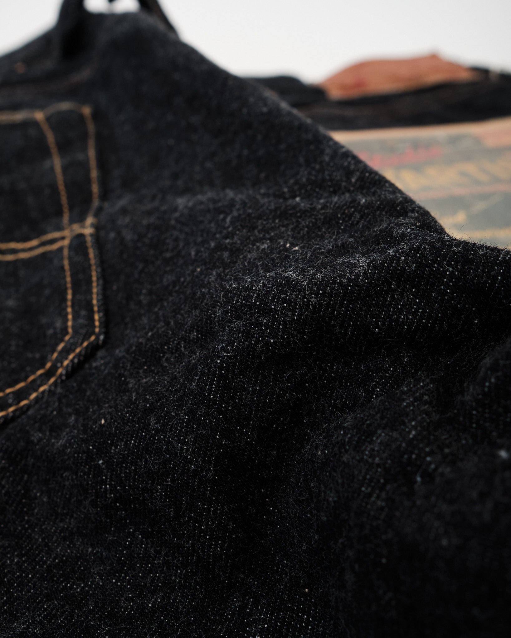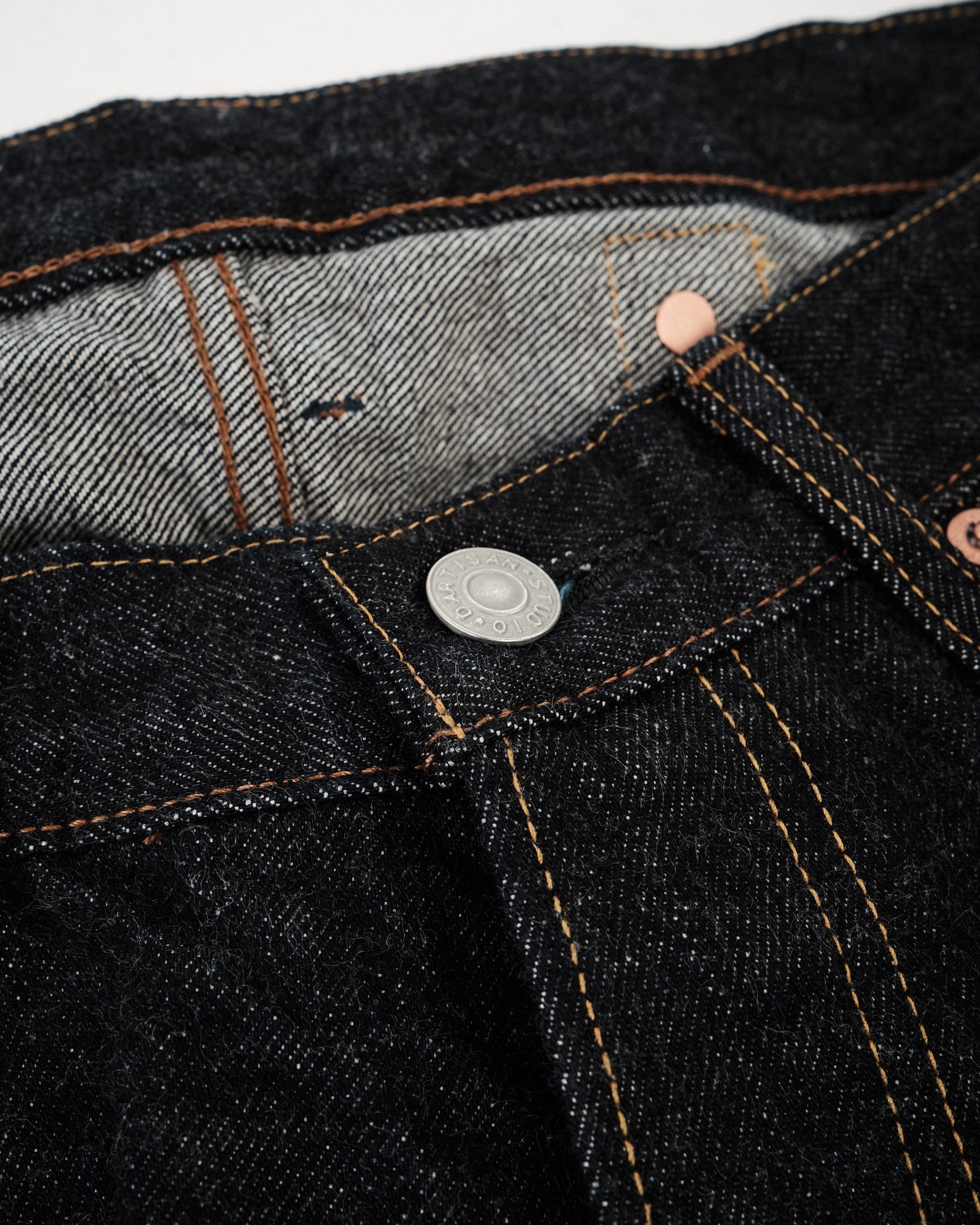 Den djupa indigofärgen säkerställer en rik ton som med tiden framhäver tydliga whiskers och veck. Eftersom tyget inte har behandlats för att motstå krympning, kommer jeansen att krympa och vrida sig naturligt vid tvätt, precis som vintagejeans från 1950-talet.