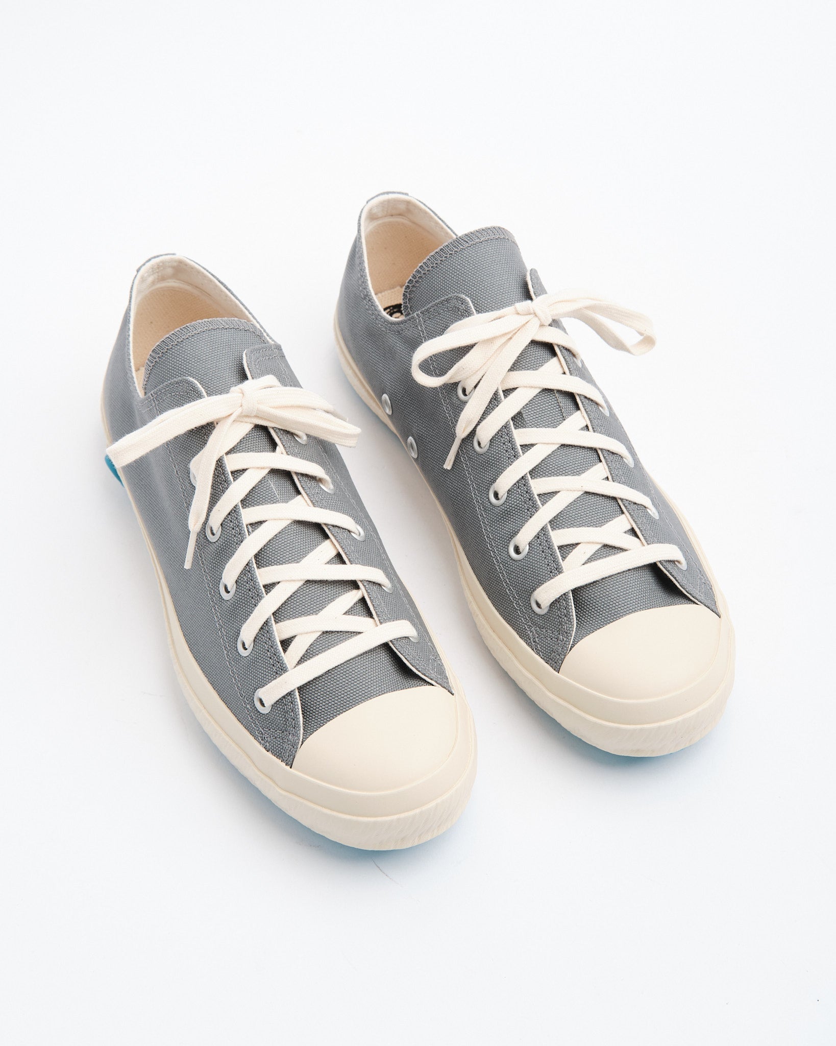 The Shoes Like Pottery SLP01 JP Gray is a Japanese-made canvas sneaker produced in Kurume, Japan — a region known for its long-standing vulcanised shoemaking tradition. Each pair is carefully slow-fired in a kiln, a rare process that enhances flexibility, durability, and long-term comfort.